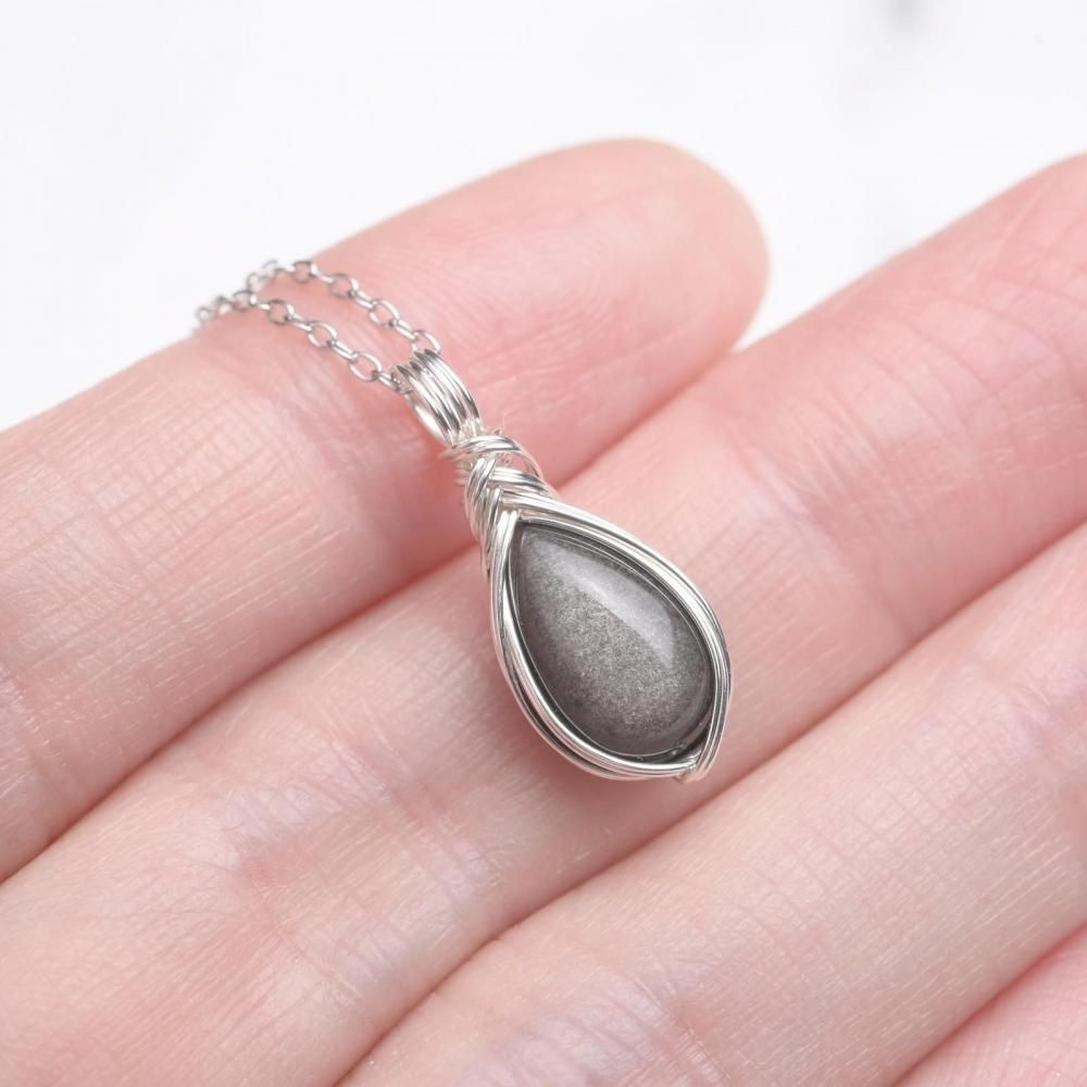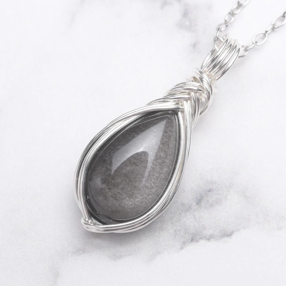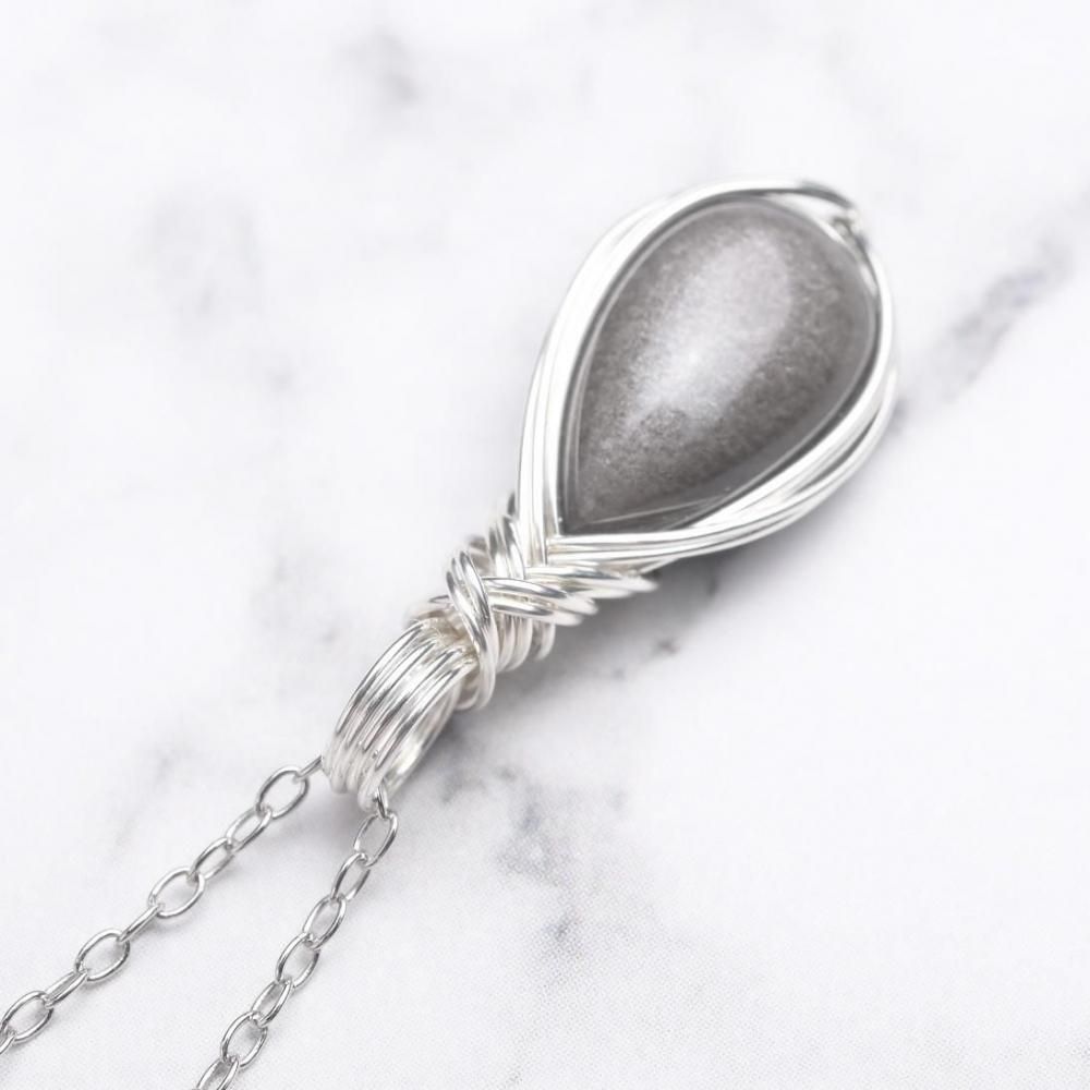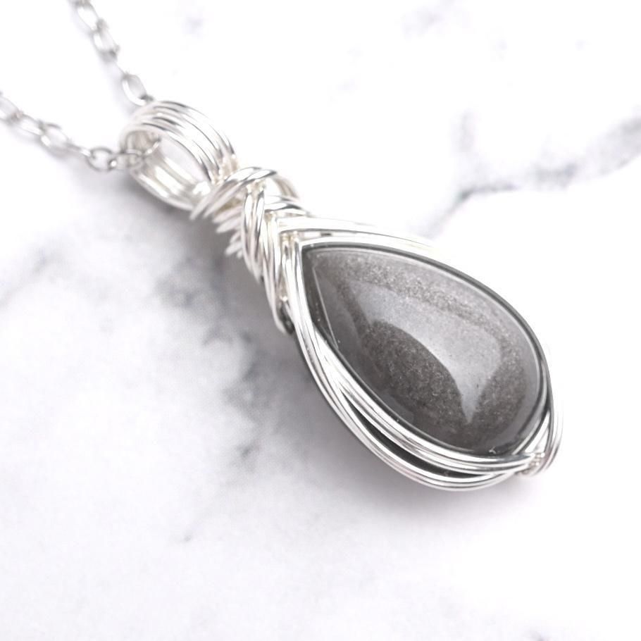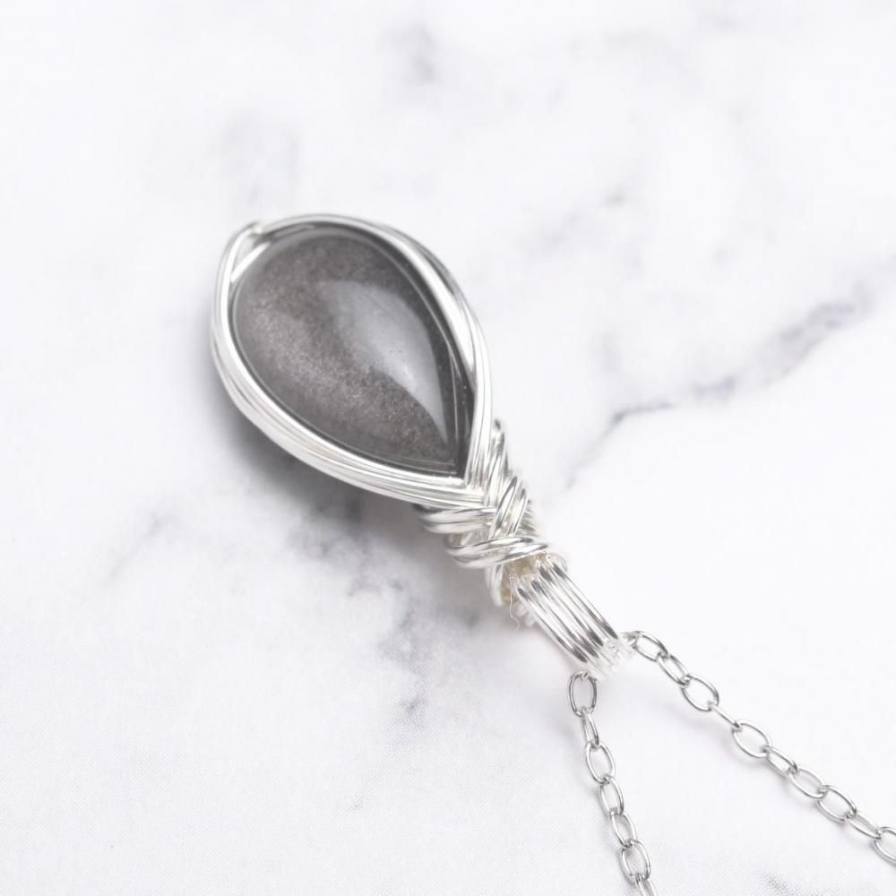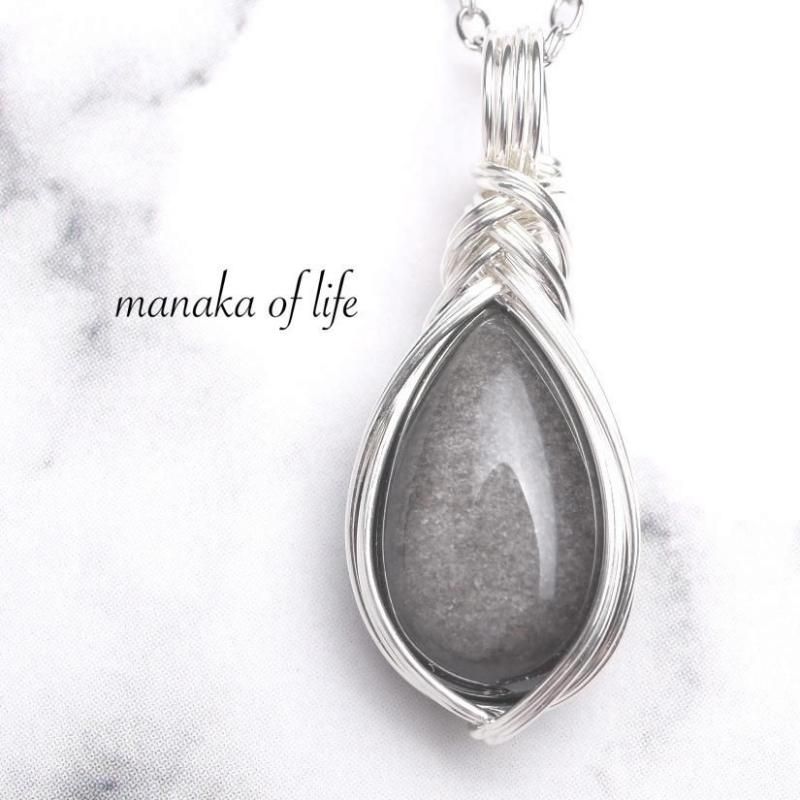 シルバーオブシディアン ワイヤーラッピングのペンダントトップです。