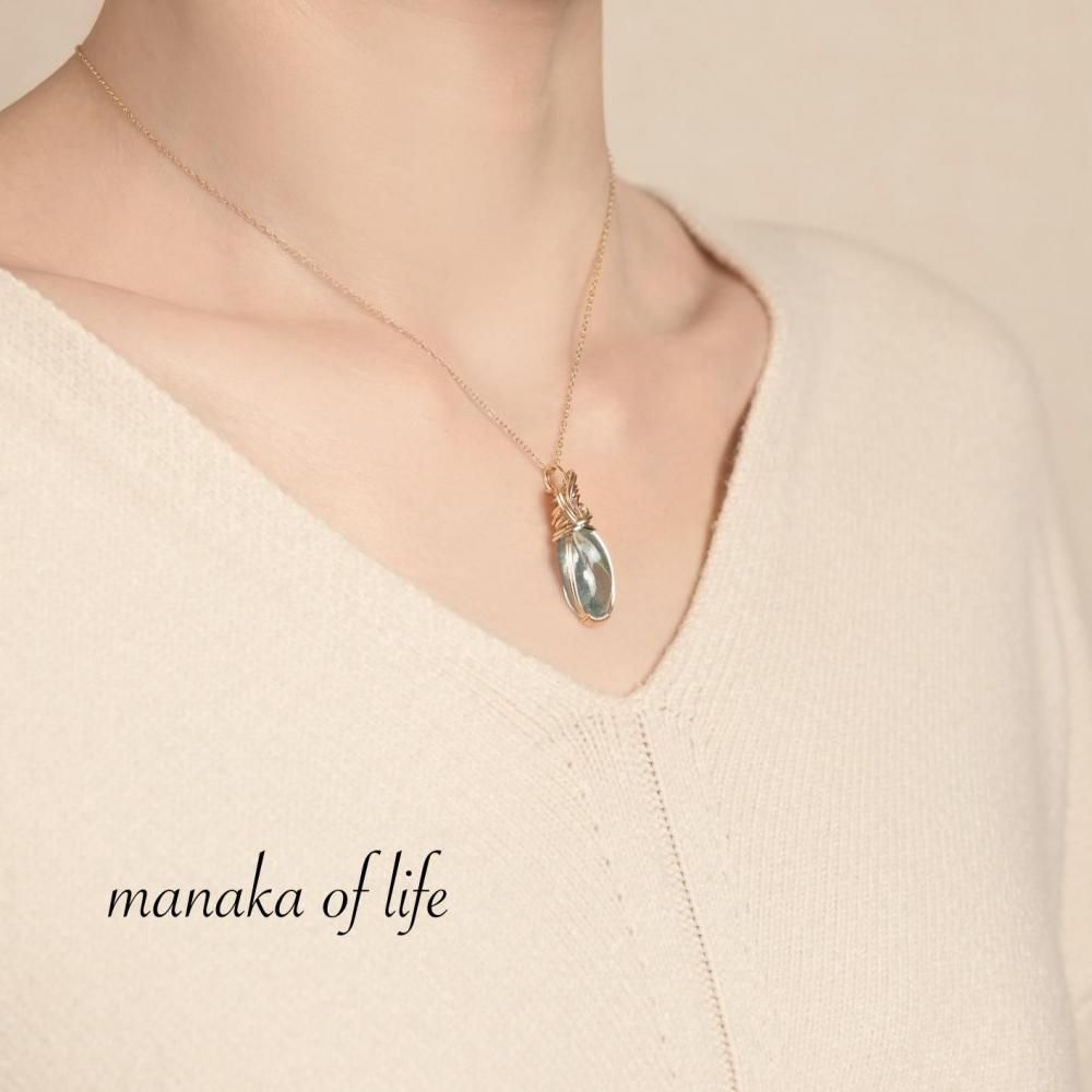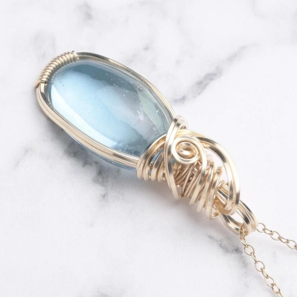 目を惹くアクアカラーがゴールドワイヤーと相性抜群です!