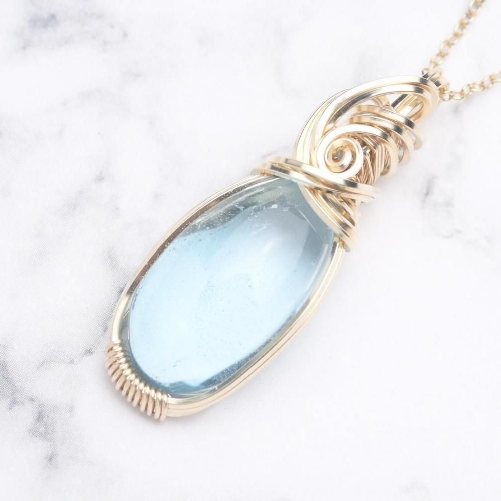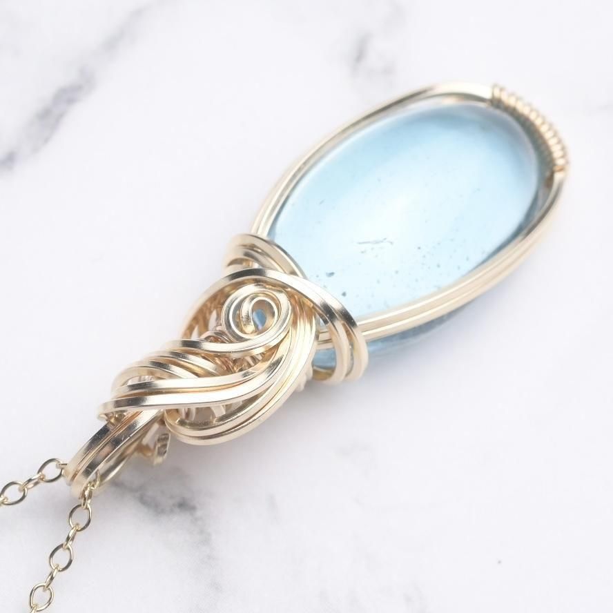ブルートパーズ ワイヤーラッピングのペンダントトップです。