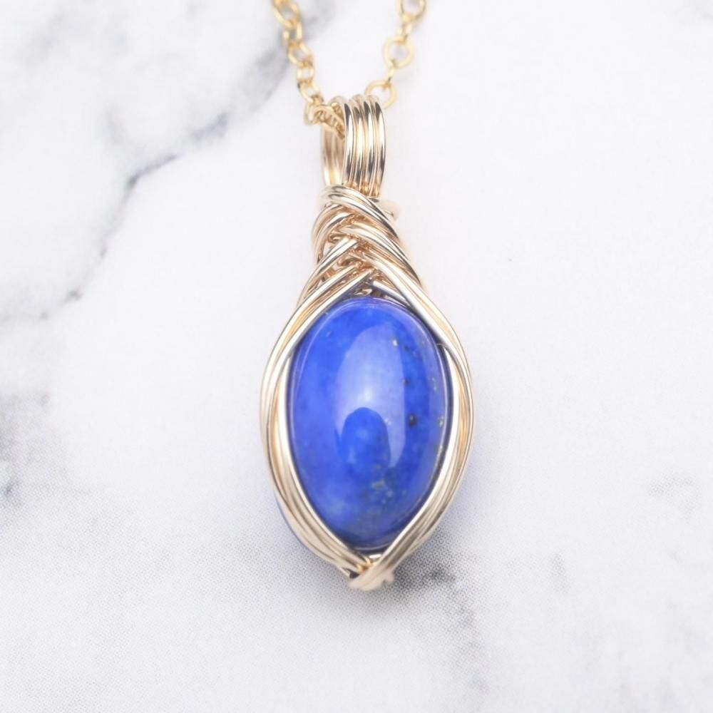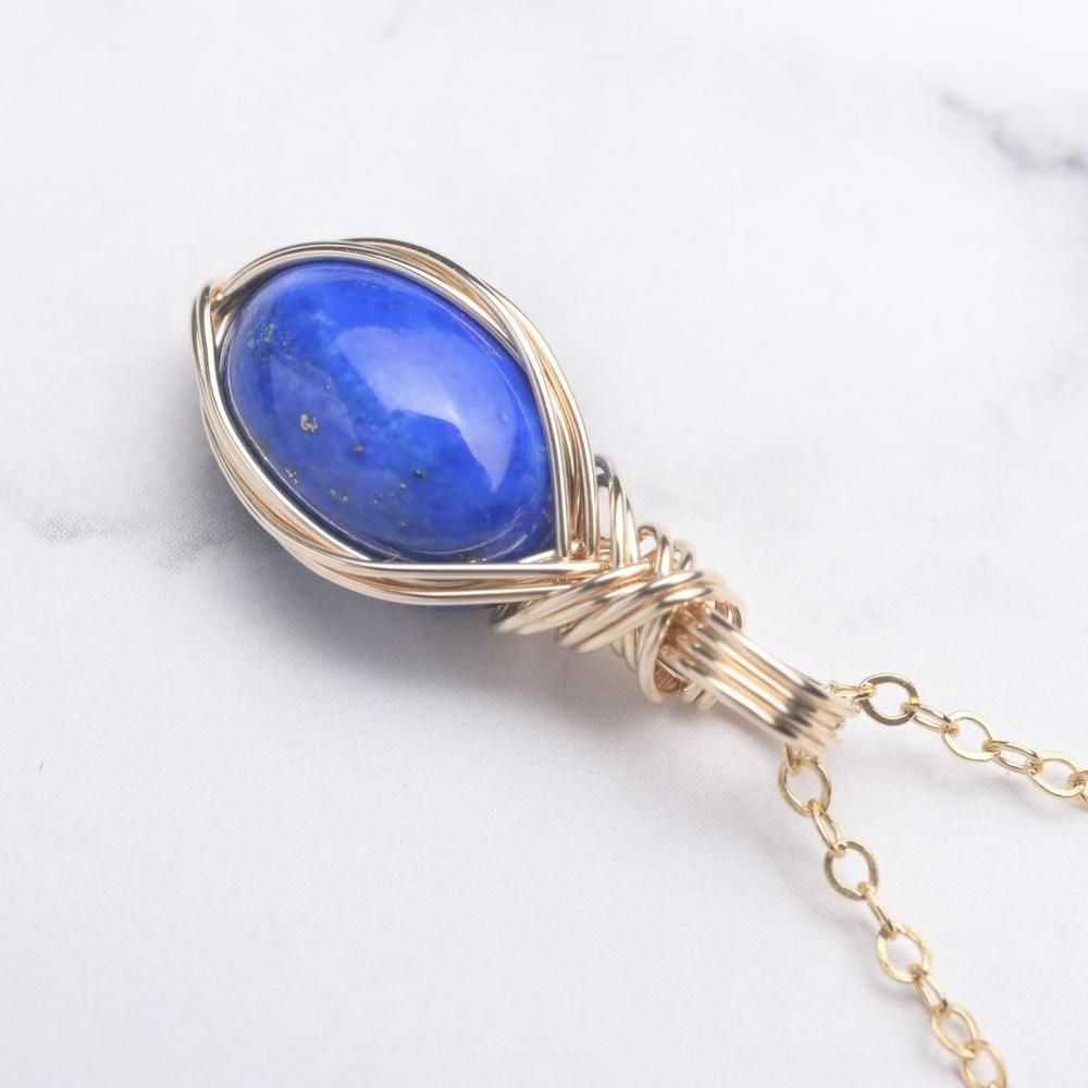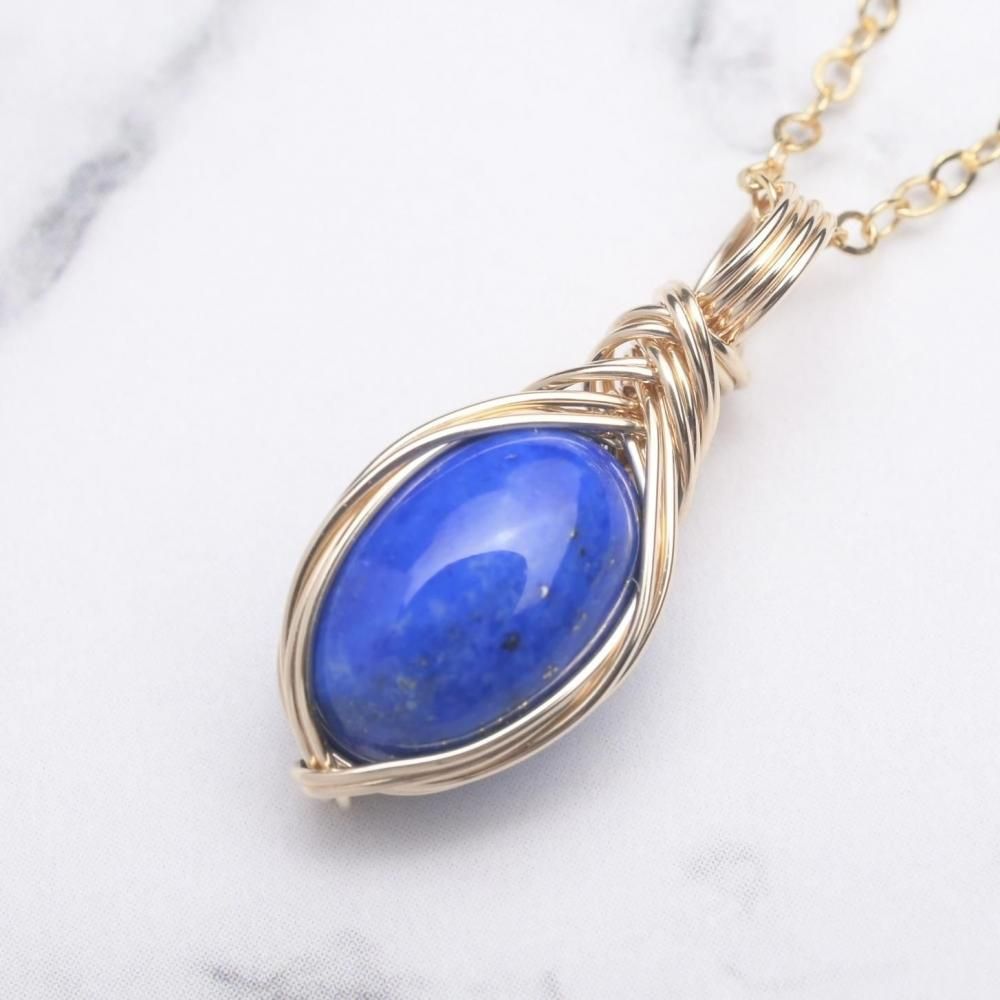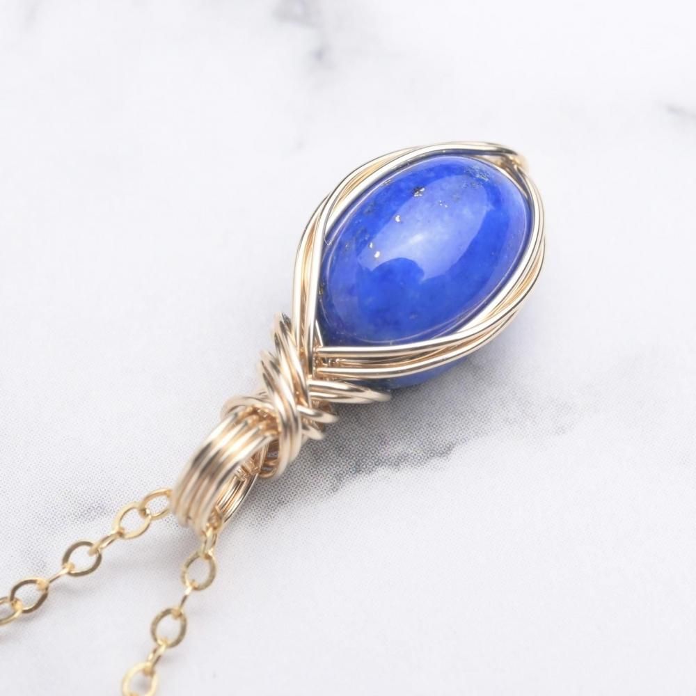 ラピスラズリ ワイヤーラッピングのペンダントトップです。