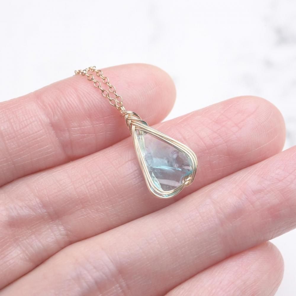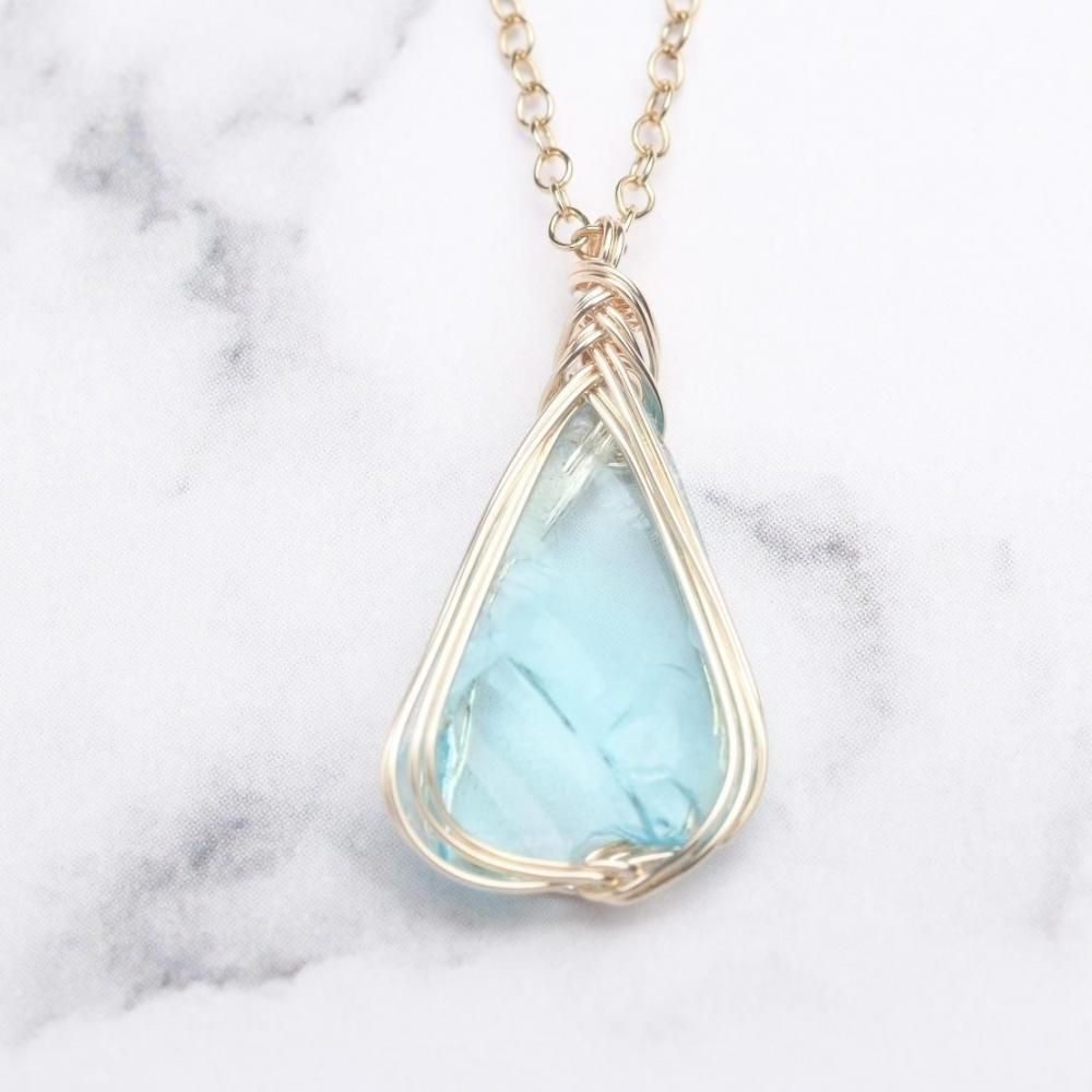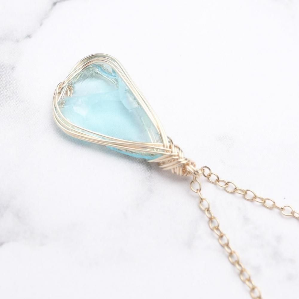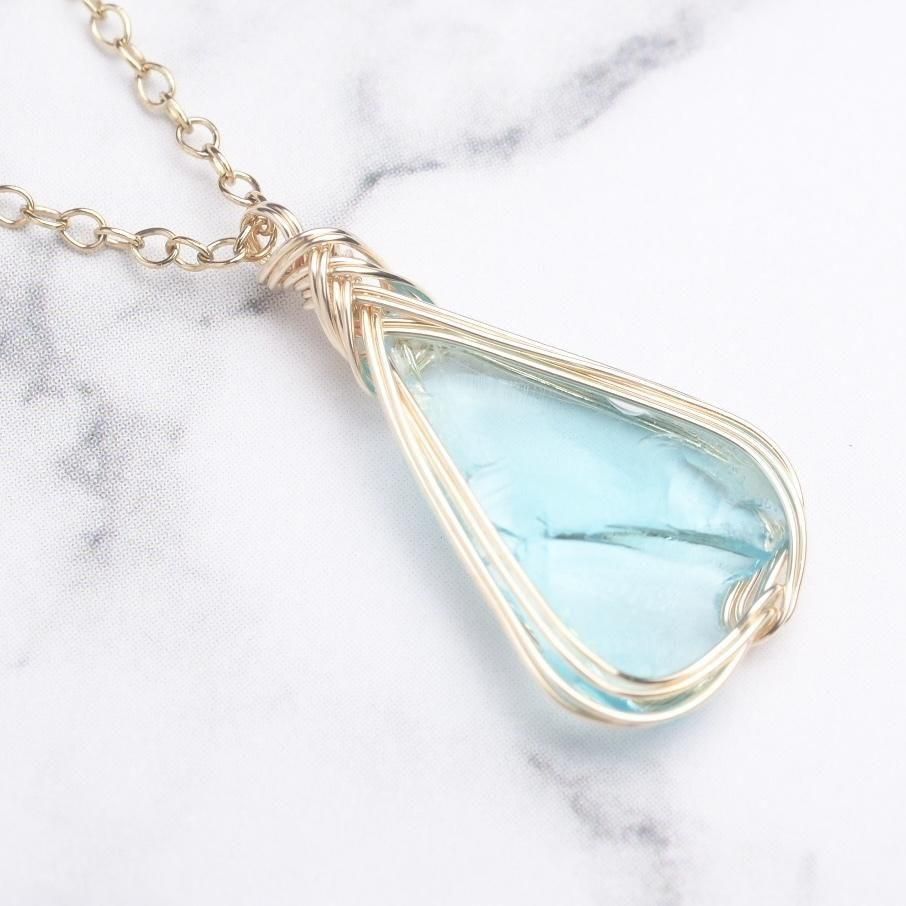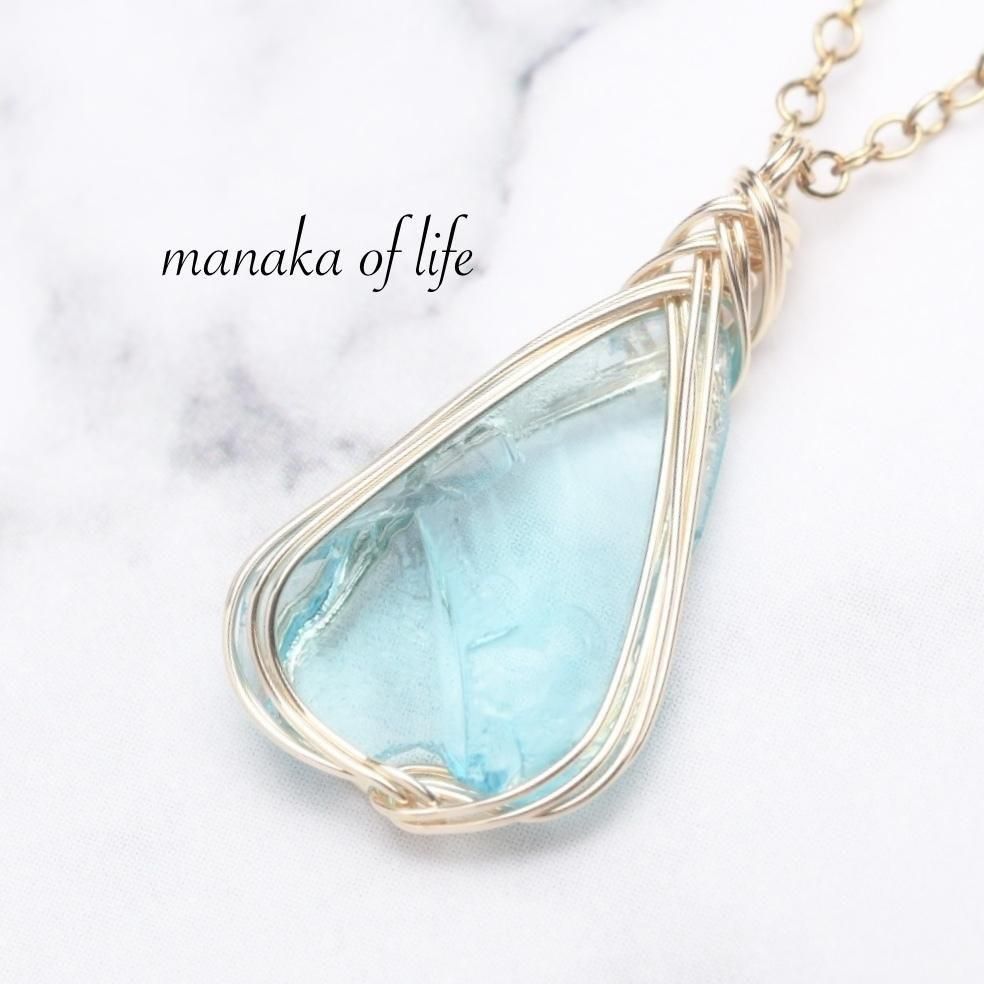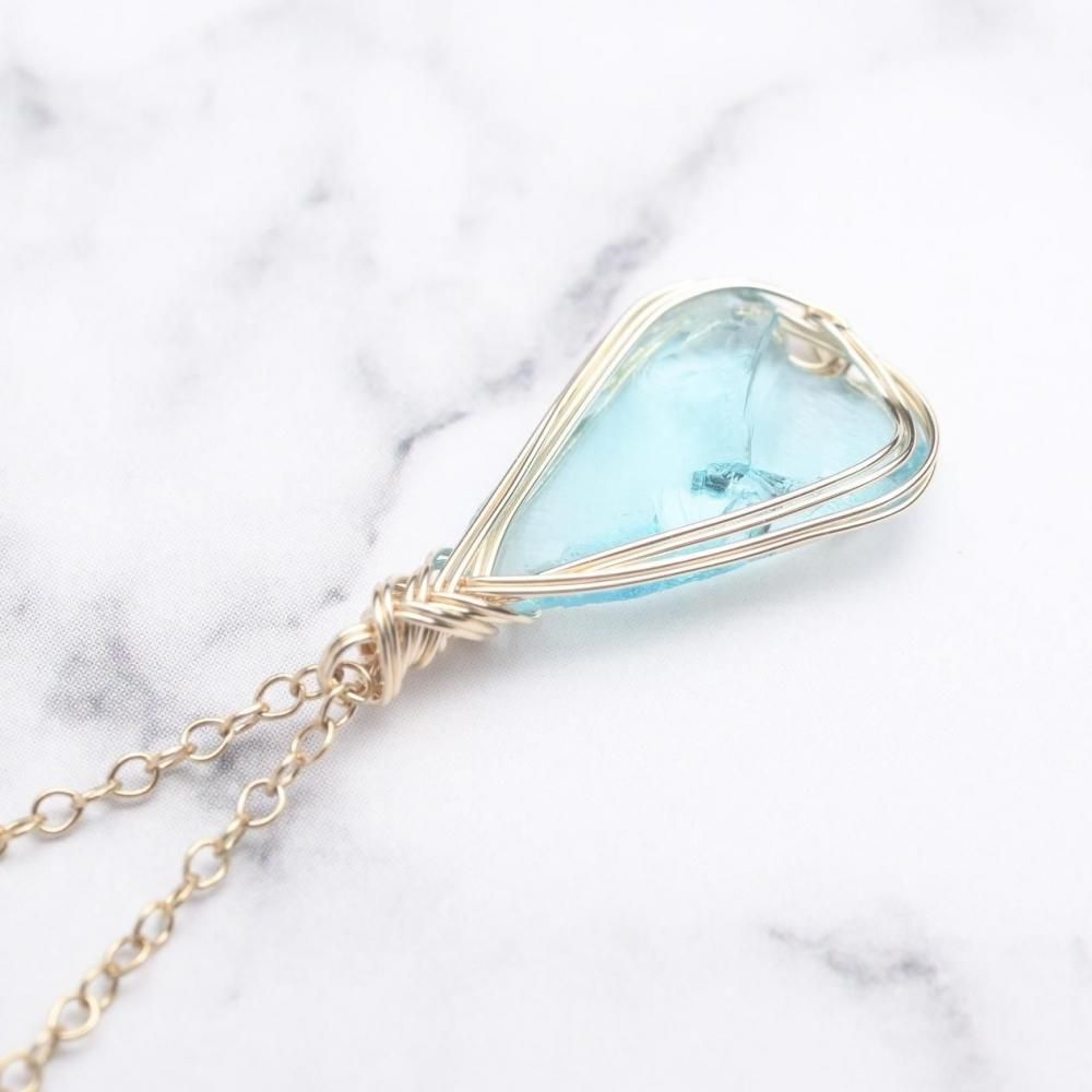 シエラ産アンダラクリスタル エレクトリックブルーのワイヤーラッピング ネックレスです。