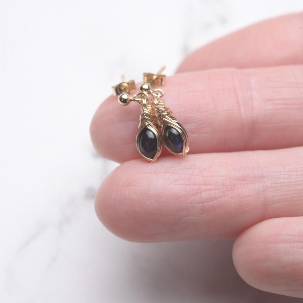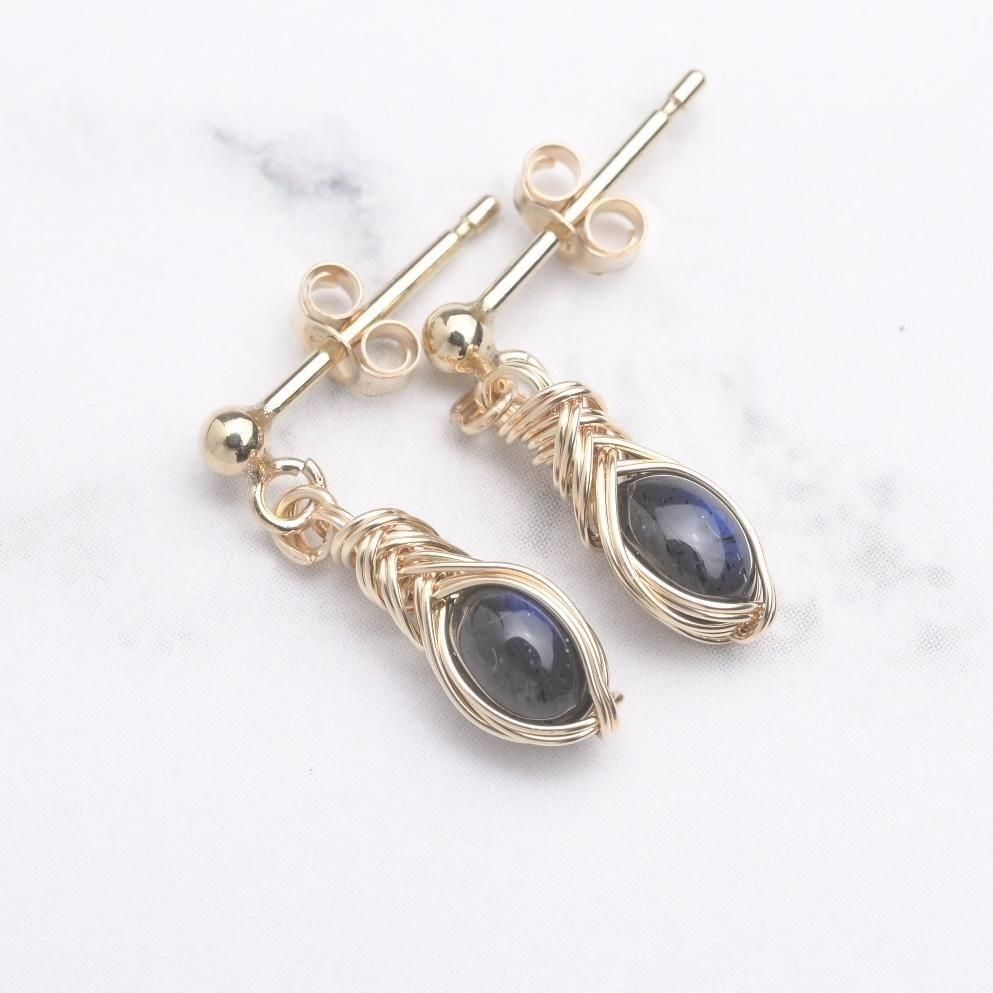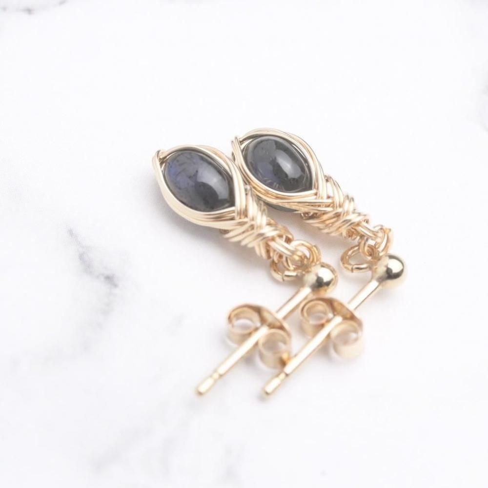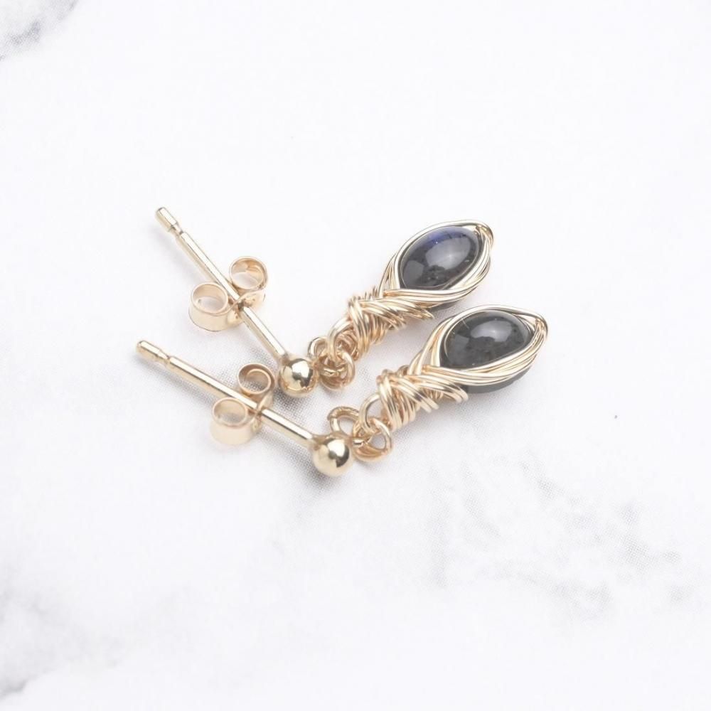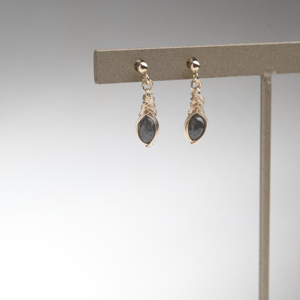 ブラックラブラドライト ワイヤーラッピングのピアスです。
