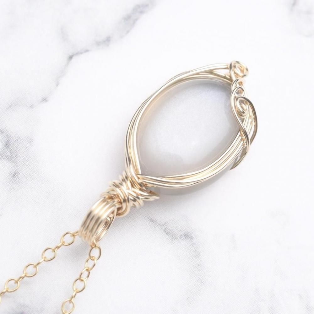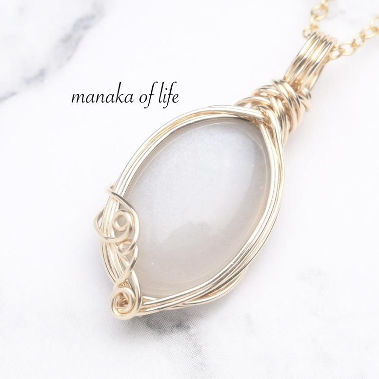 ムーンストーン ペンダントトップ ワイヤーラッピング ネックレス 14kgf