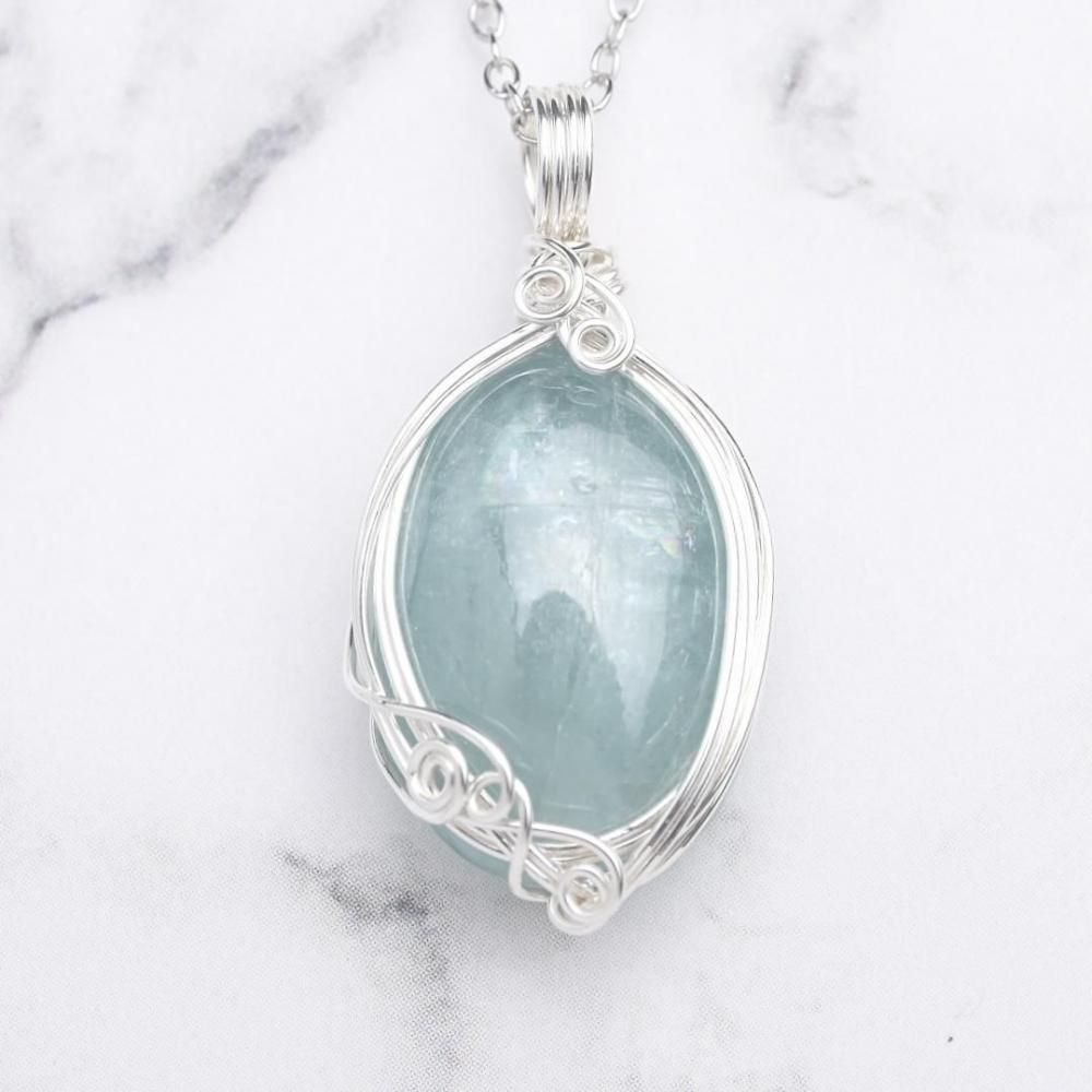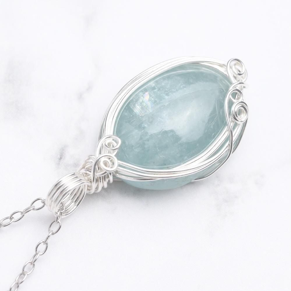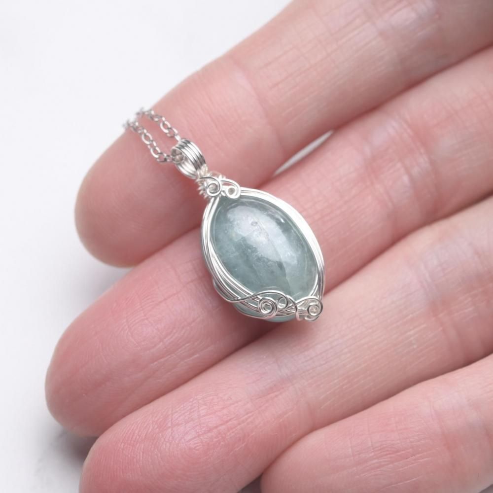 スカイカイヤナイト ペンダントトップ ワイヤーラッピング ネックレス アルゲンティウムシルバー silver935