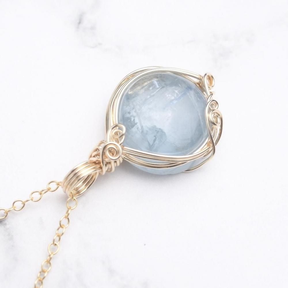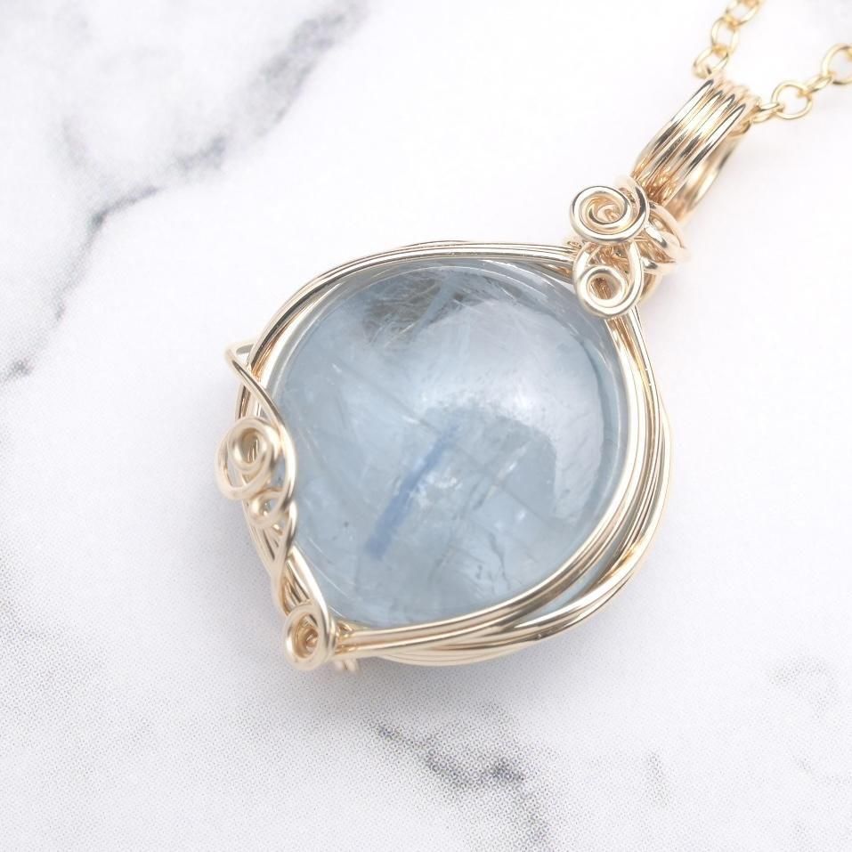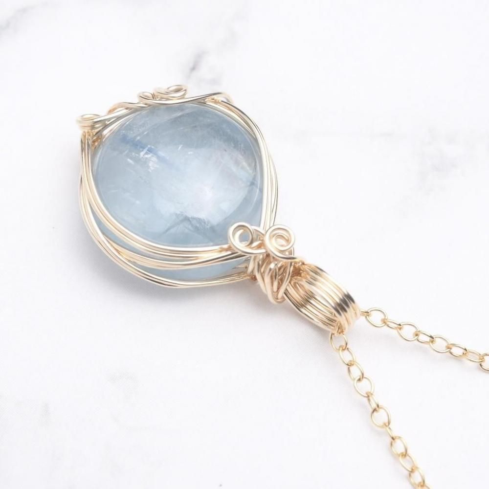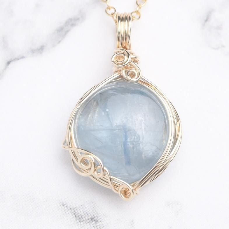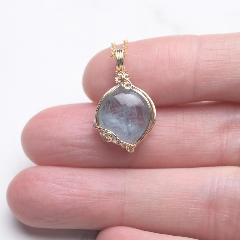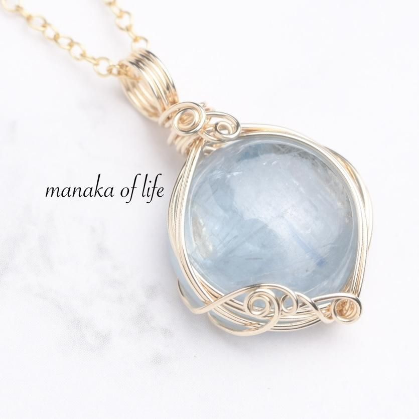 スカイカイヤナイト ペンダントトップ ワイヤーラッピング ネックレス 14kgf
