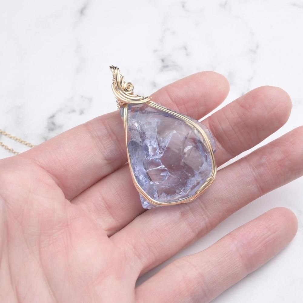 シエラネバダ産 アンダラクリスタル アセンダントライラック ペンダントトップ ワイヤーラッピング ネックレス 14kgf