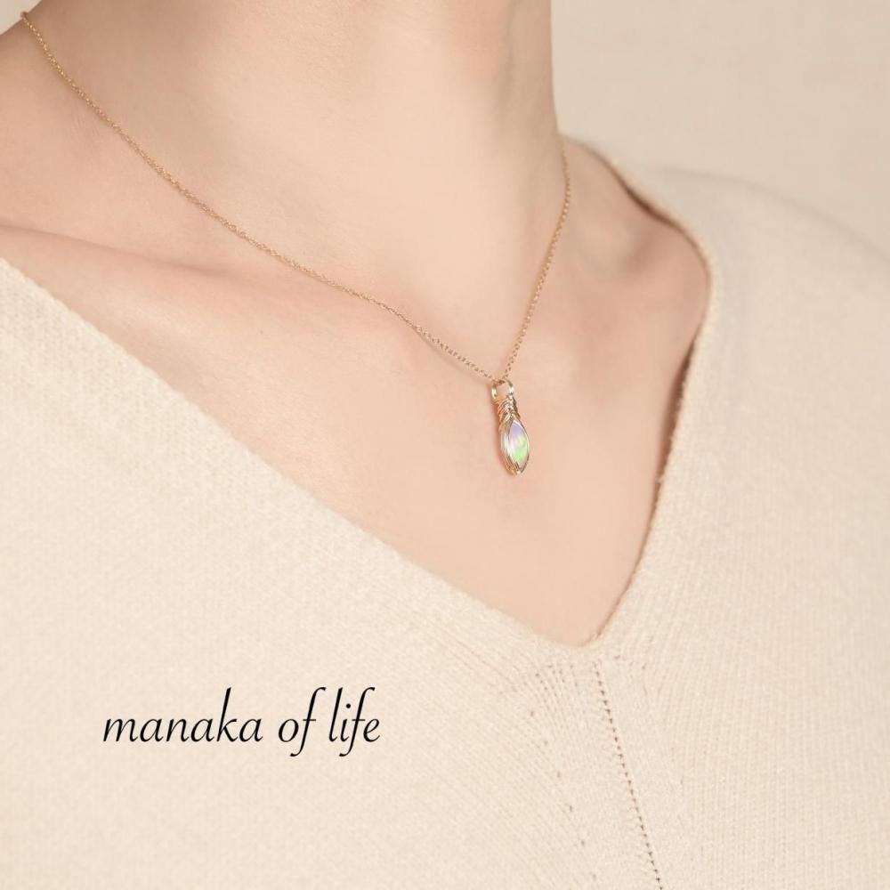 サイズは10mm×6mmと小さめですが、オパールの遊色がカラフルで美しく、半透明のミルキーカラーをベースに、