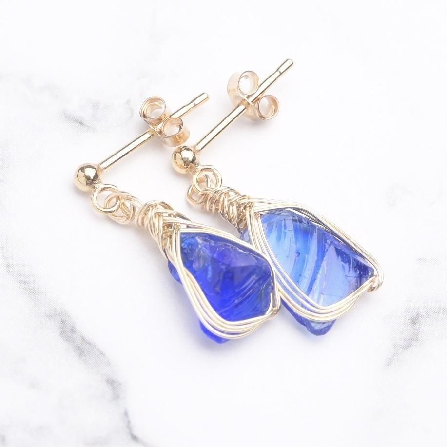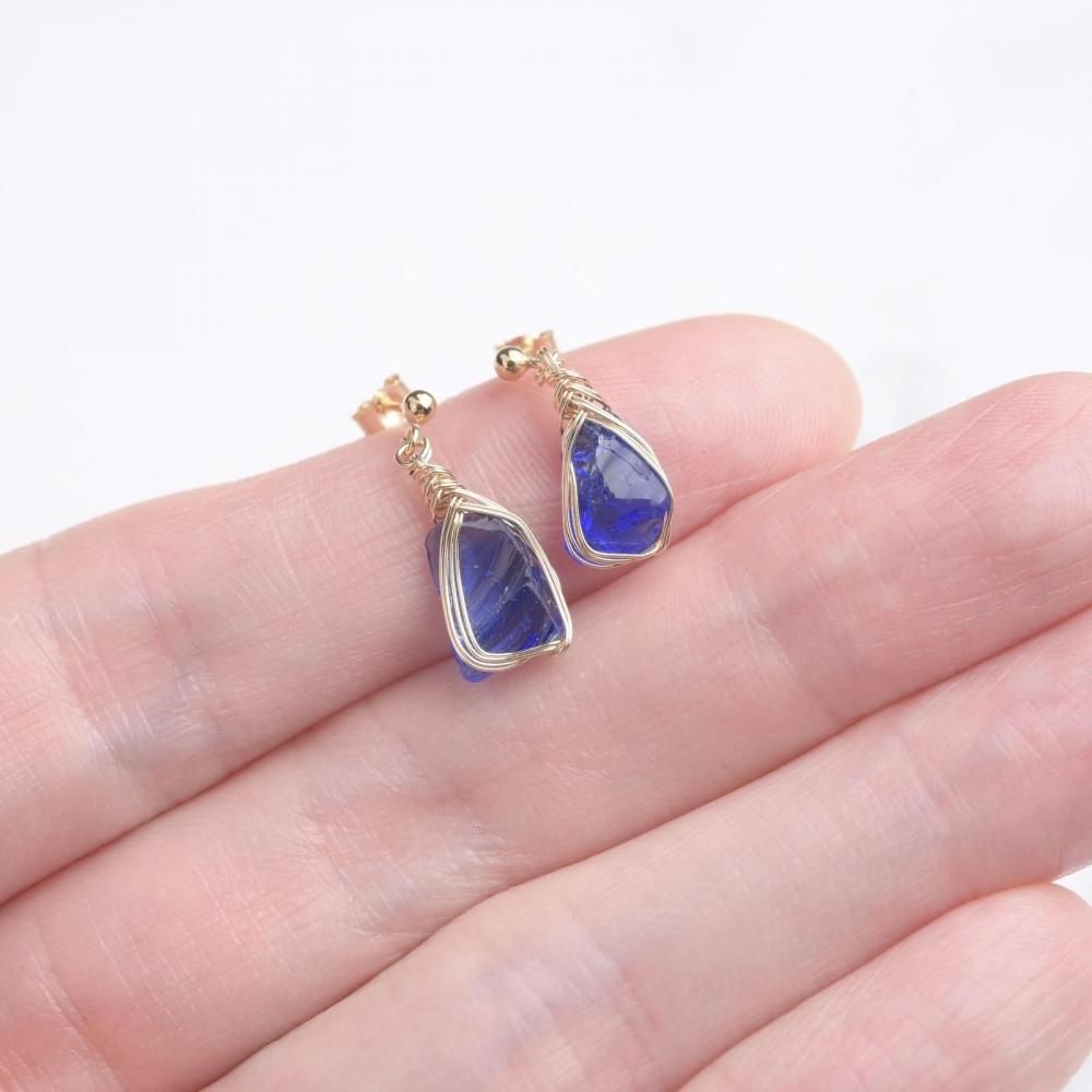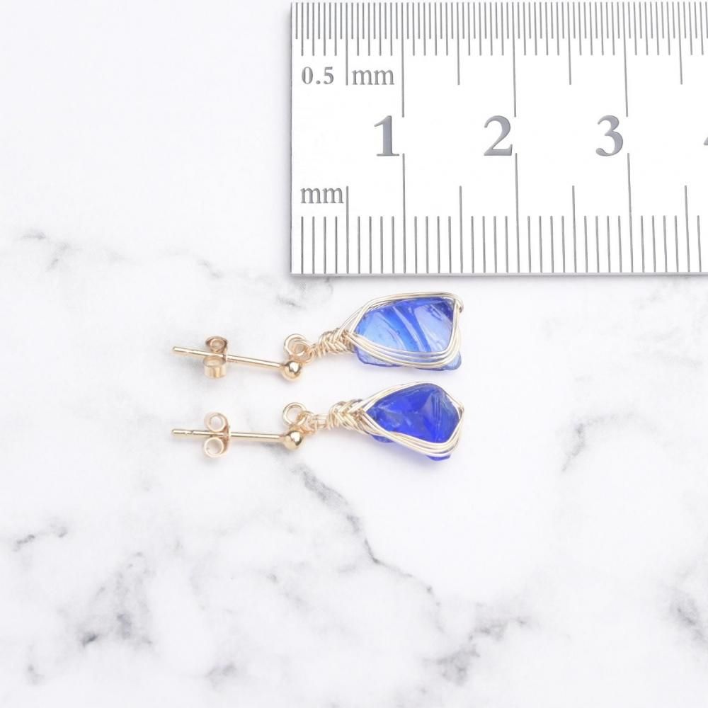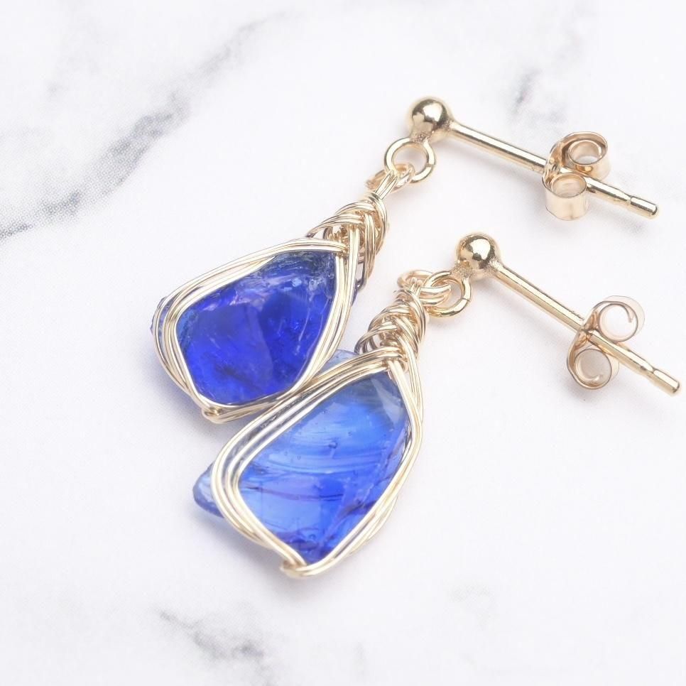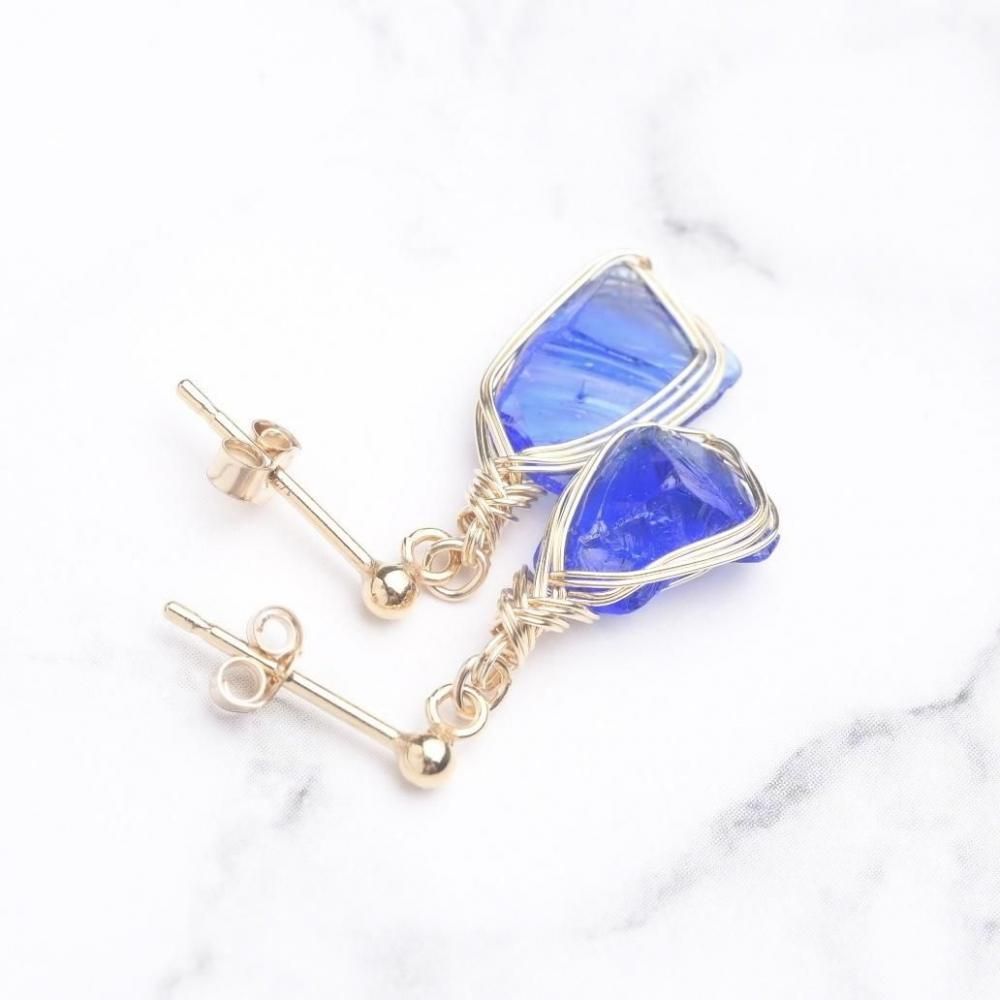 シエラ産アンダラクリスタル エレスチャルサファイア タンザナイトファイヤー のワイヤーラッピング ピアスです。