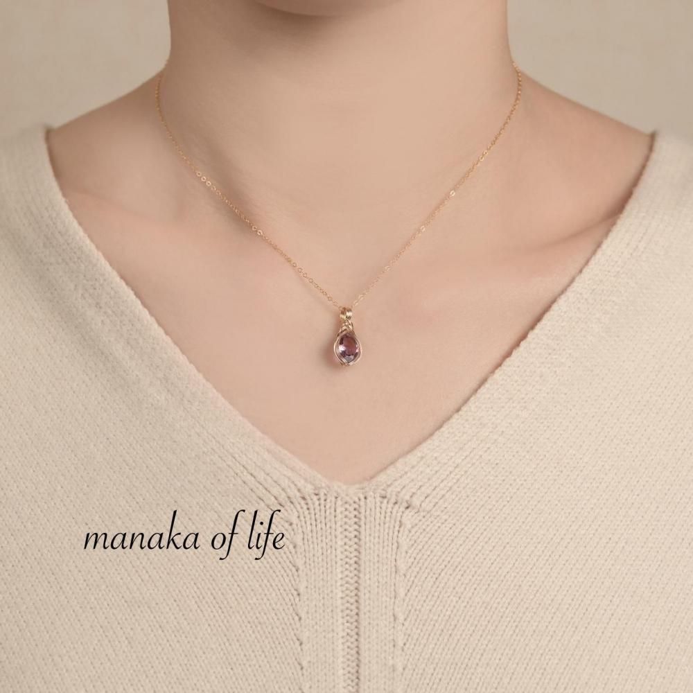 優しいパープルカラーとファセットカットが角度によりキラキラと輝きます。