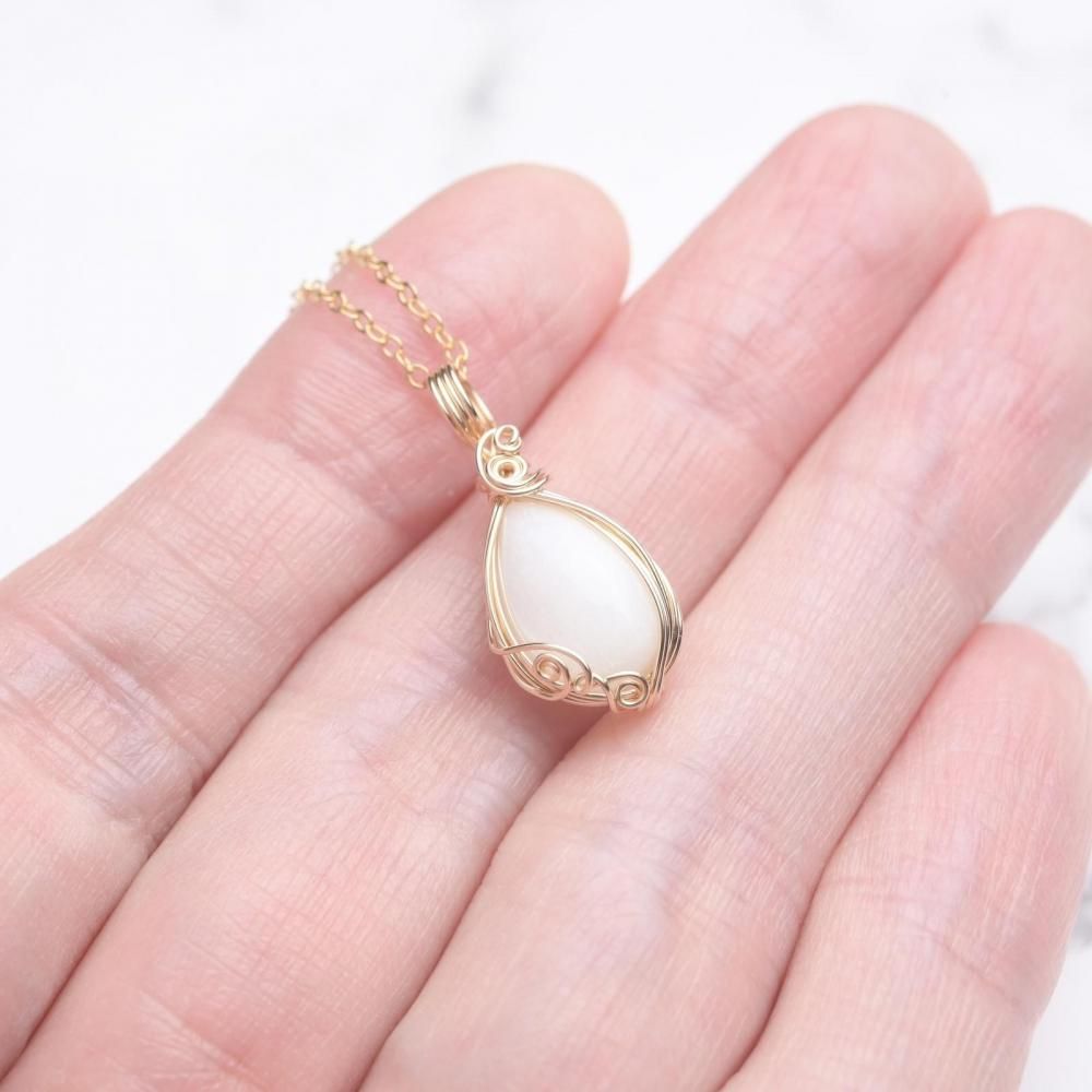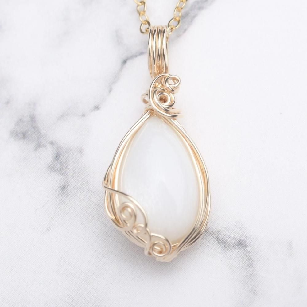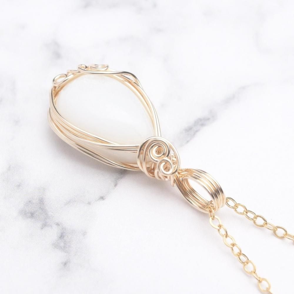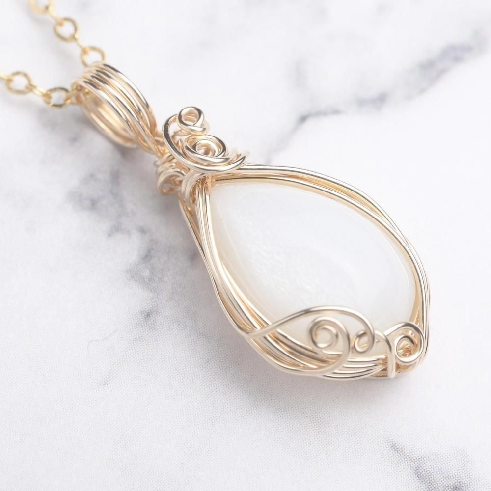 ホワイトムーンストーン ワイヤーラッピングのペンダントトップです。