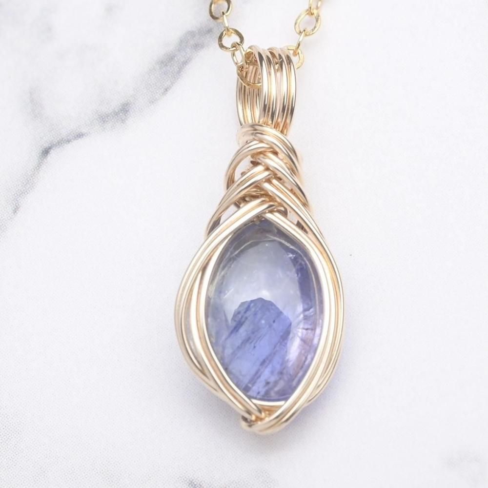 バイカラータンザナイト ワイヤーラッピングのペンダントトップです。