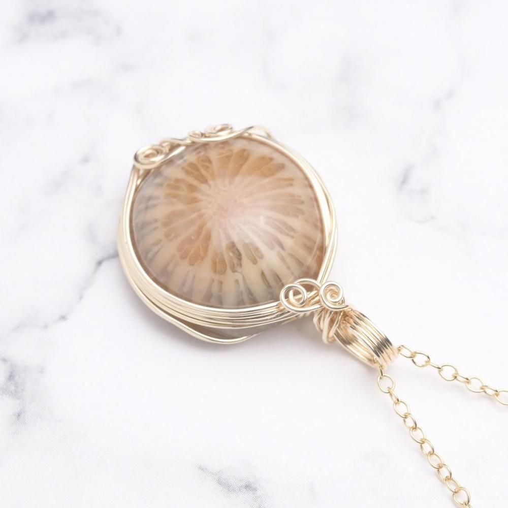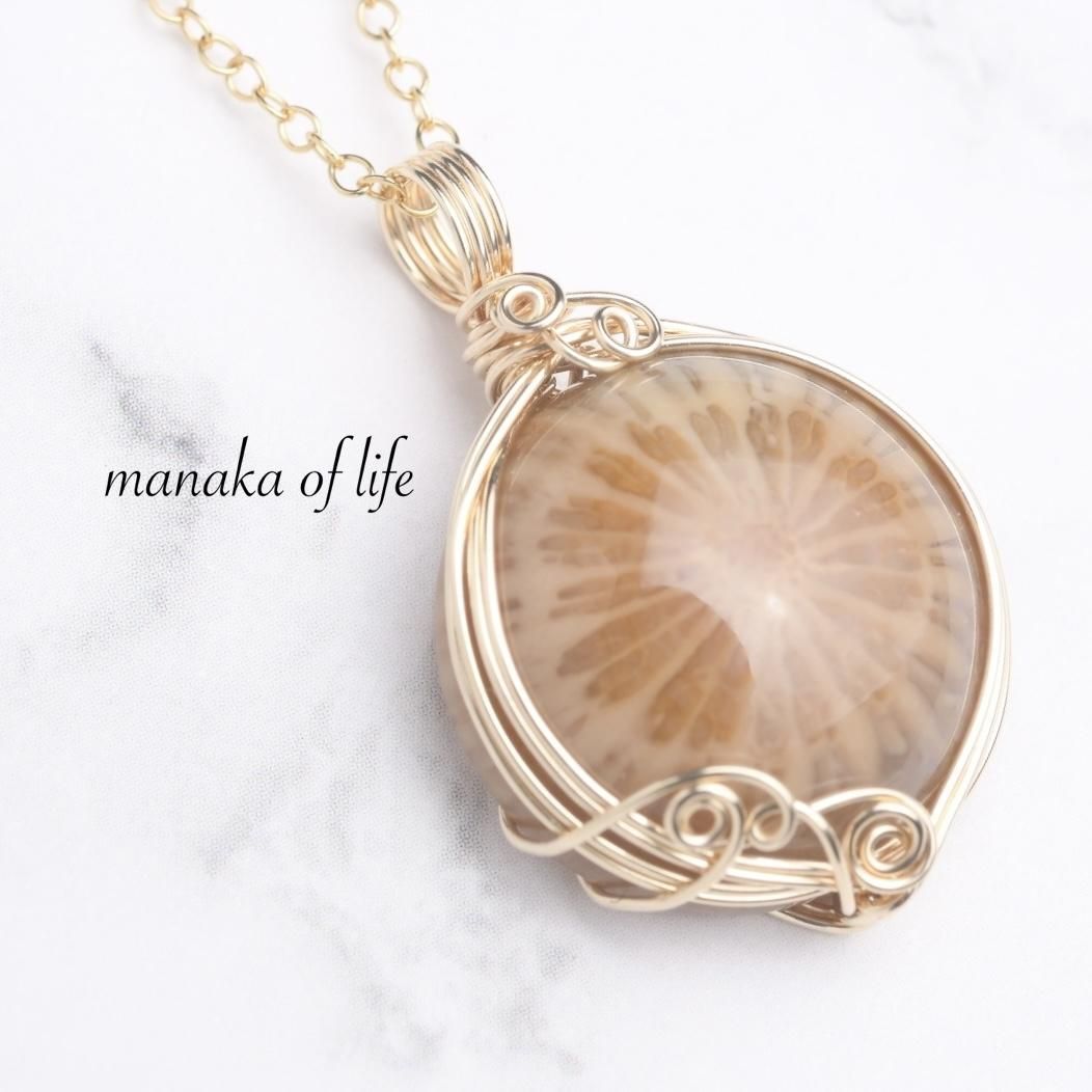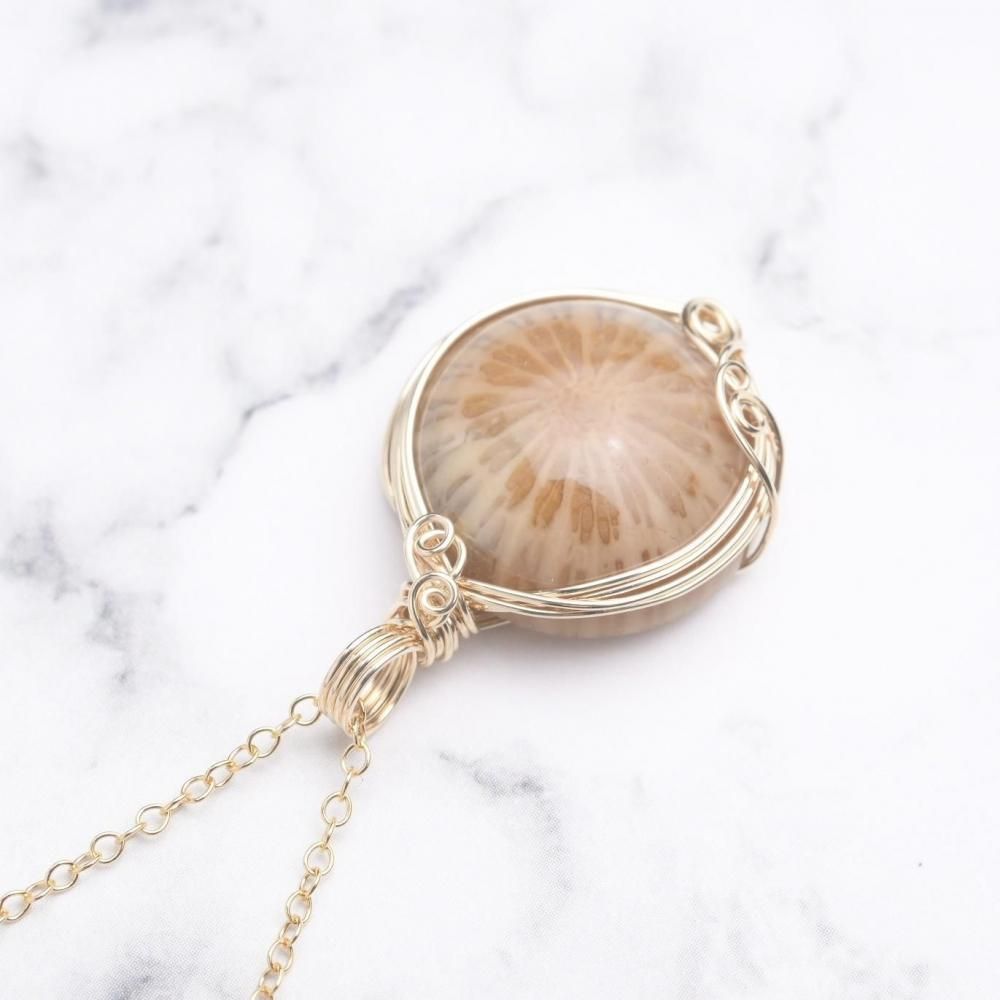 フォッシルコーラル ワイヤーラッピングのペンダントトップです。