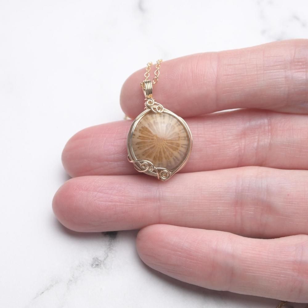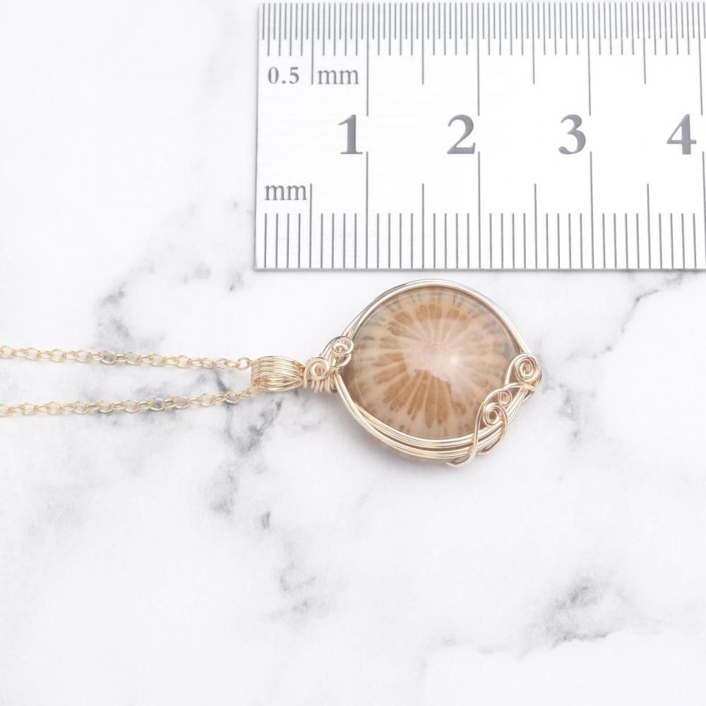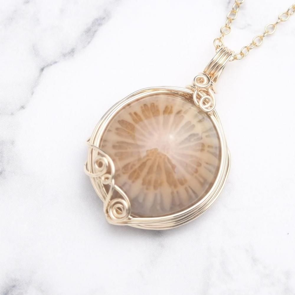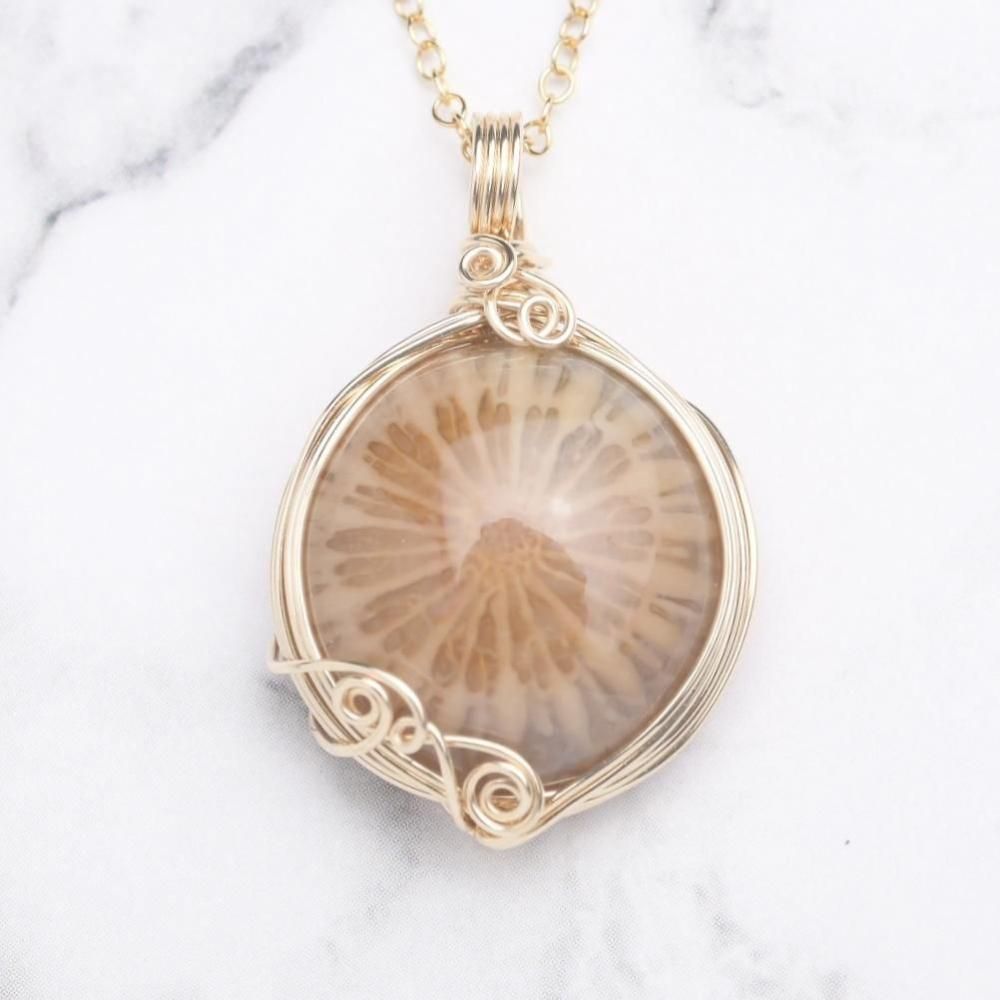 フォッシルコーラル ワイヤーラッピングのペンダントトップです。