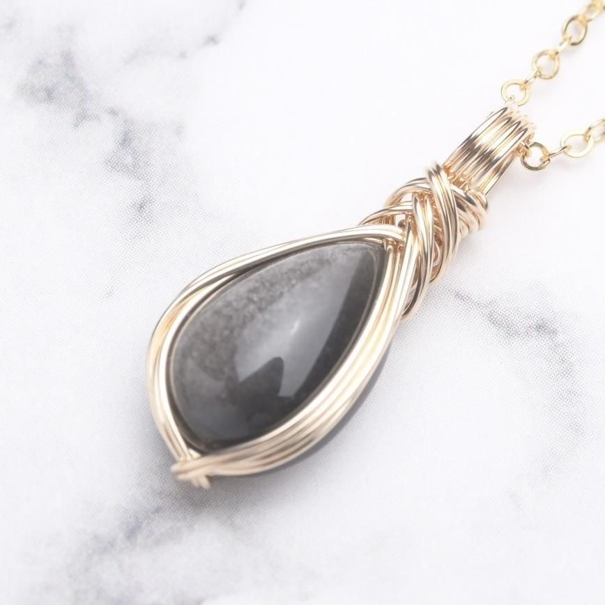 シルバーオブシディアン ワイヤーラッピングのペンダントトップです。