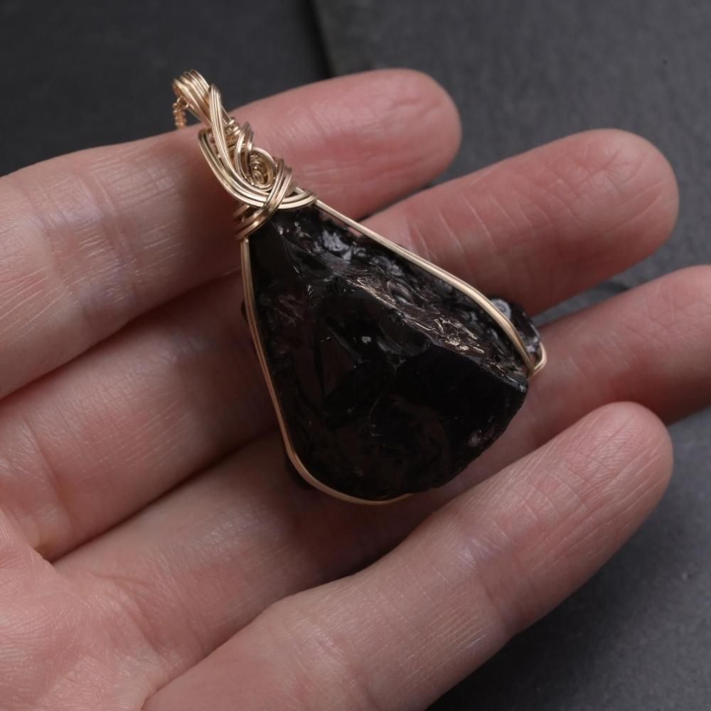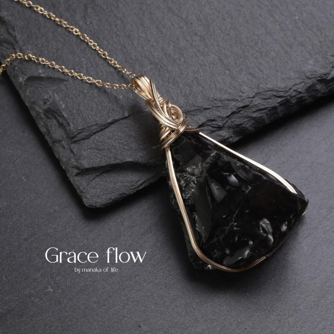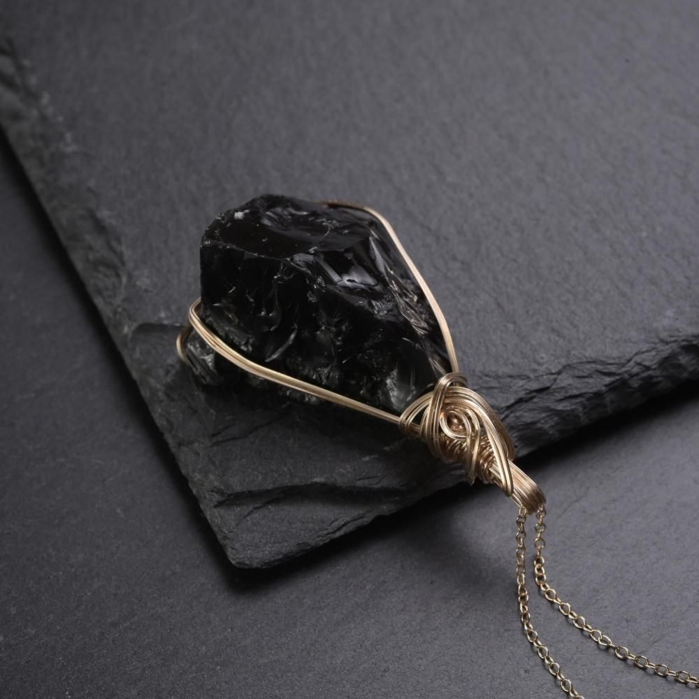 神津島 産 オブシディアン ワイヤーラッピングのペンダントトップです。
