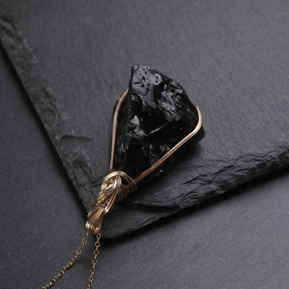 神津島で産出されたオブシディアンを使用し、ペンダントに仕立てました。