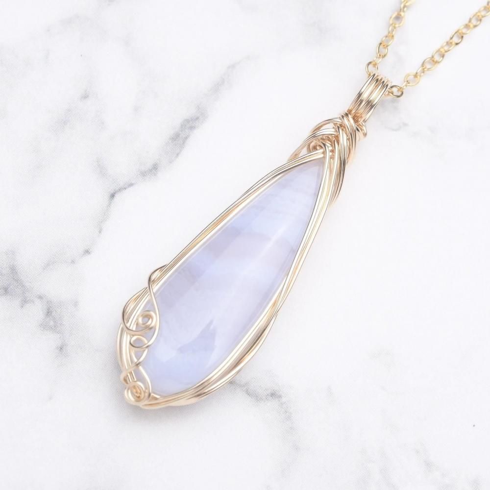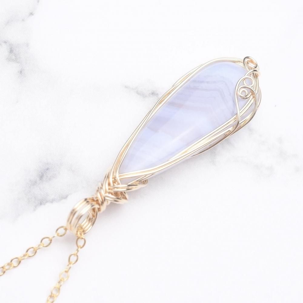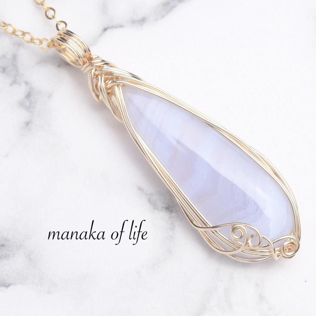 ブルーレースアゲート(瑪瑙)のワイヤーラッピング ペンダントトップです。