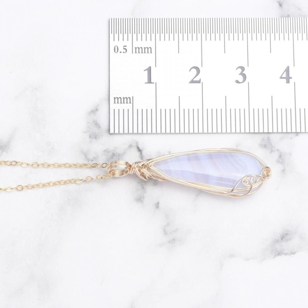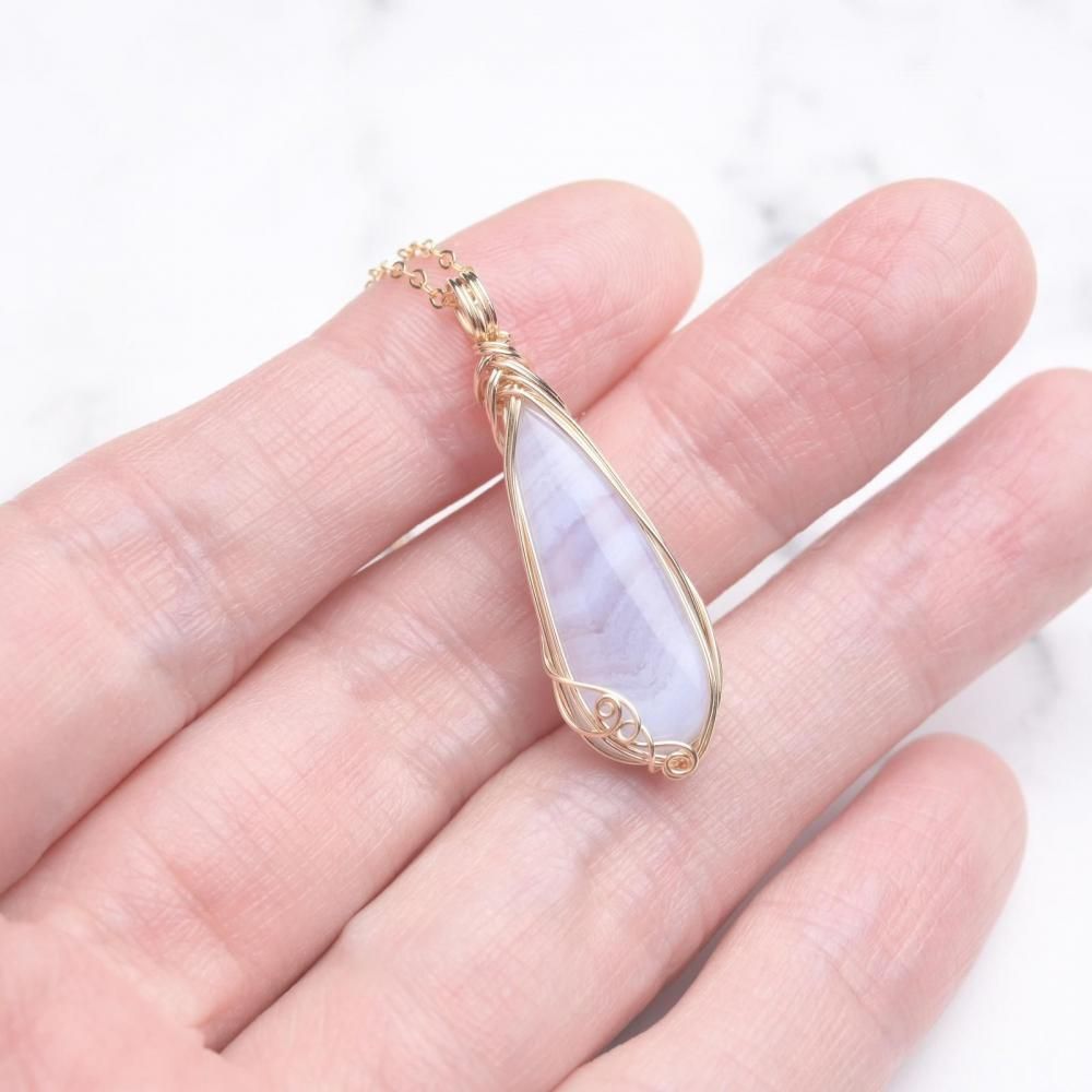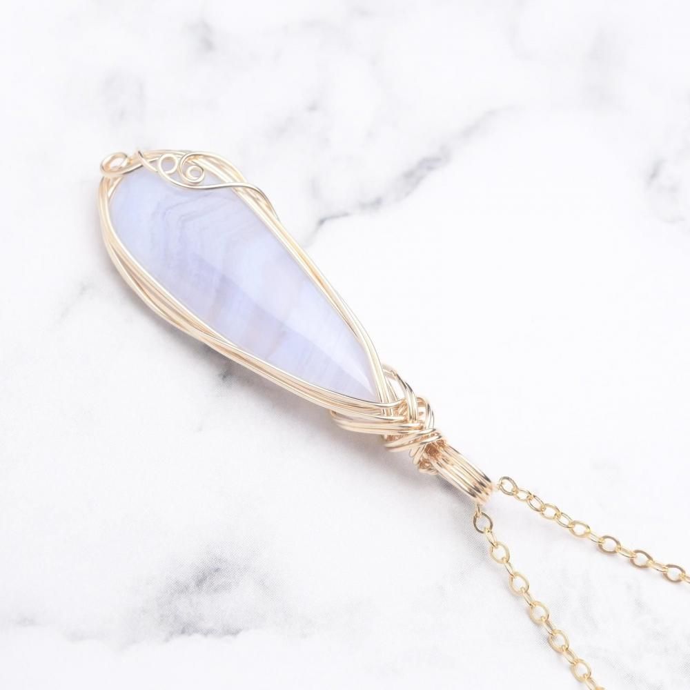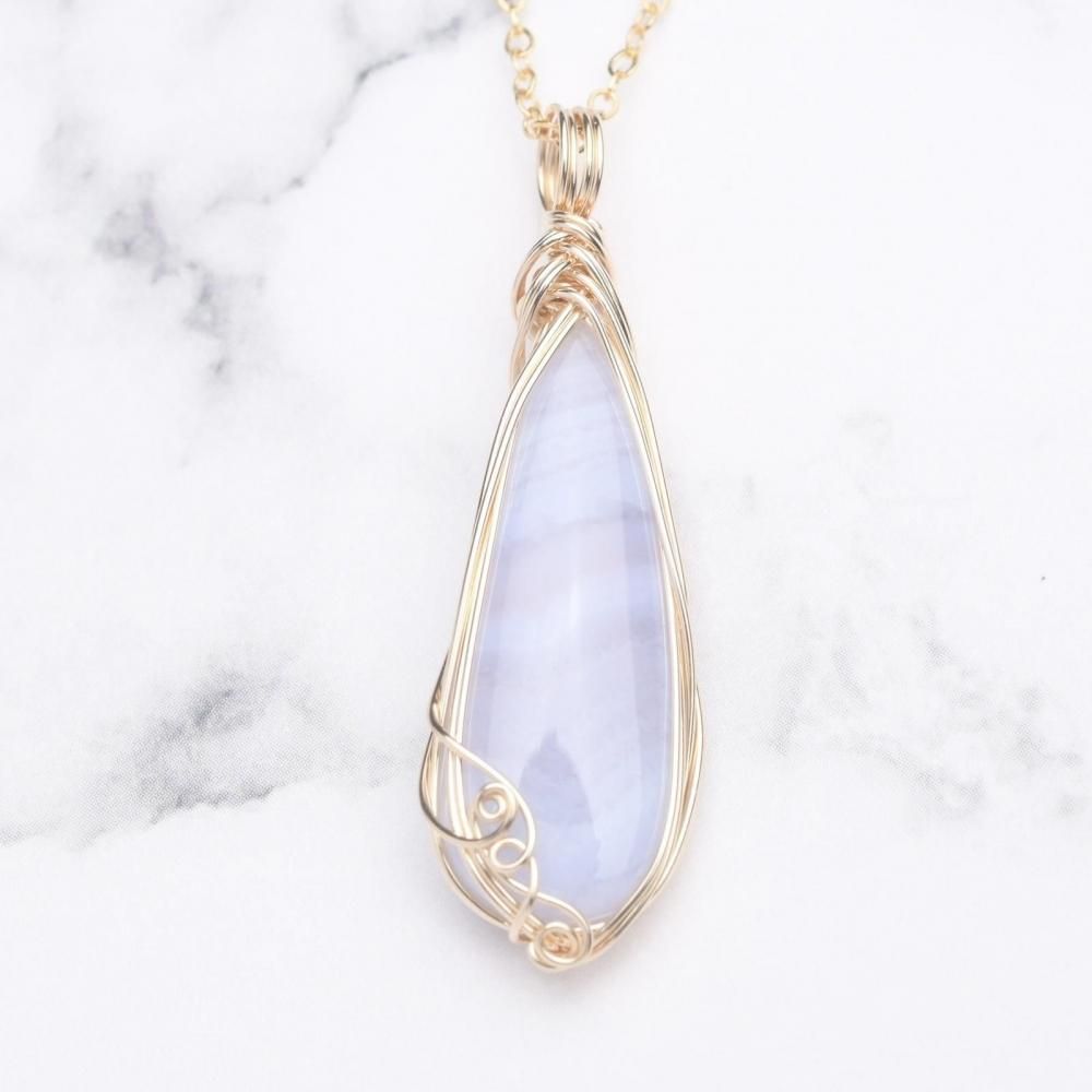 ブルーレースアゲート(瑪瑙)のワイヤーラッピング ペンダントトップです。