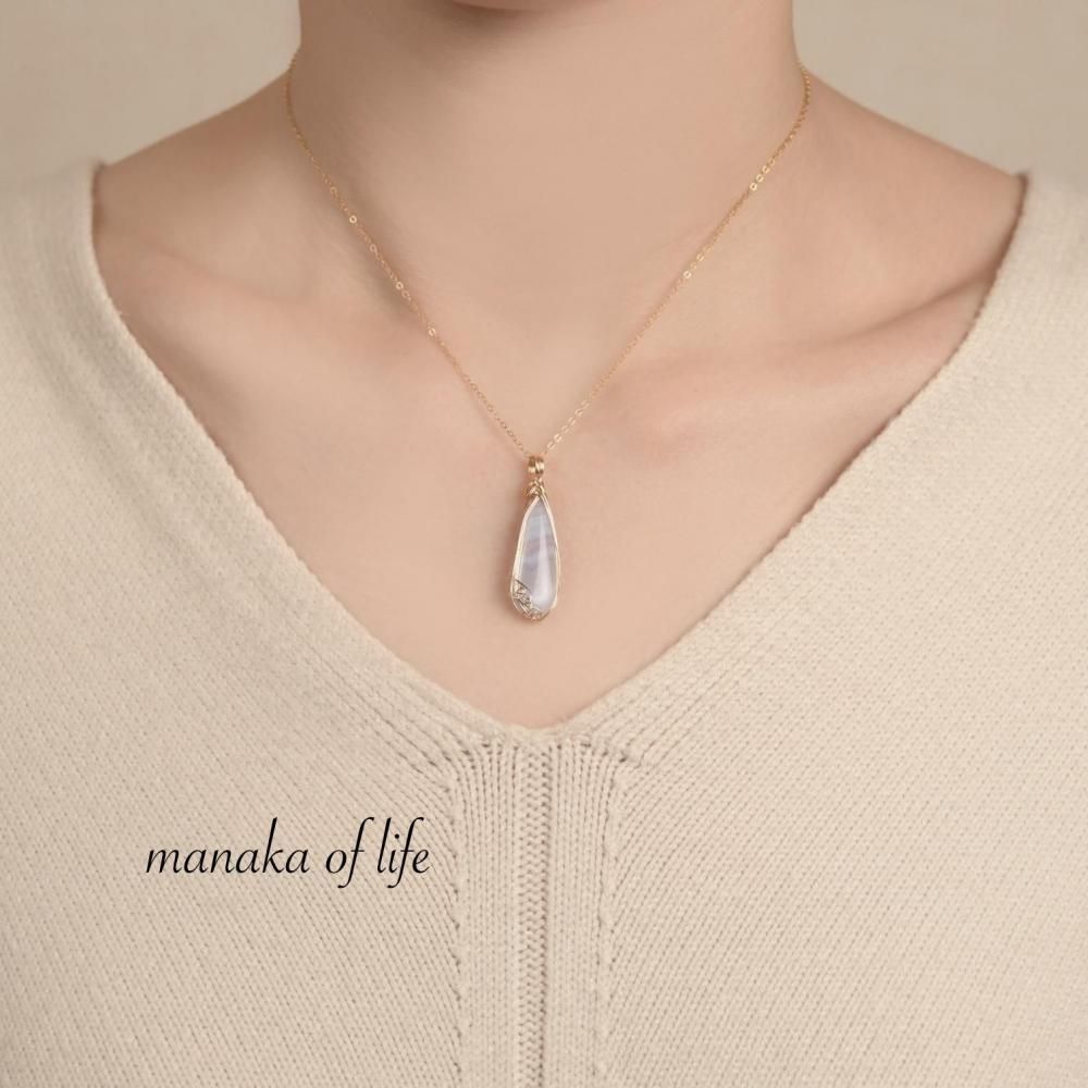 美しいパステルカラーがとっても魅力的です。すっきりとしたドロップ型の石を華やかにワイヤーラッピングで仕立てました。
