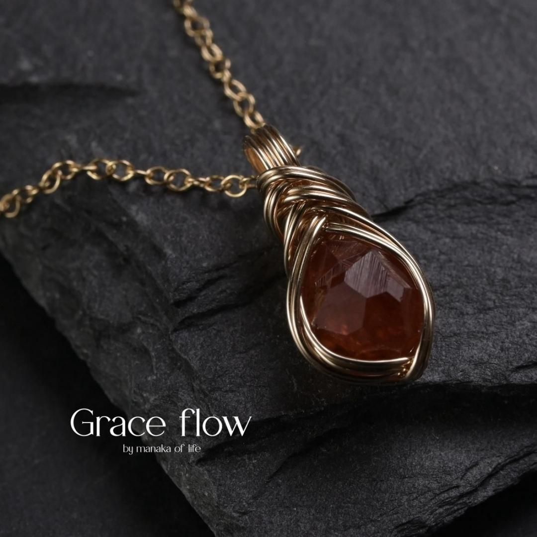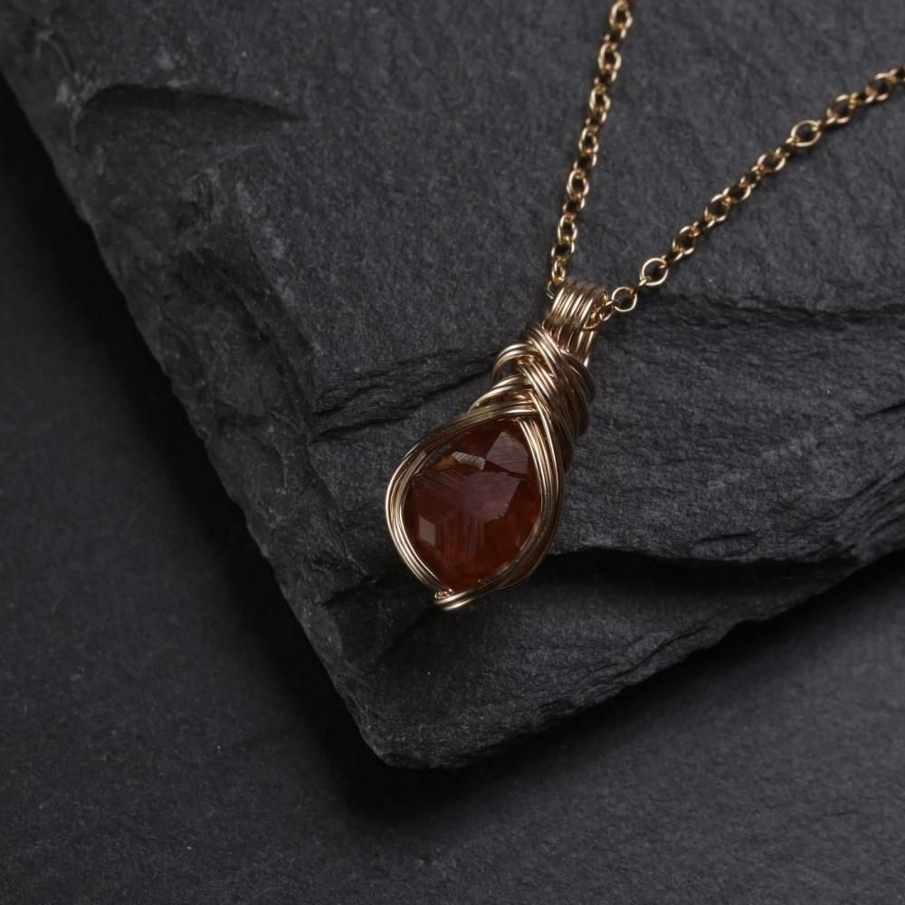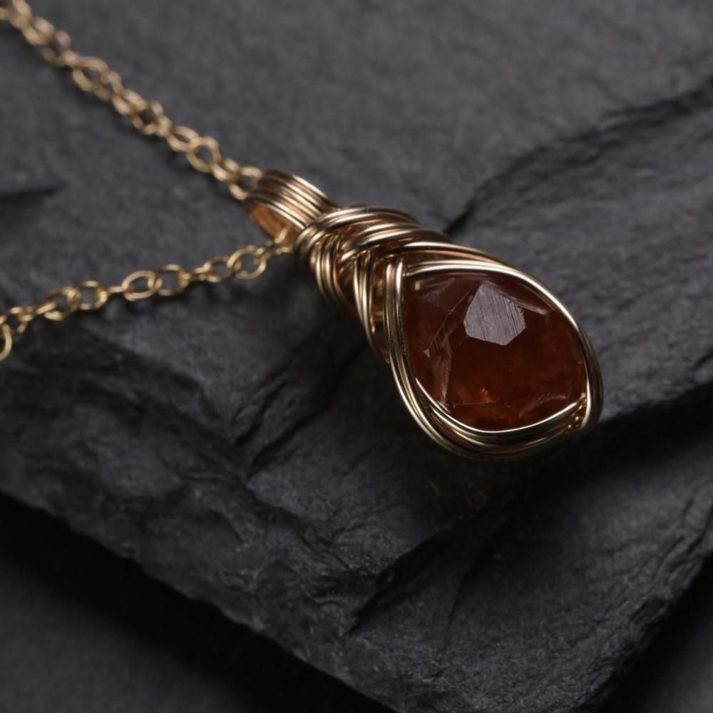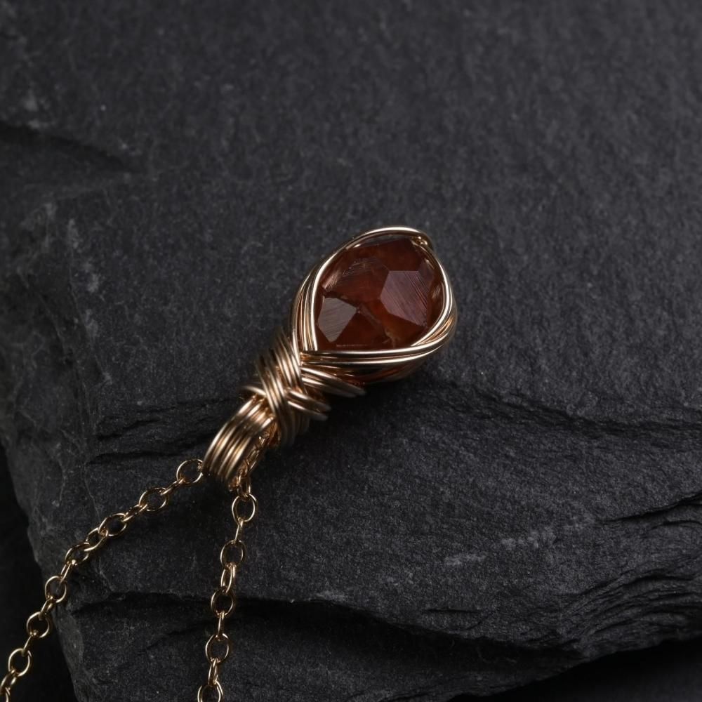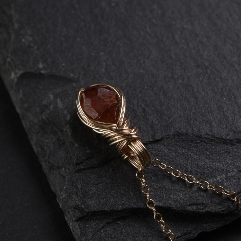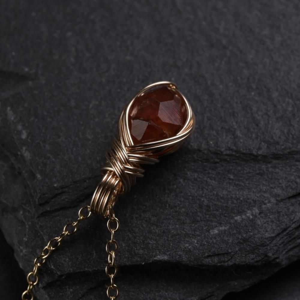 スペサルティンガーネット 原石 ワイヤーラッピングのペンダントトップです。