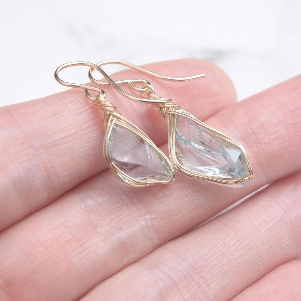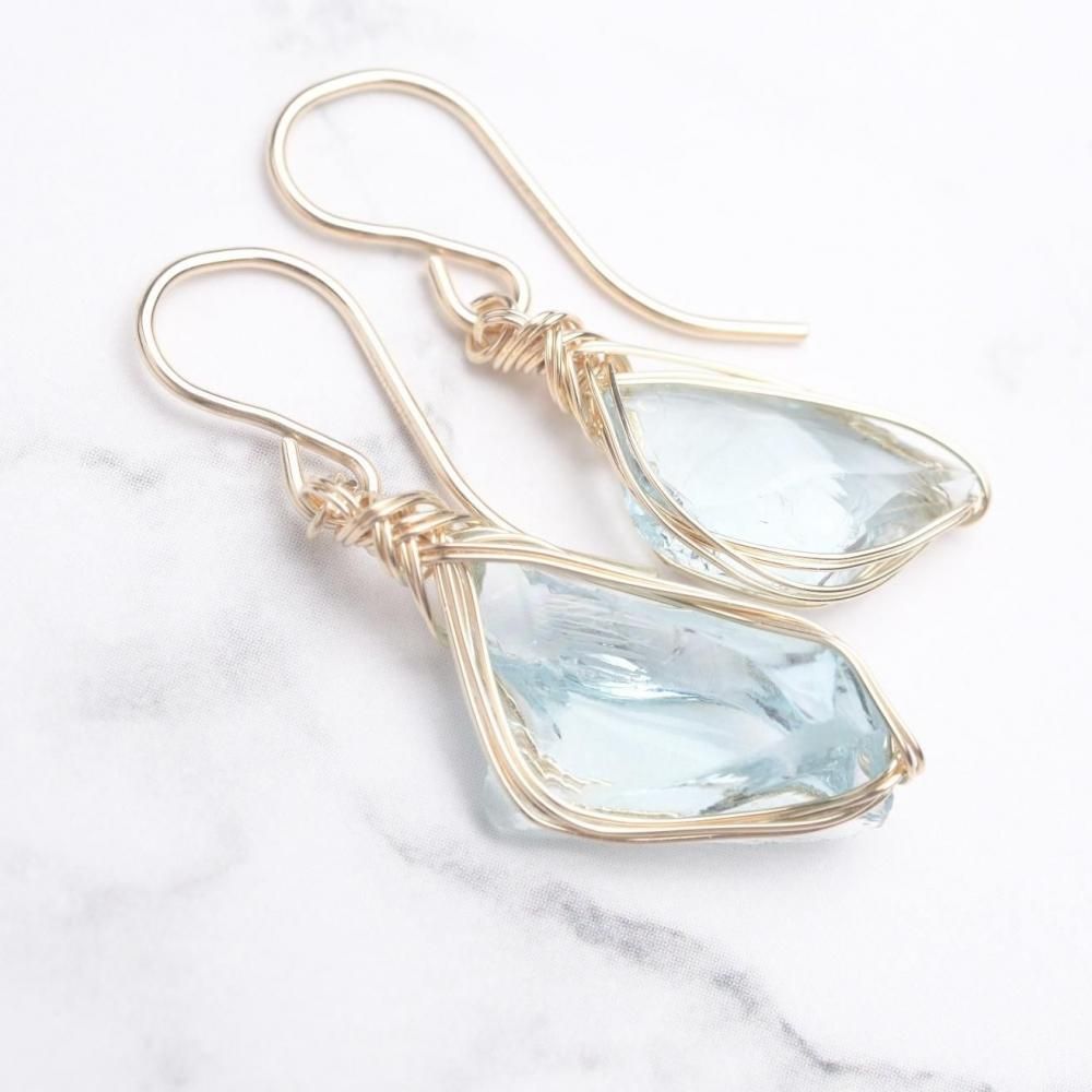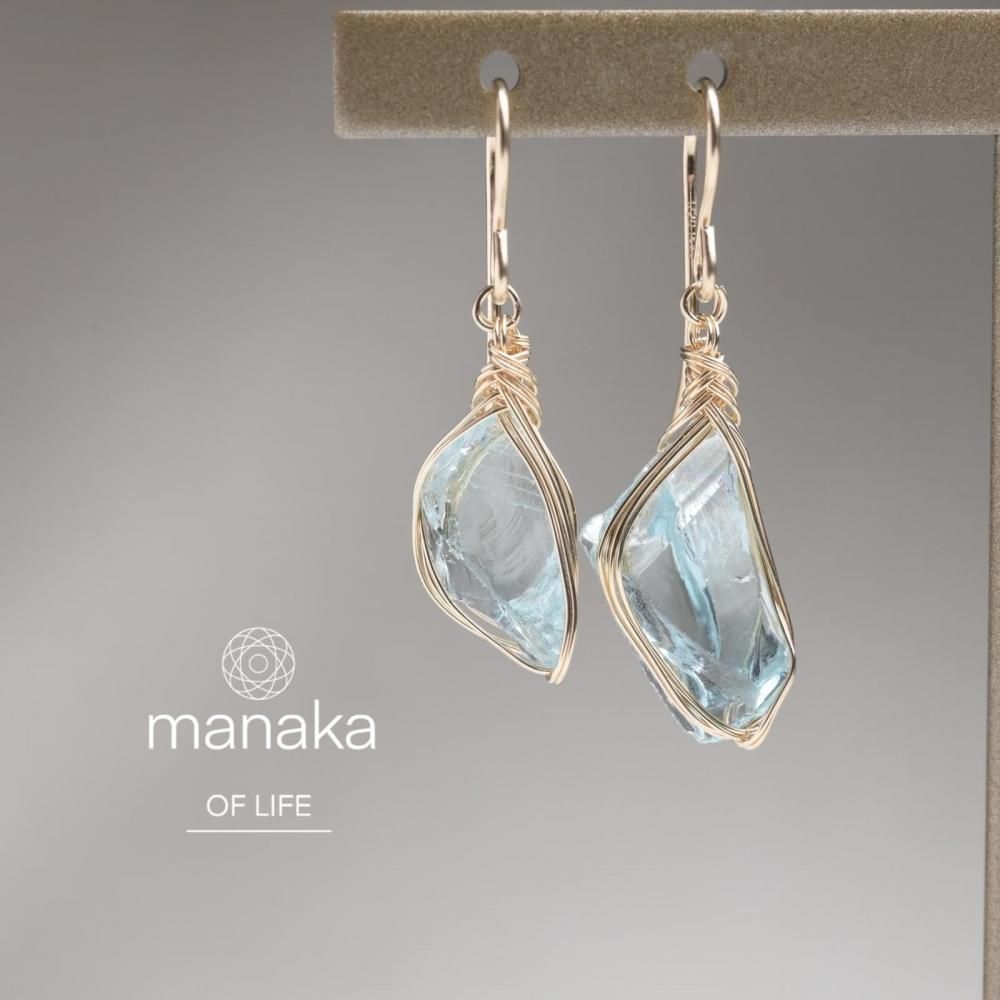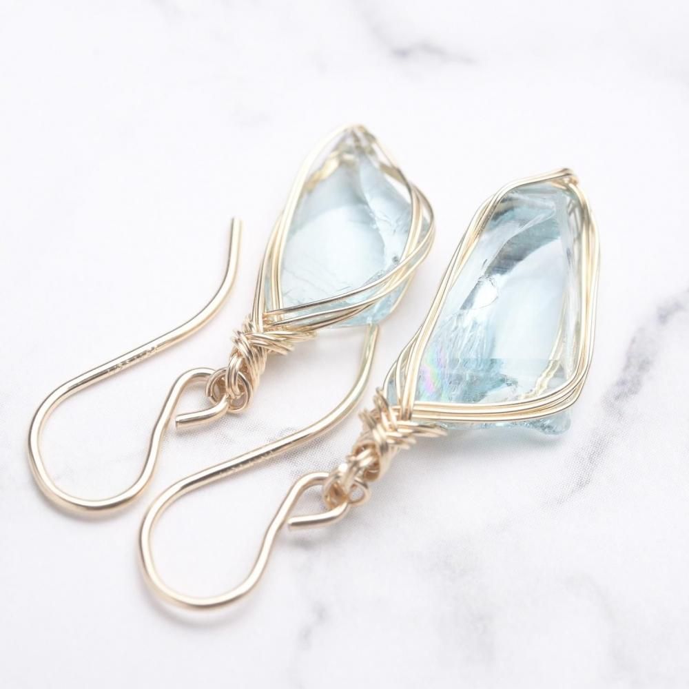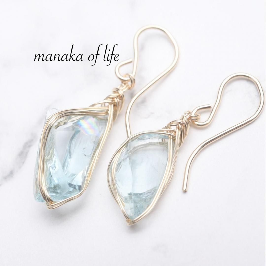 シエラネバダ産アンダラクリスタル アズールエリュシオン ワイヤーラッピングのピアスです。