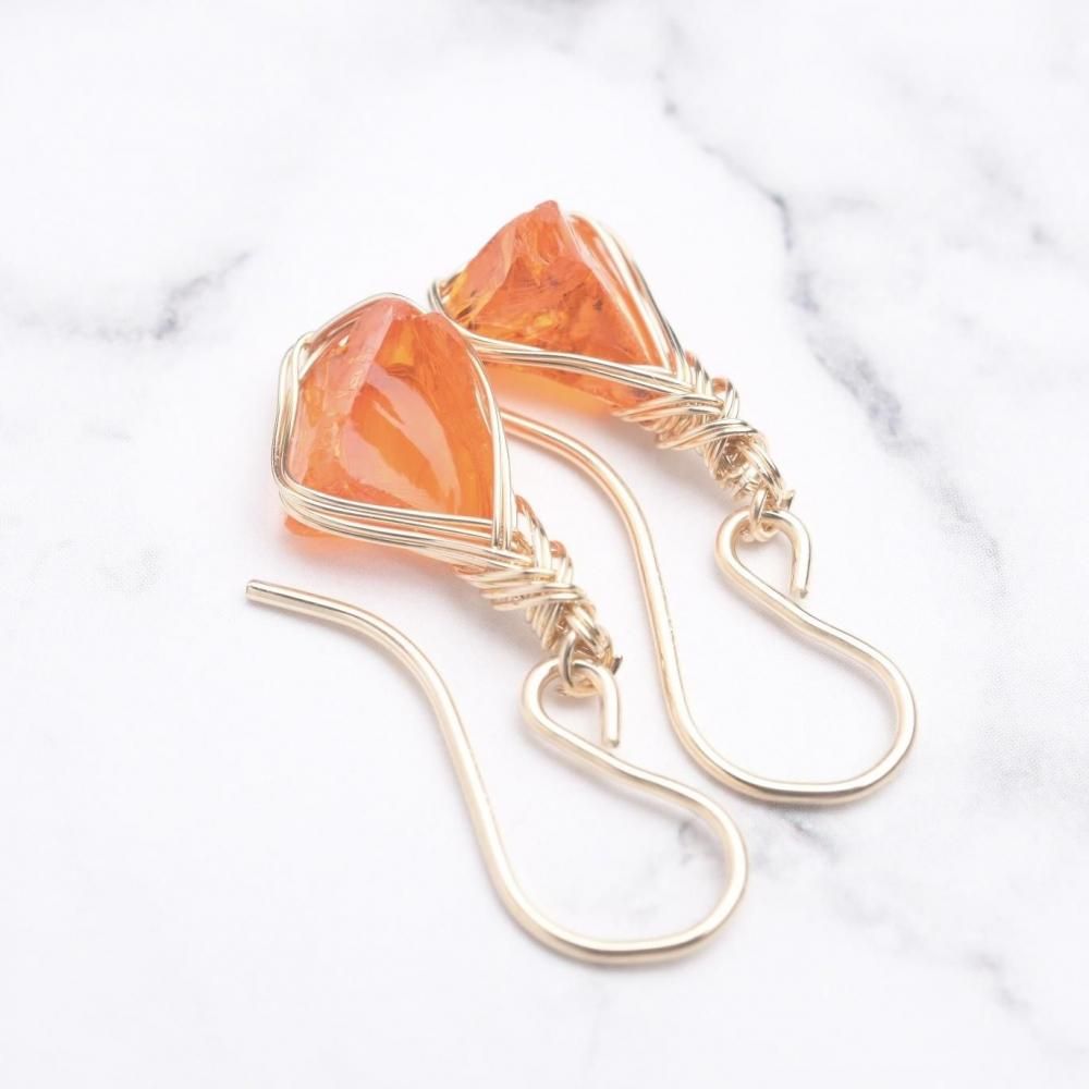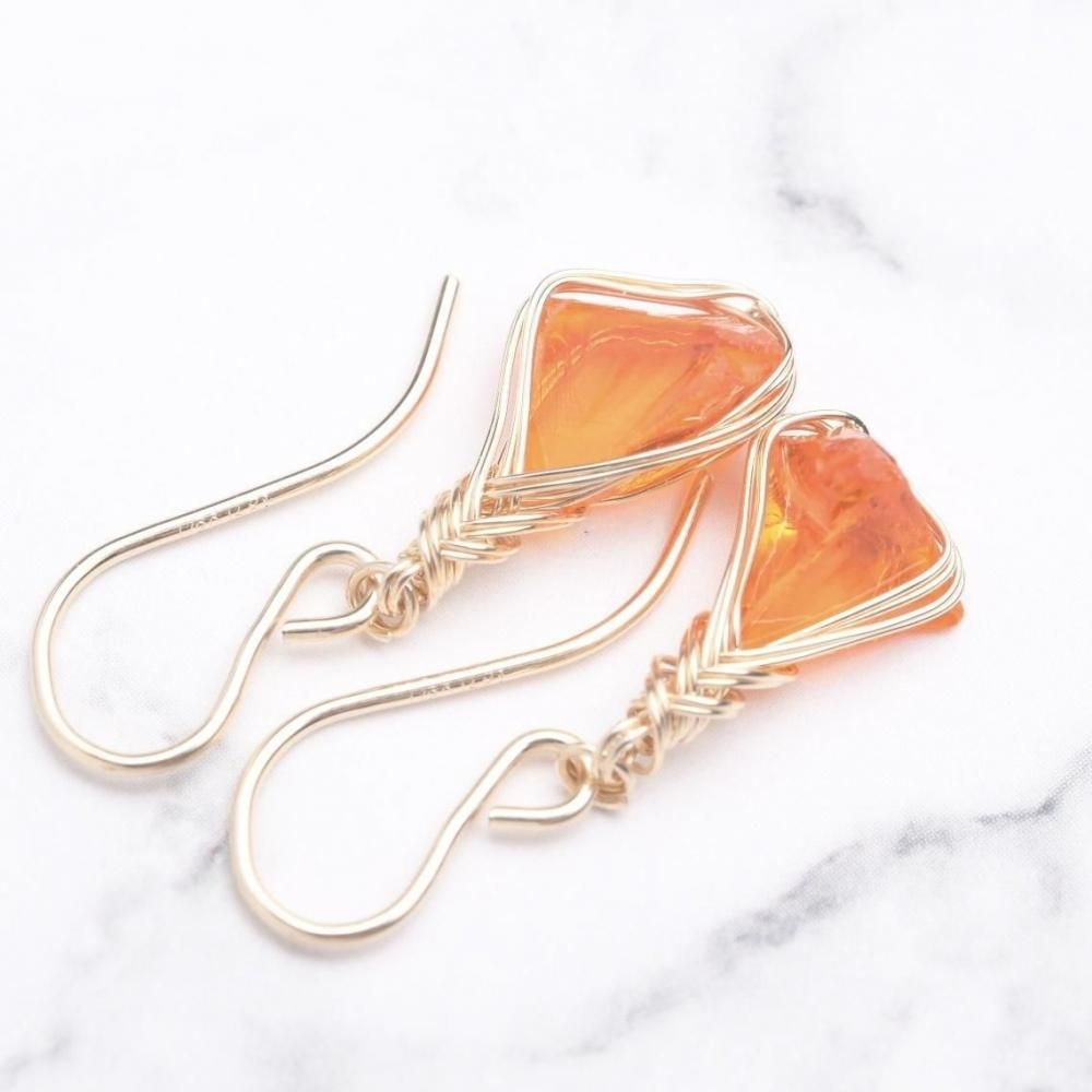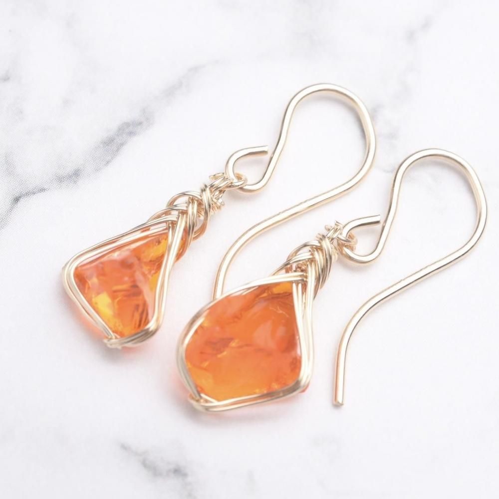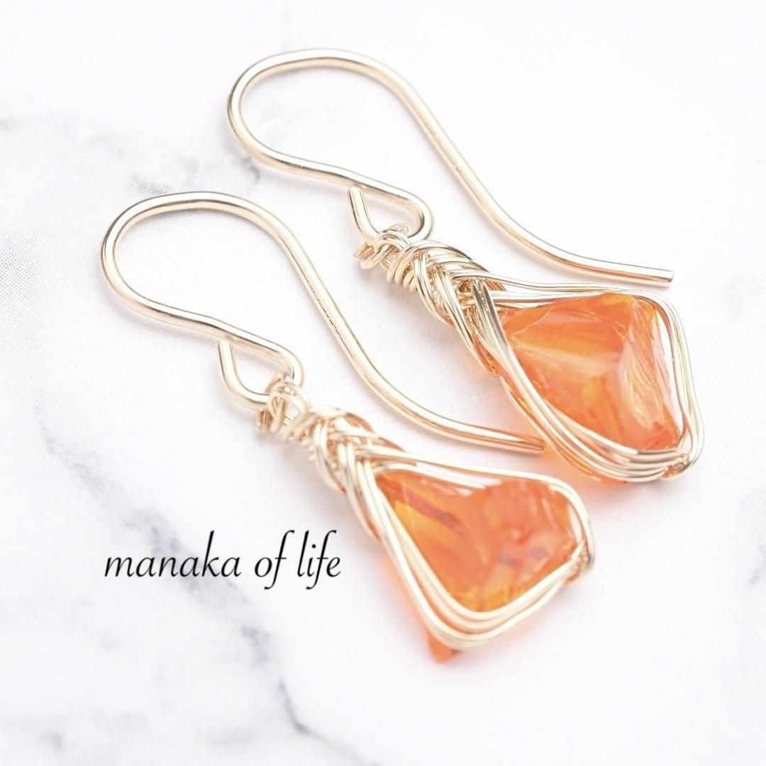 シエラネバダ産アンダラクリスタル レムリアンサンライズ ワイヤーラッピングのピアスです。