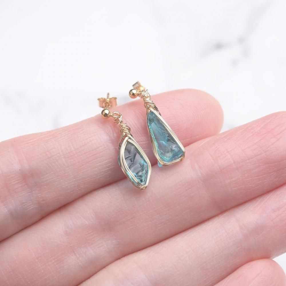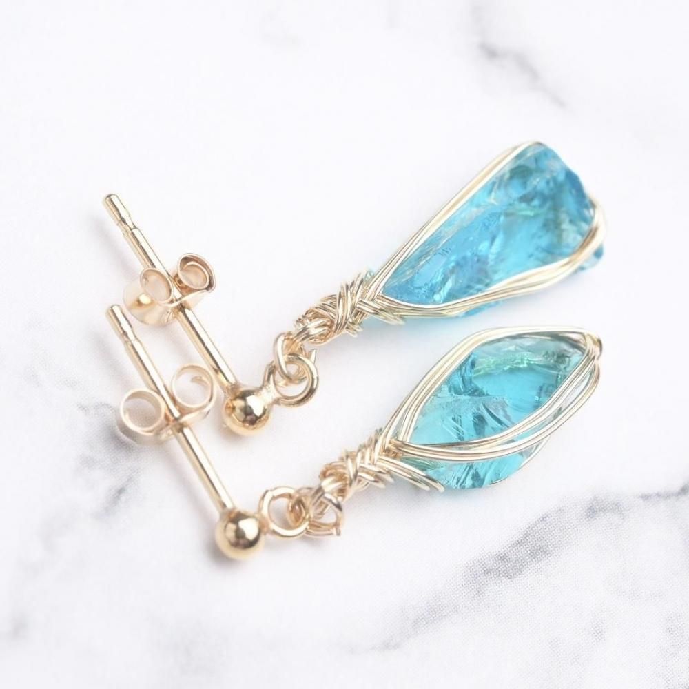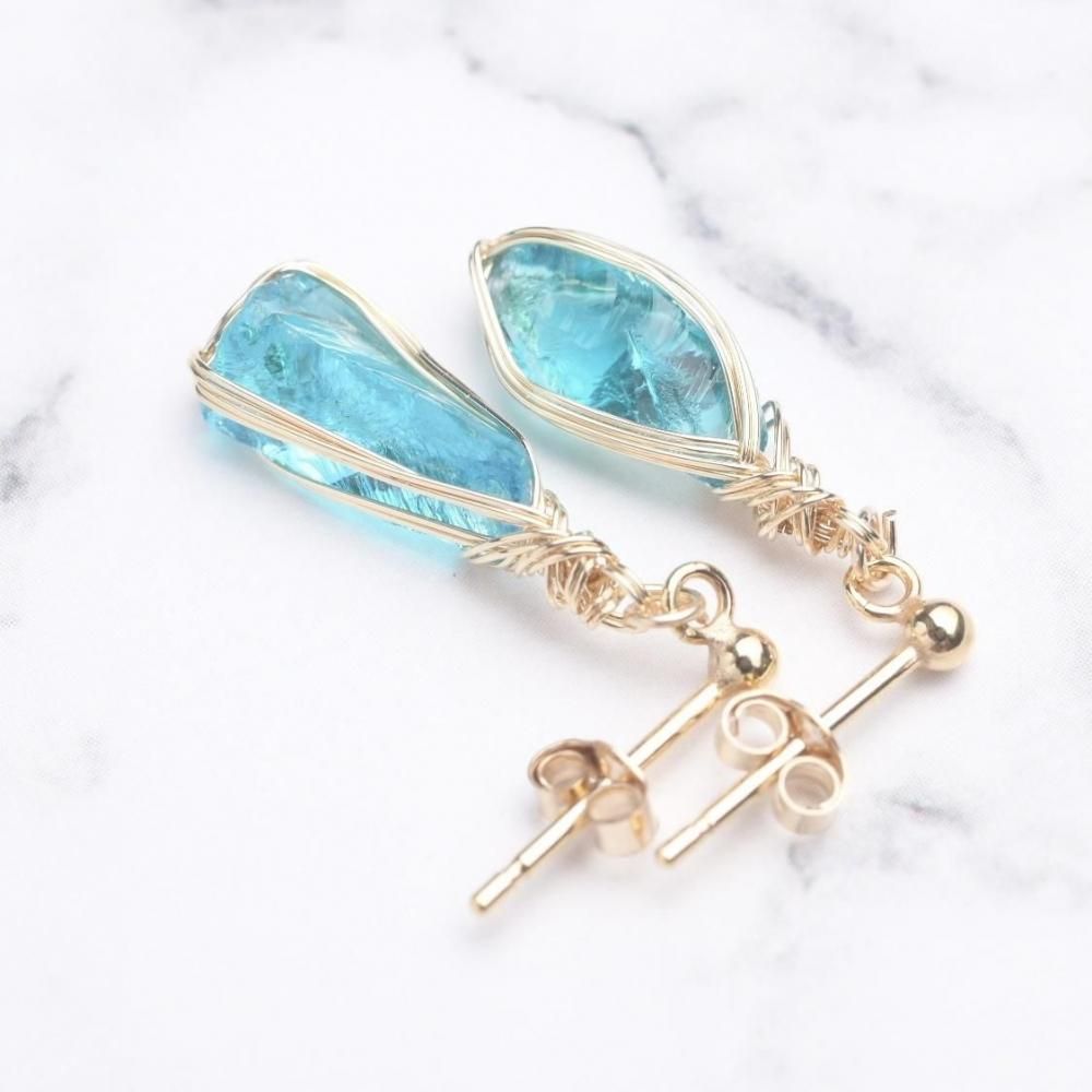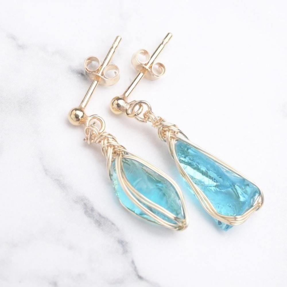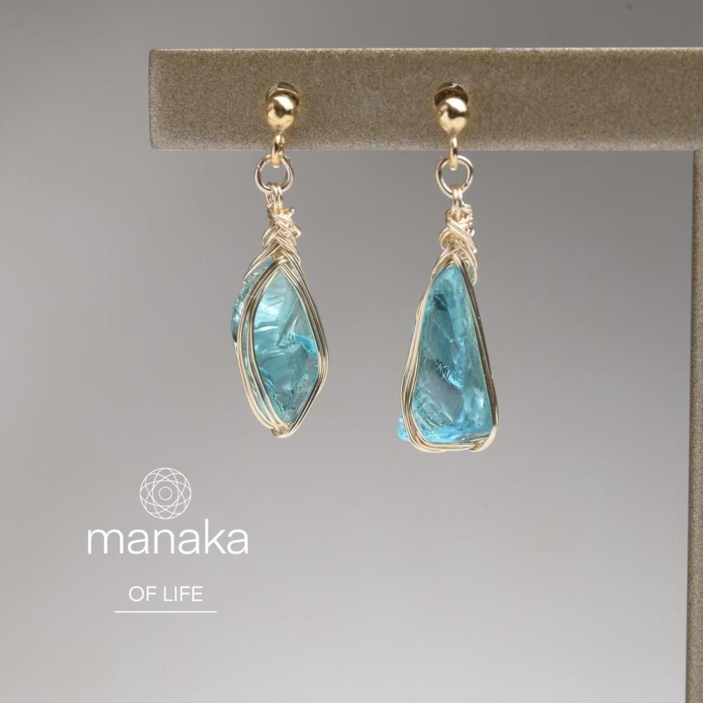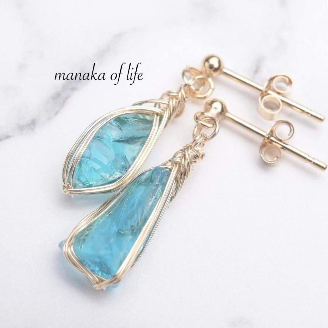 シエラネバダ産アンダラクリスタル エレクトリックブルー ワイヤーラッピングのピアスです。