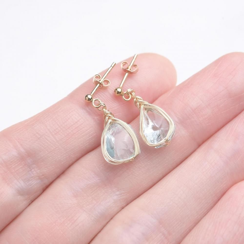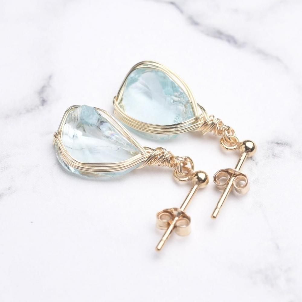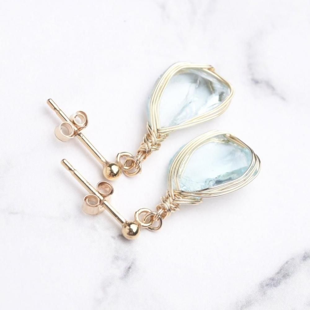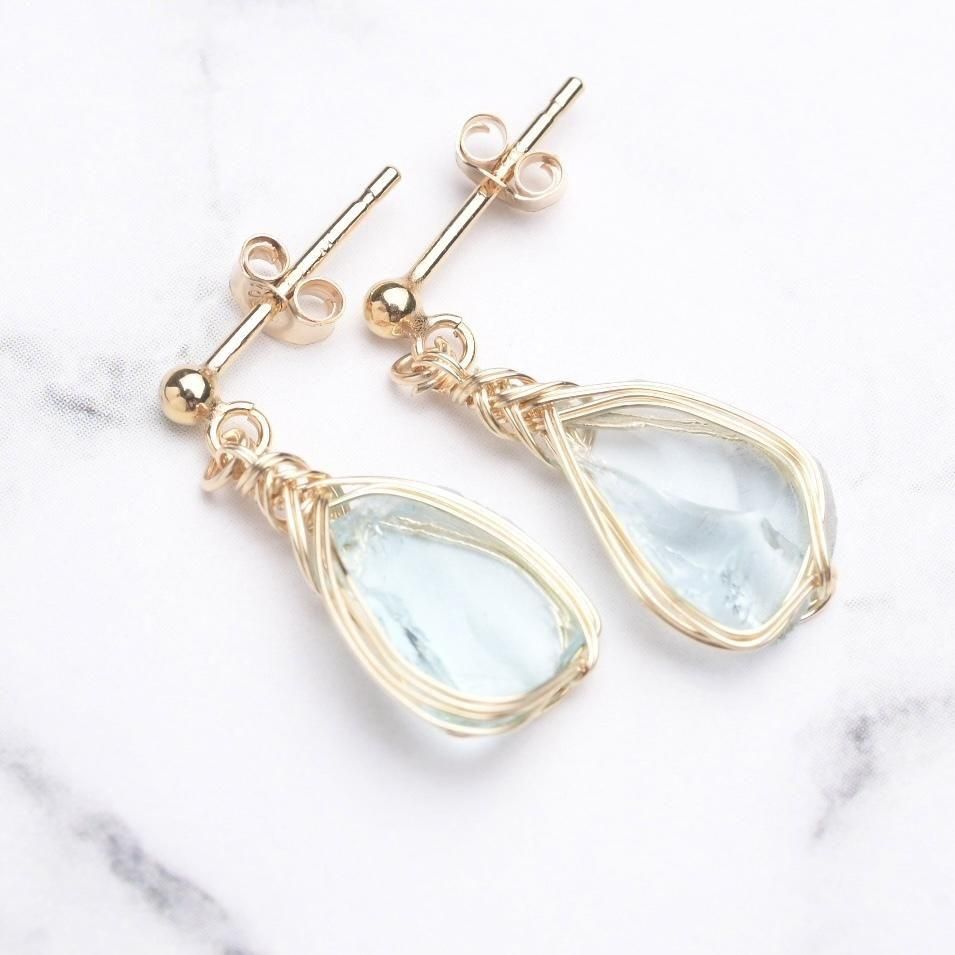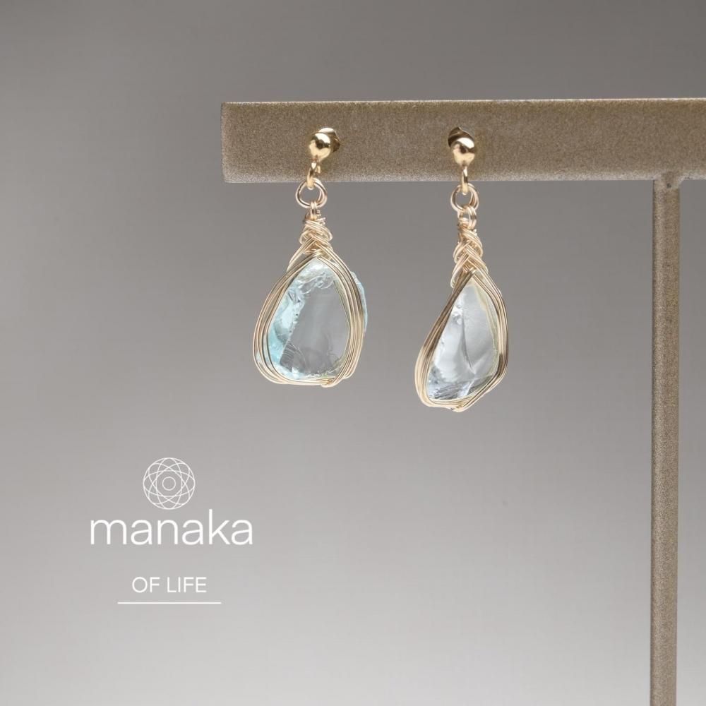 シエラネバダ産アンダラクリスタル アズールエリュシオン ワイヤーラッピングのピアスです。