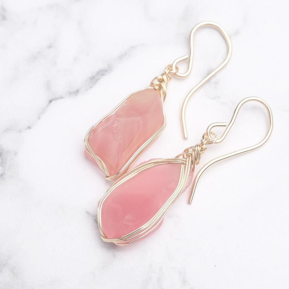 シエラネバダ産アンダラクリスタル パステル ソフィア ワイヤーラッピングのピアスです。