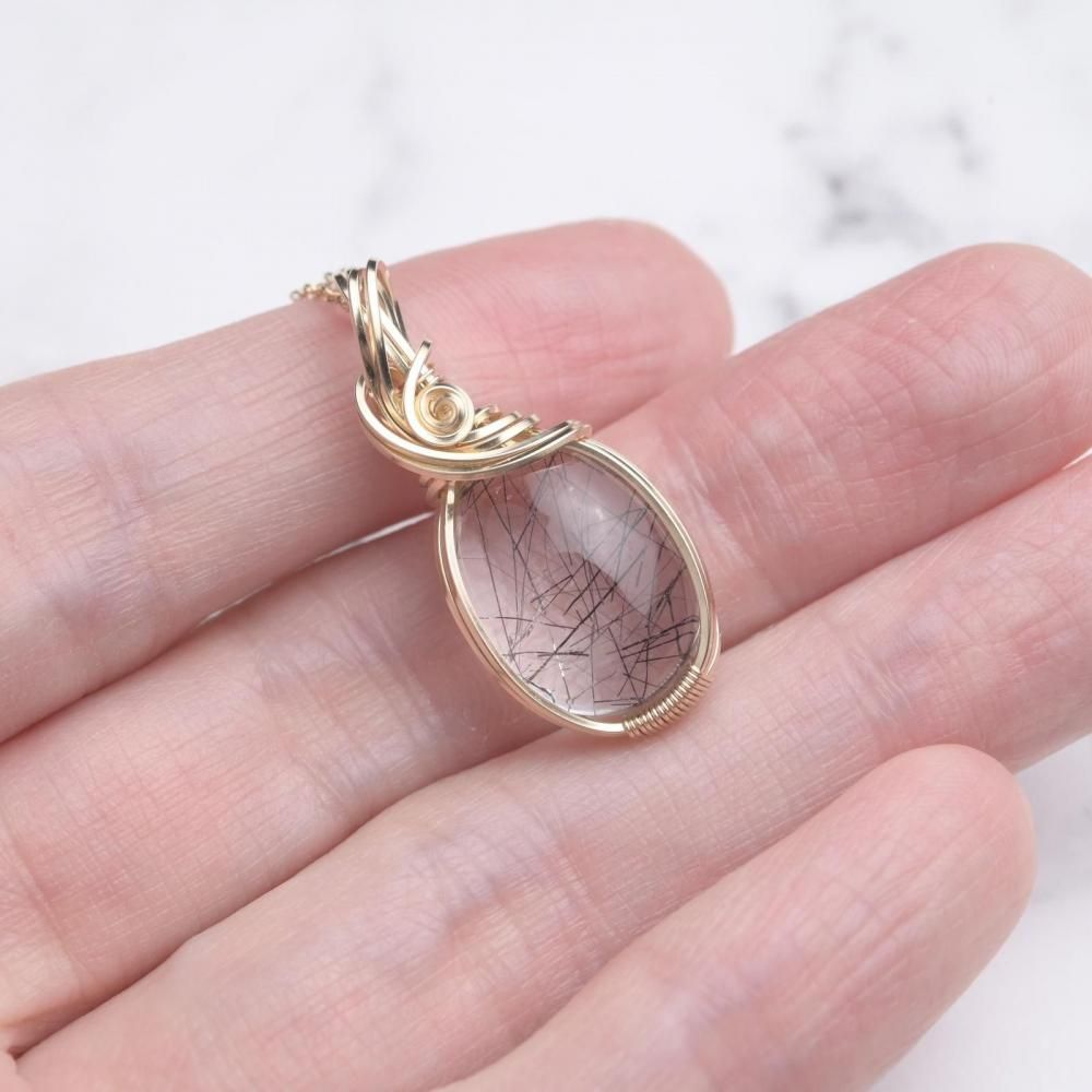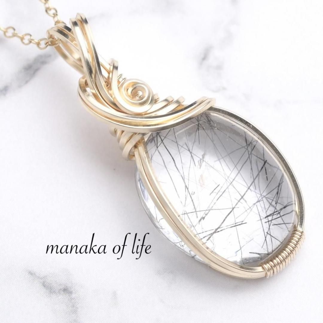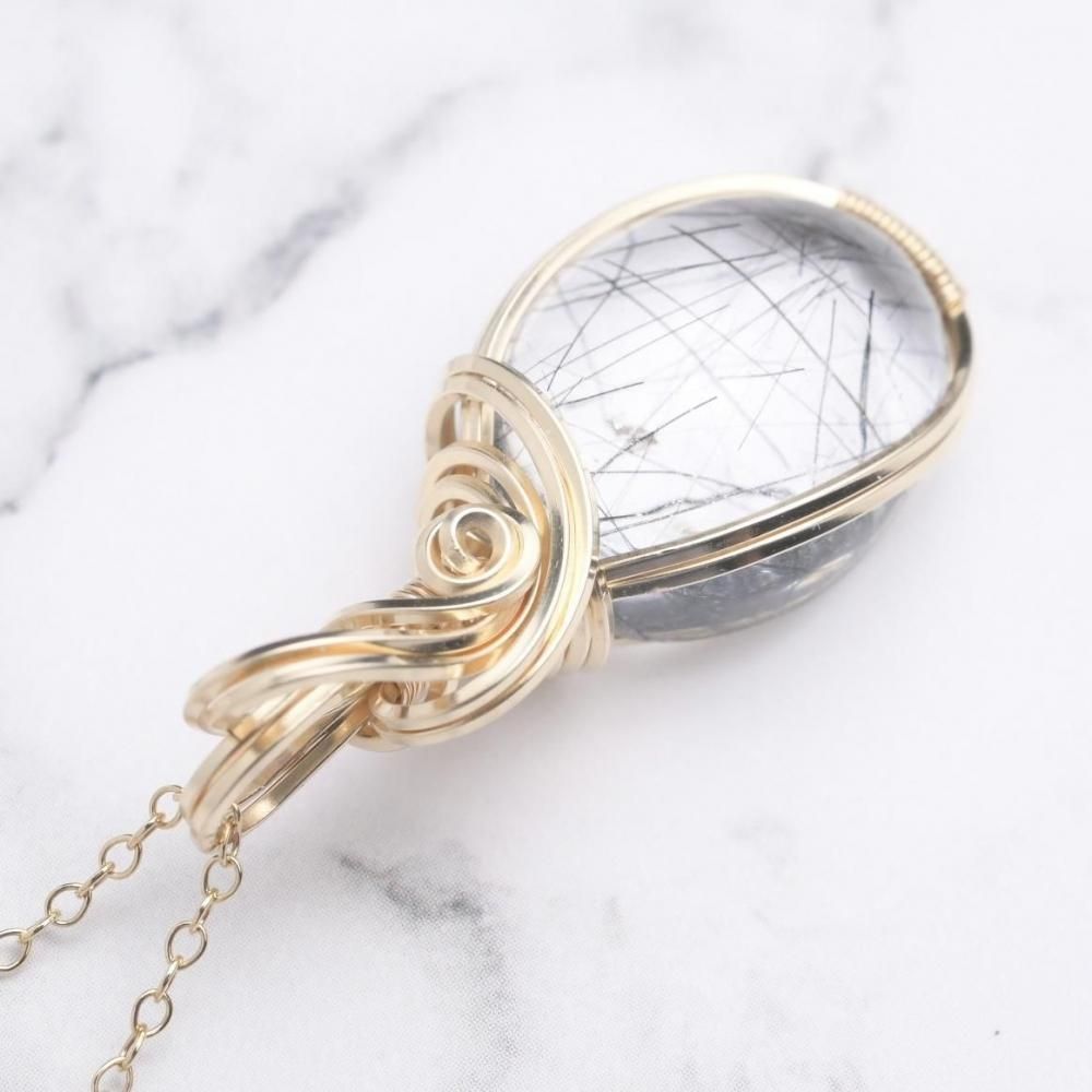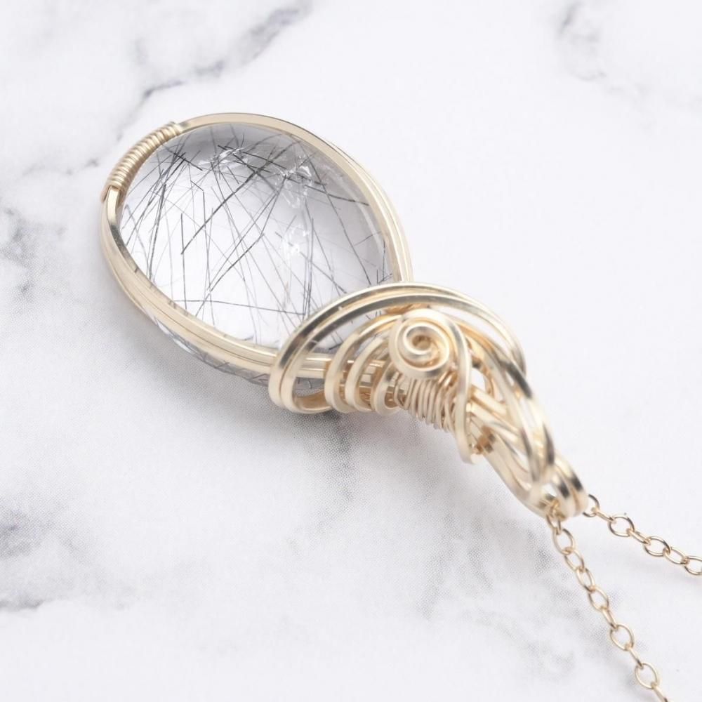 ブラックトルマリンインクォーツ ワイヤーラッピングのペンダントトップです。