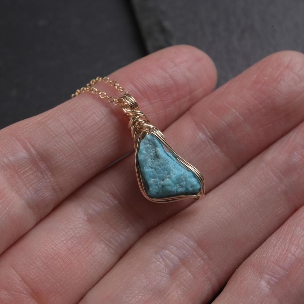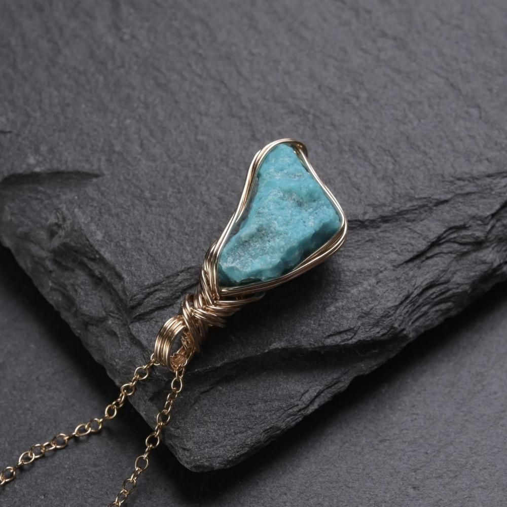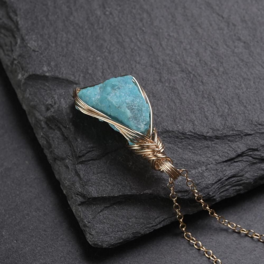 スリーピングビューティー 原石 ワイヤーラッピングのペンダントトップです。