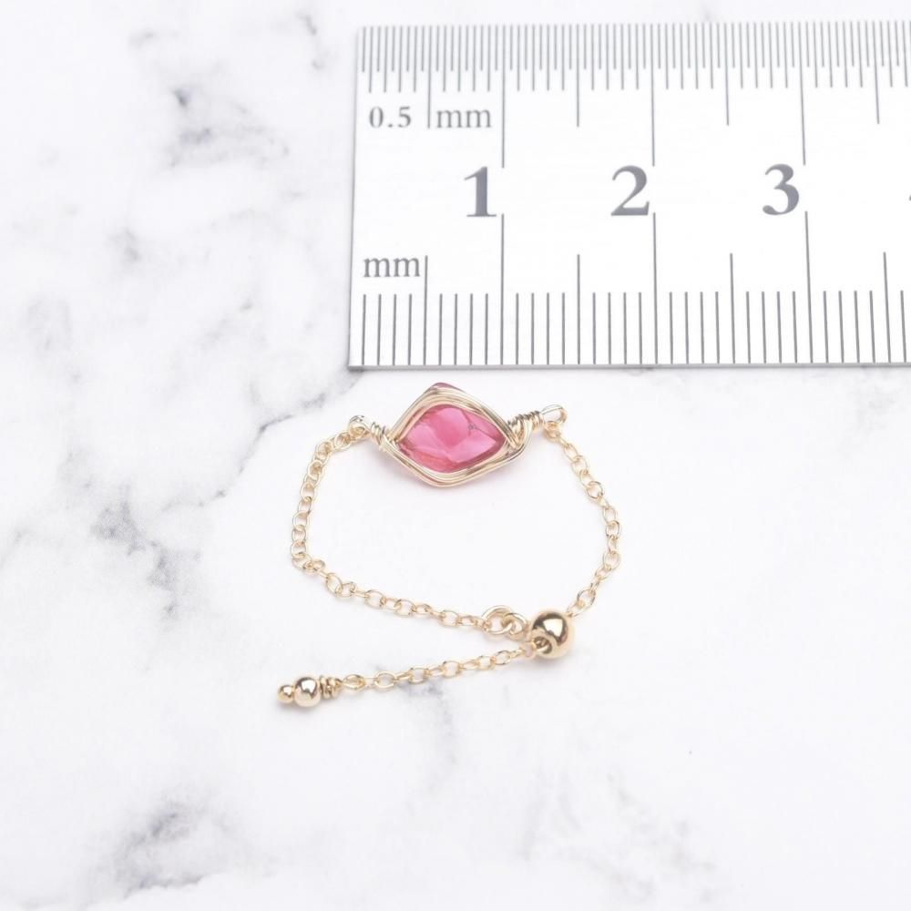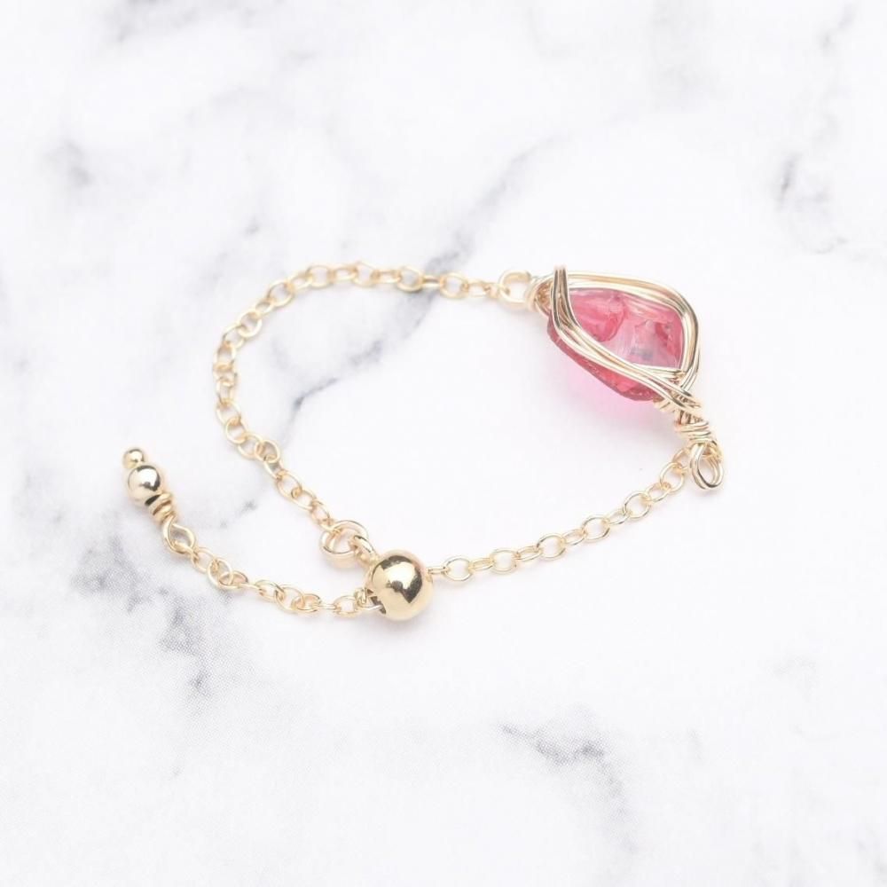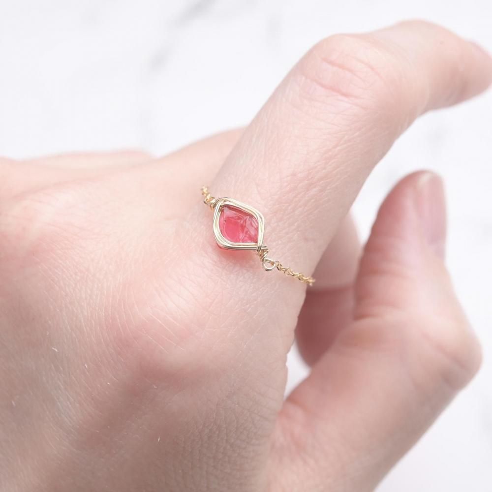 シエラネバダ産 アンダラクリスタル ラズベリー ワイヤーラッピングのチェーンリングです。