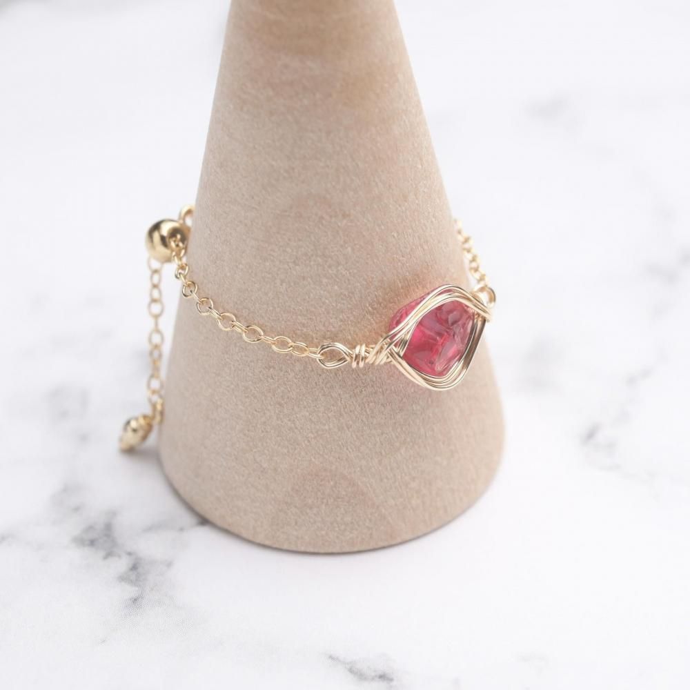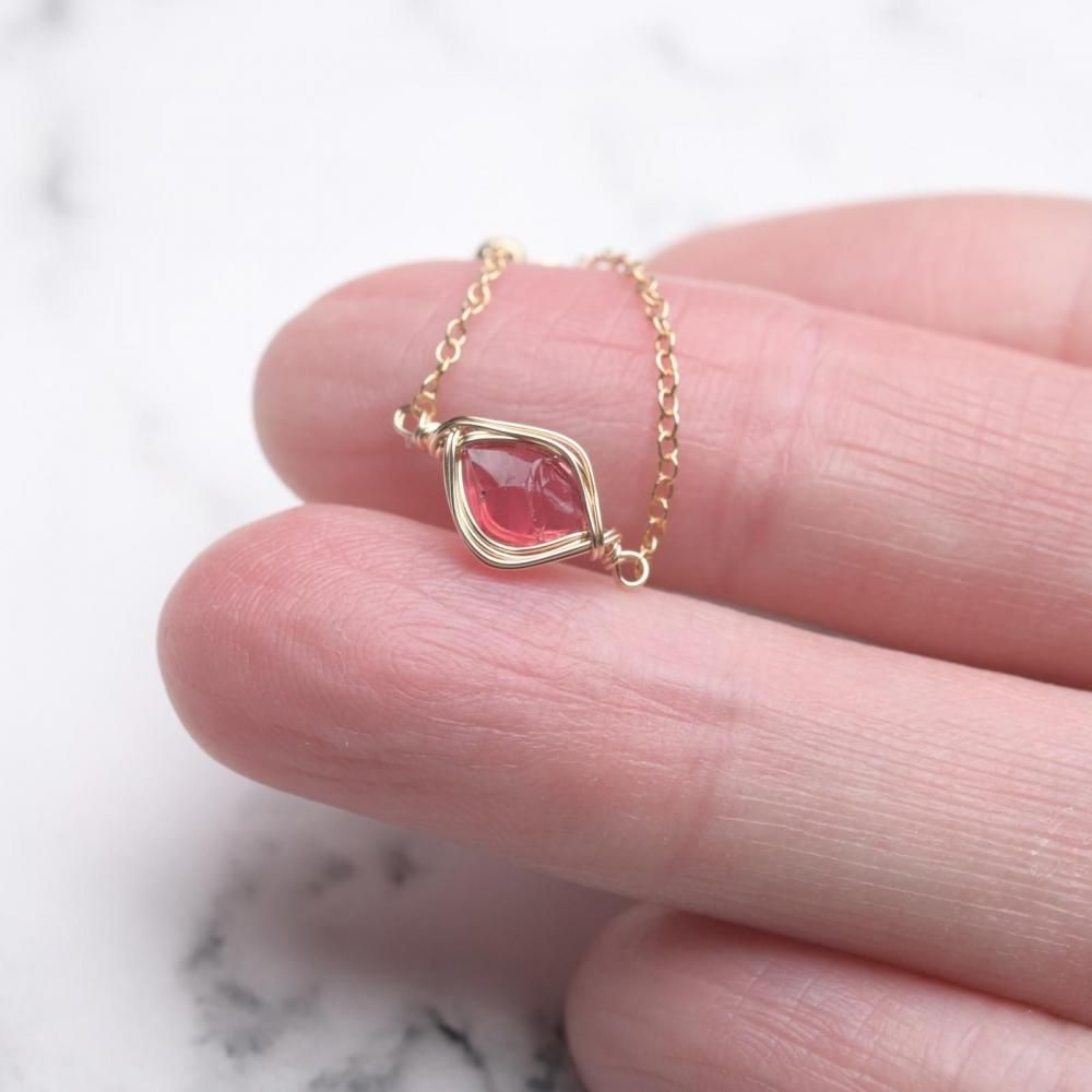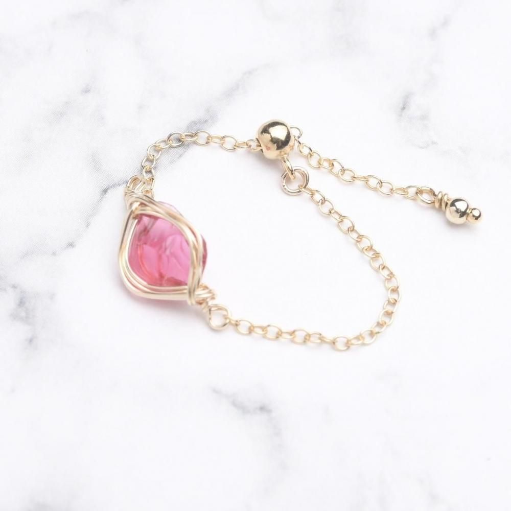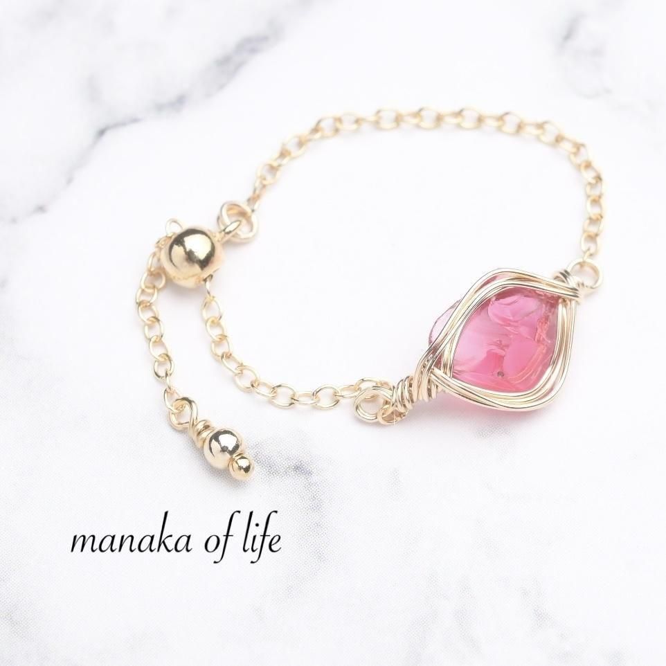 シエラネバダ産 アンダラクリスタル ラズベリー ワイヤーラッピングのチェーンリングです。