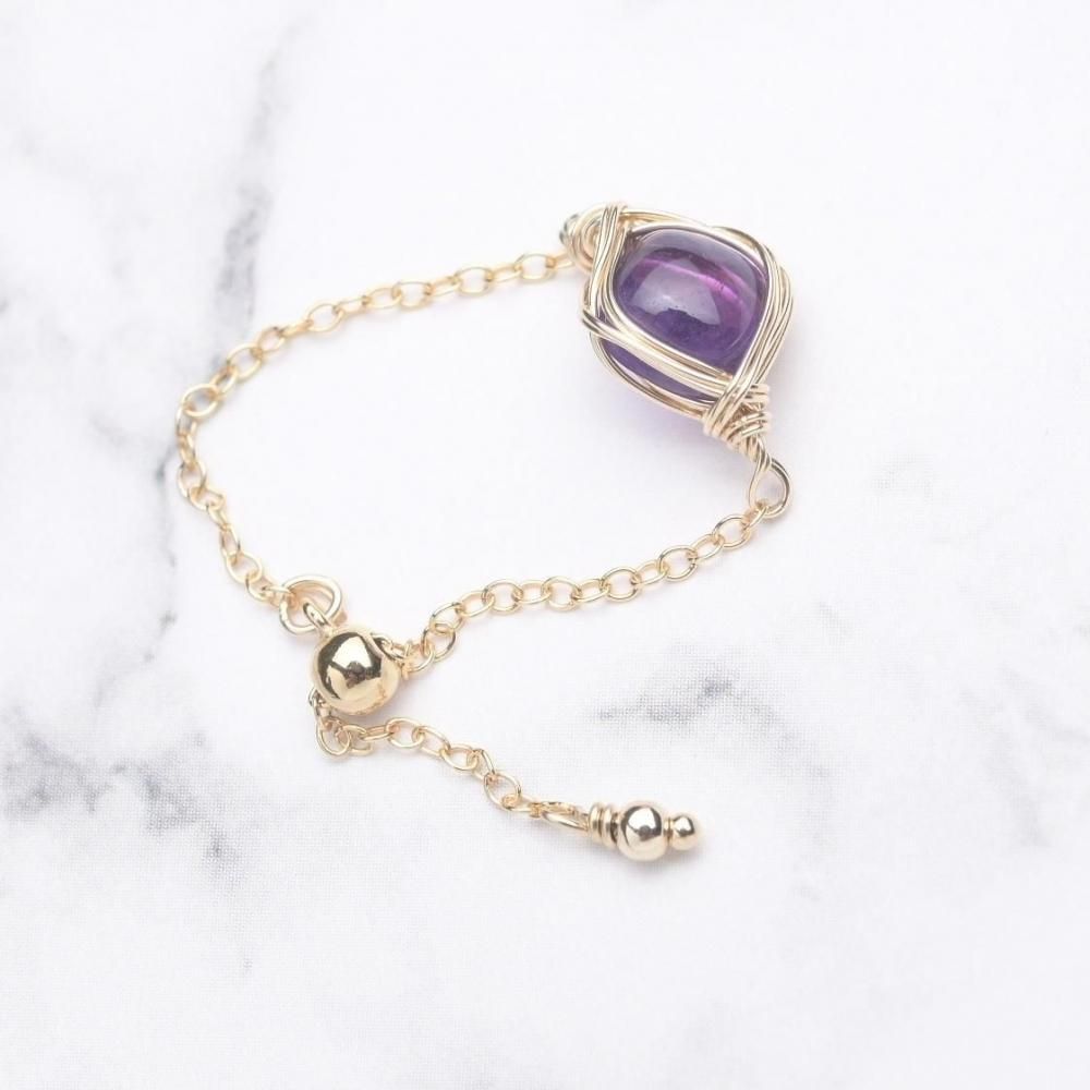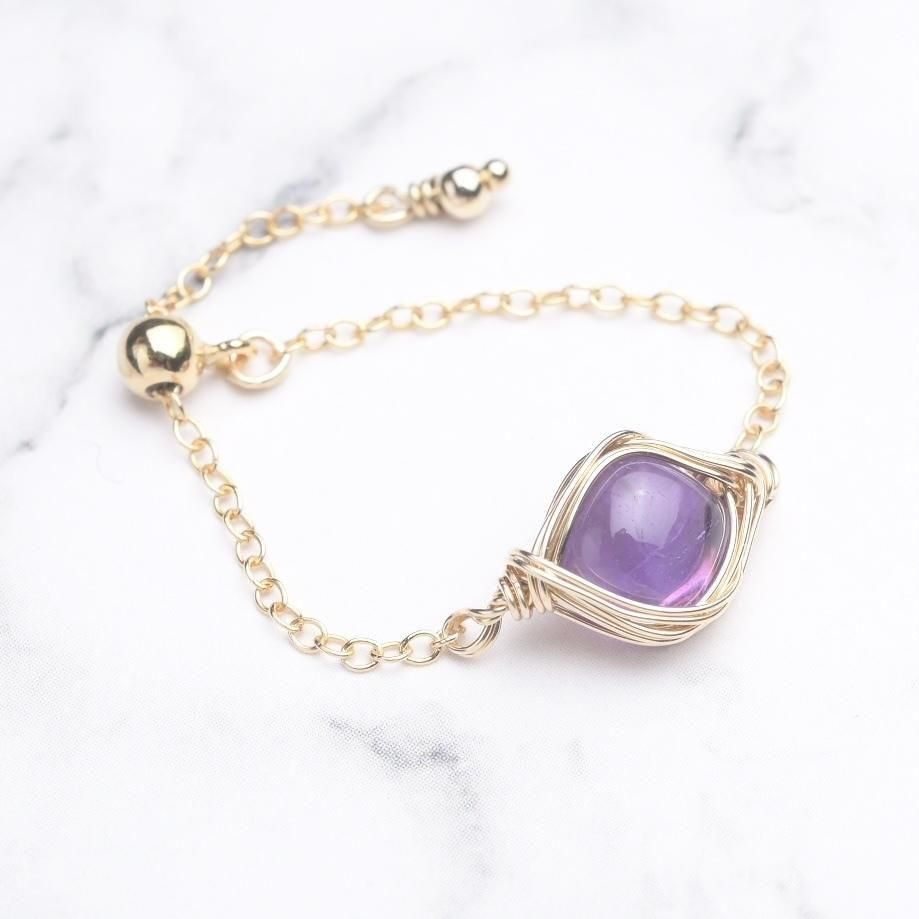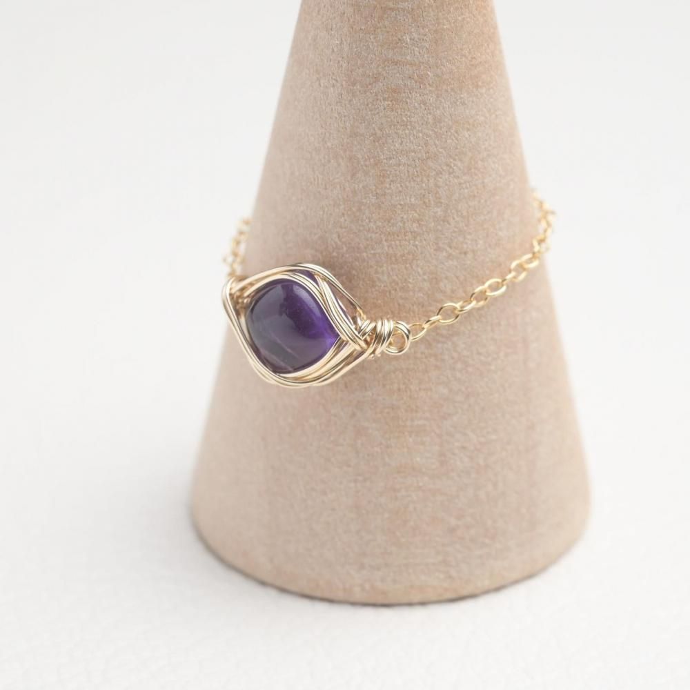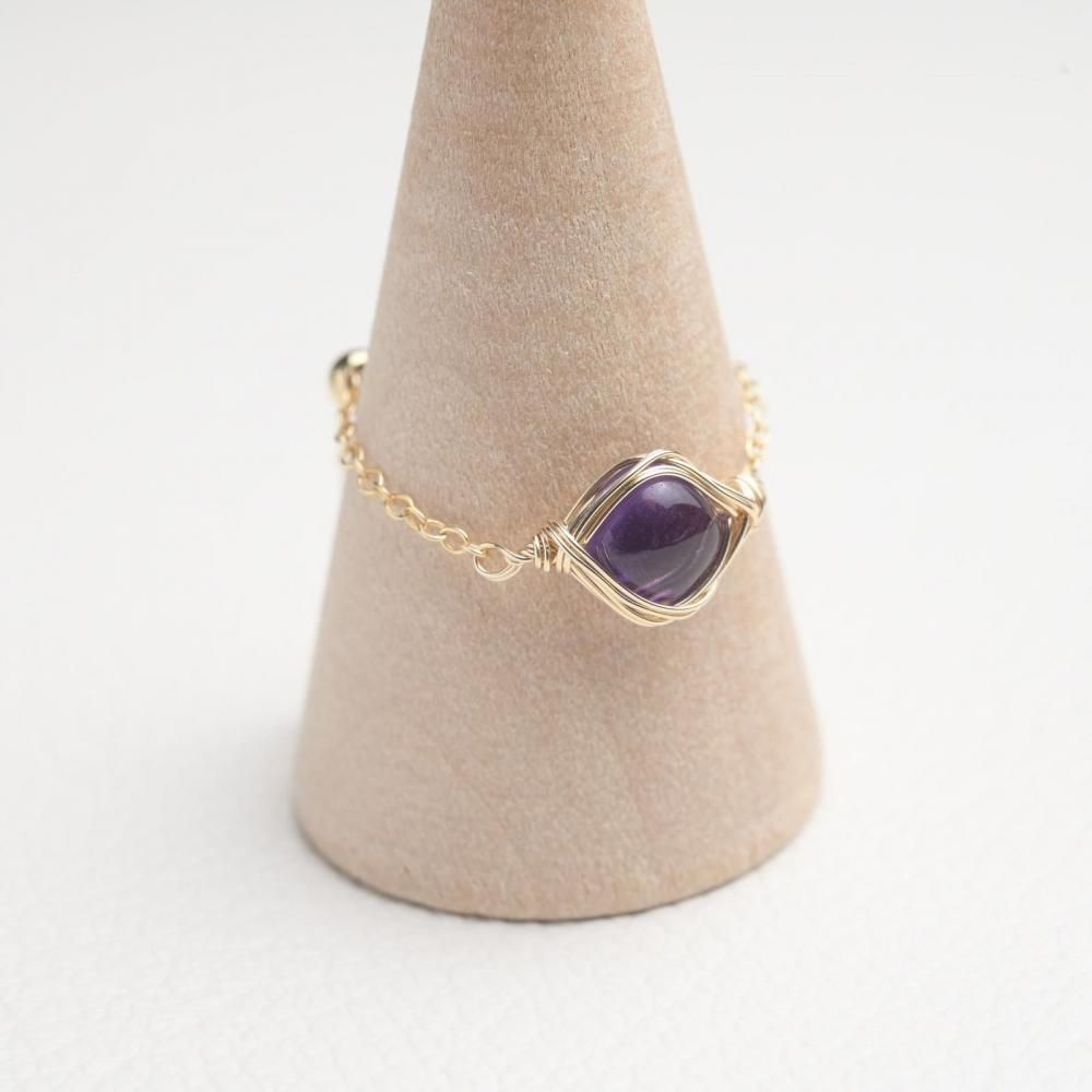 アメジスト ワイヤーラッピングのチェーンリングです。