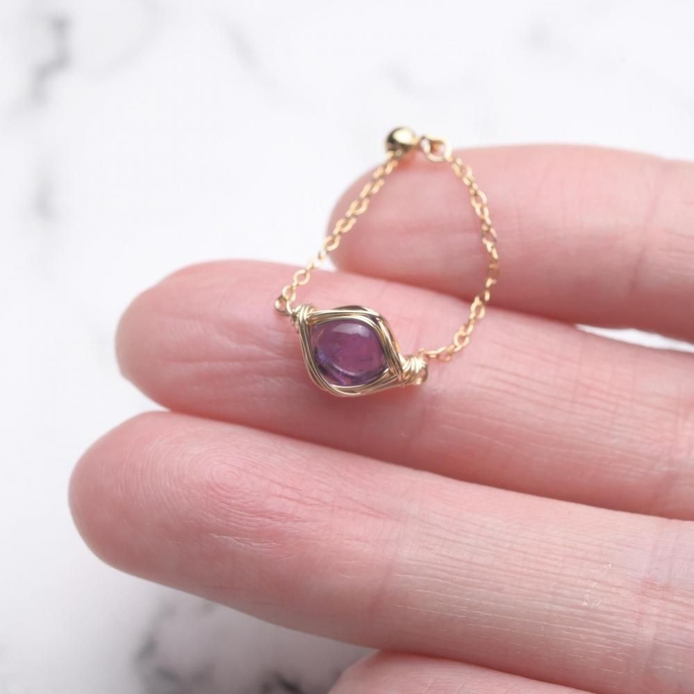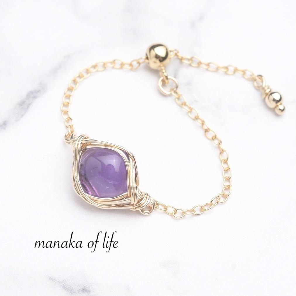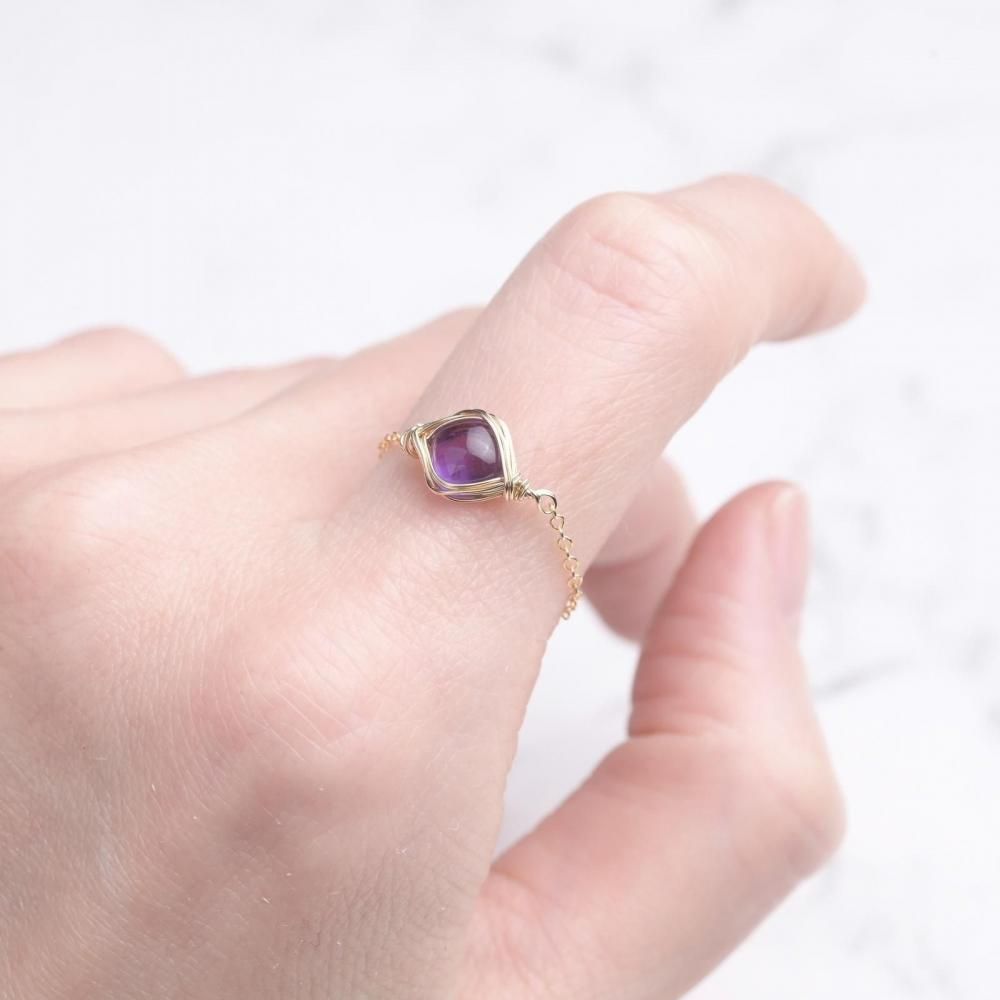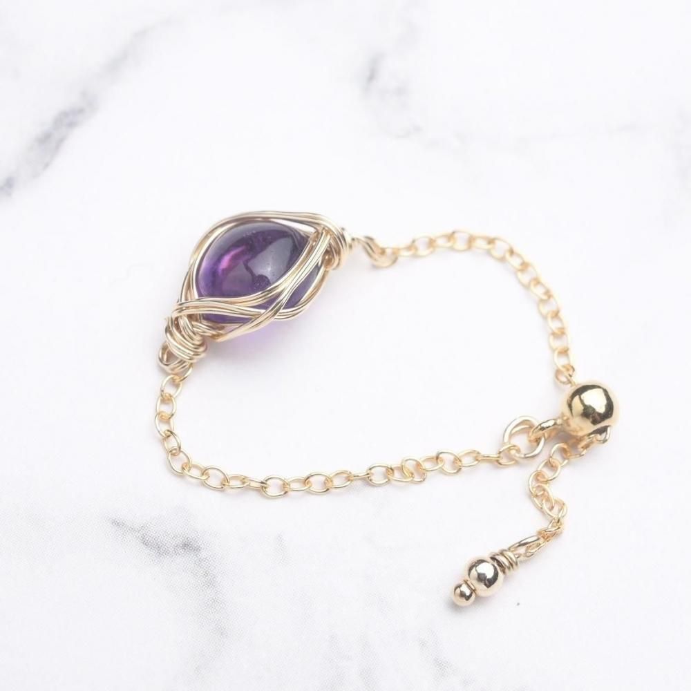アメジスト ワイヤーラッピングのチェーンリングです。