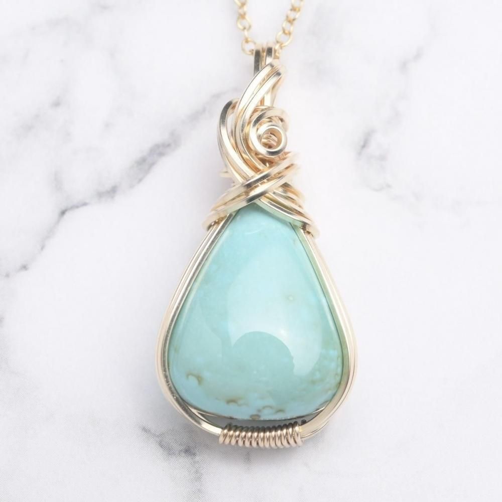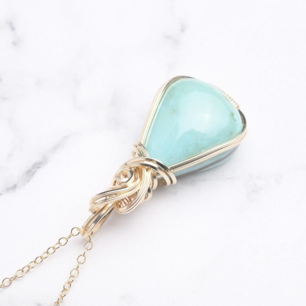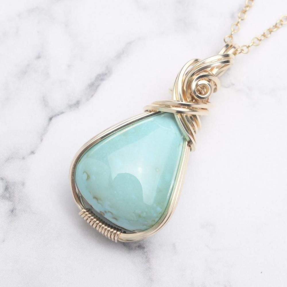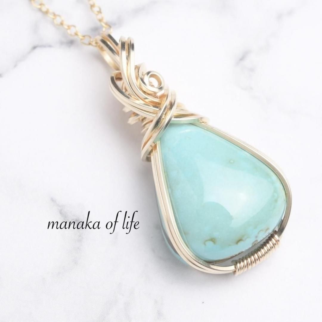 ターコイズ ワイヤーラッピングのペンダントトップです。