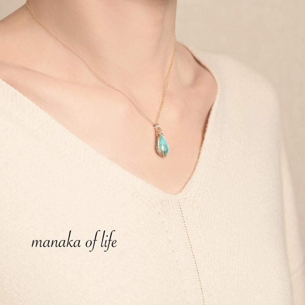 14kgfとも相性良く、メンズライクになりがちなターコイズを、女性らしく繊細に仕立てました。