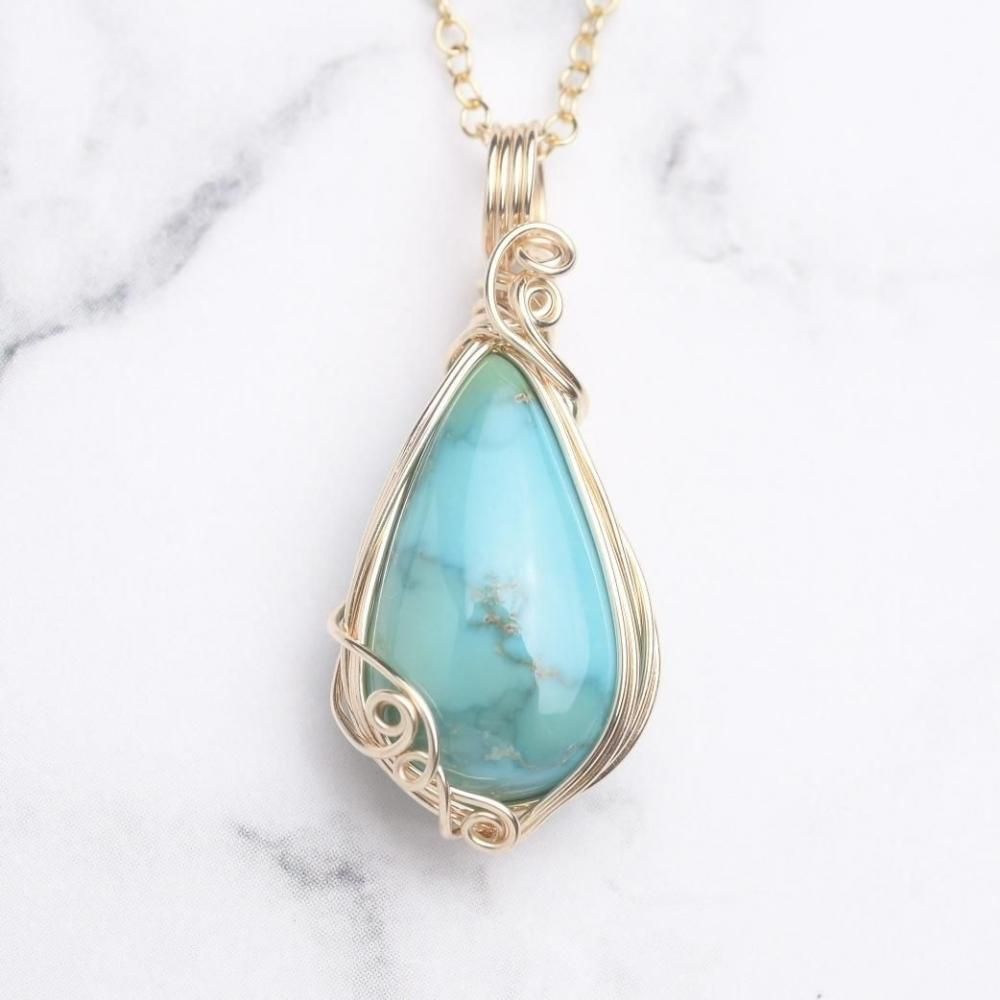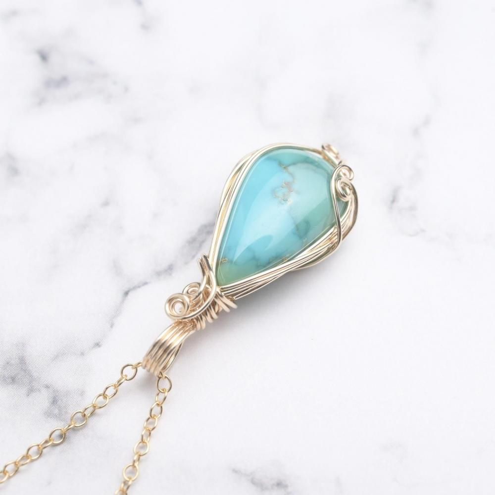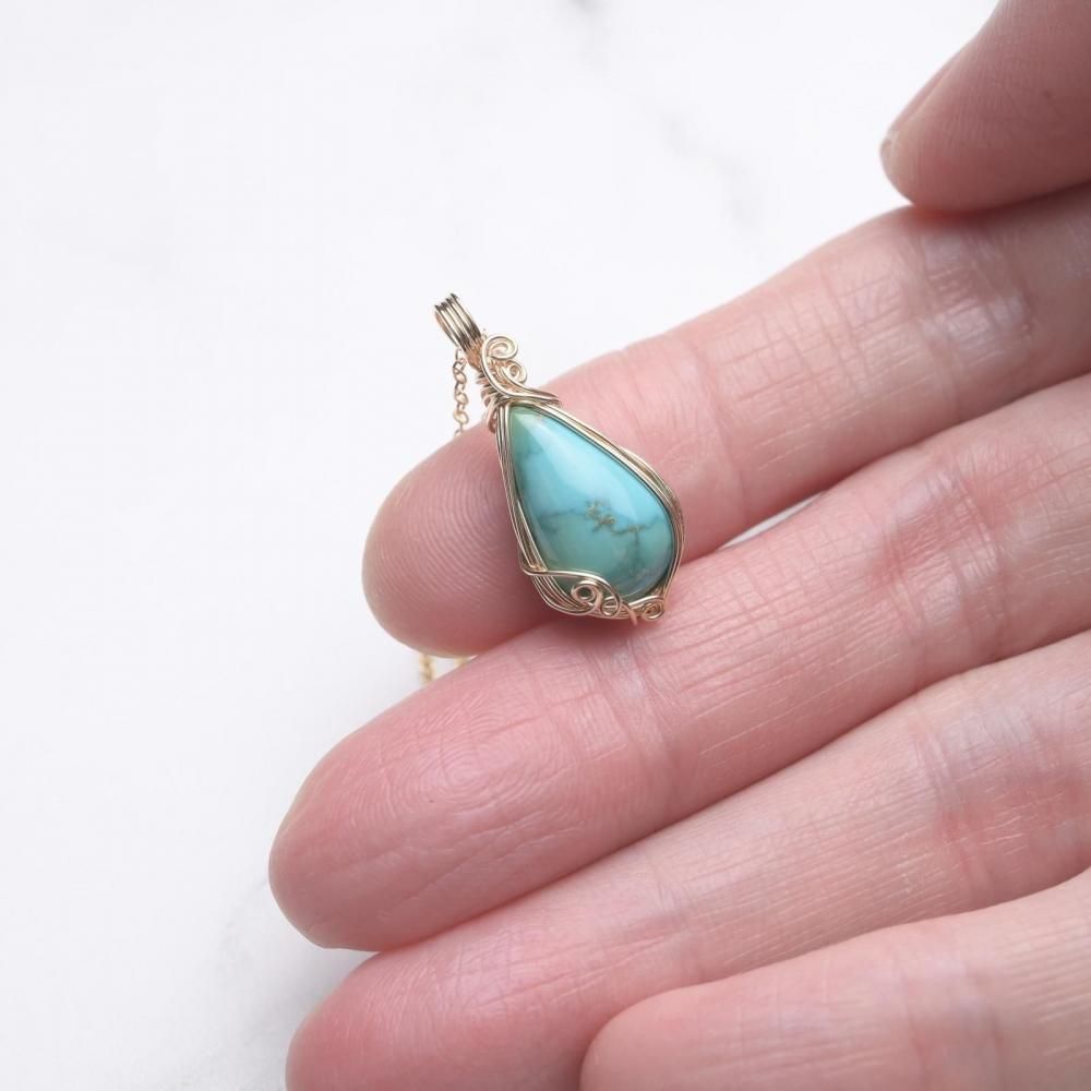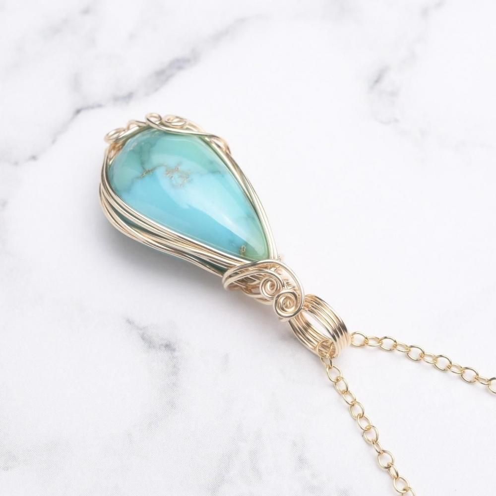 ターコイズ ワイヤーラッピングのペンダントトップです。