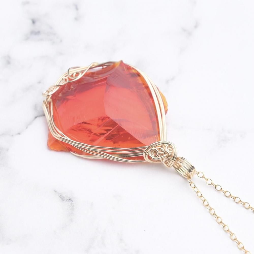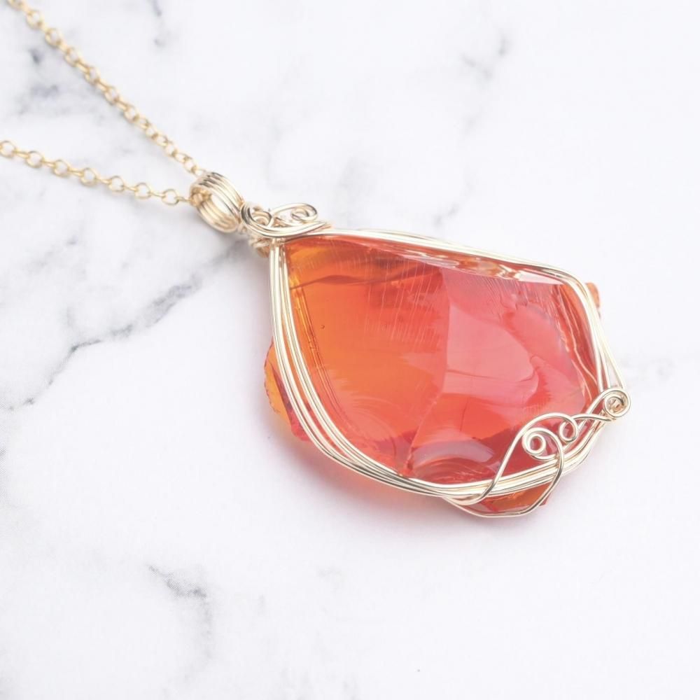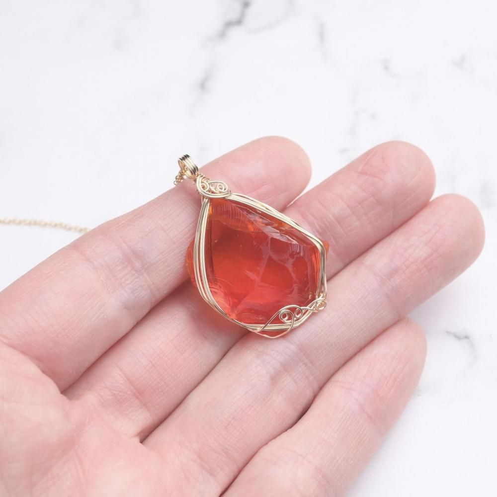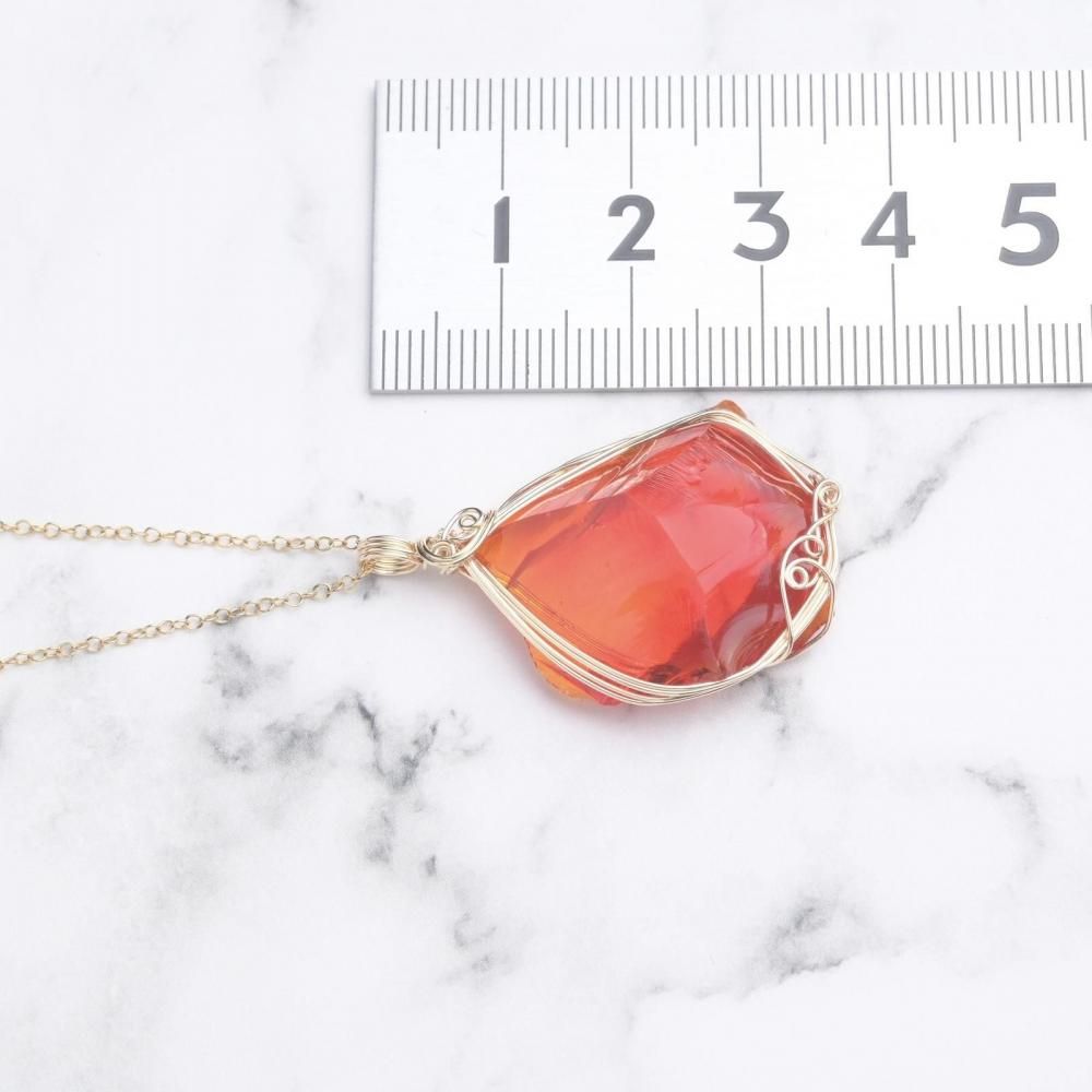 シエラネバダ産 アンダラクリスタル レムリアンサンライズ ファイヤーオパール ペンダントトップ ワイヤーラッピング ネックレス 14kgf