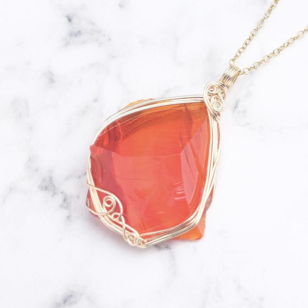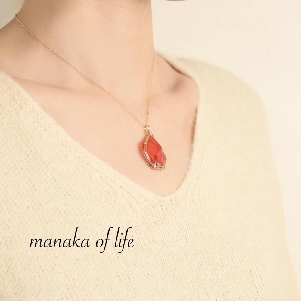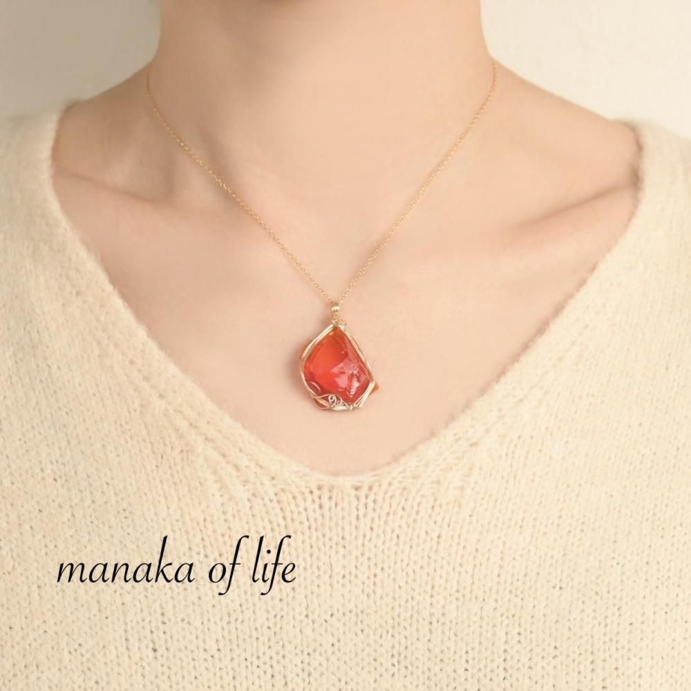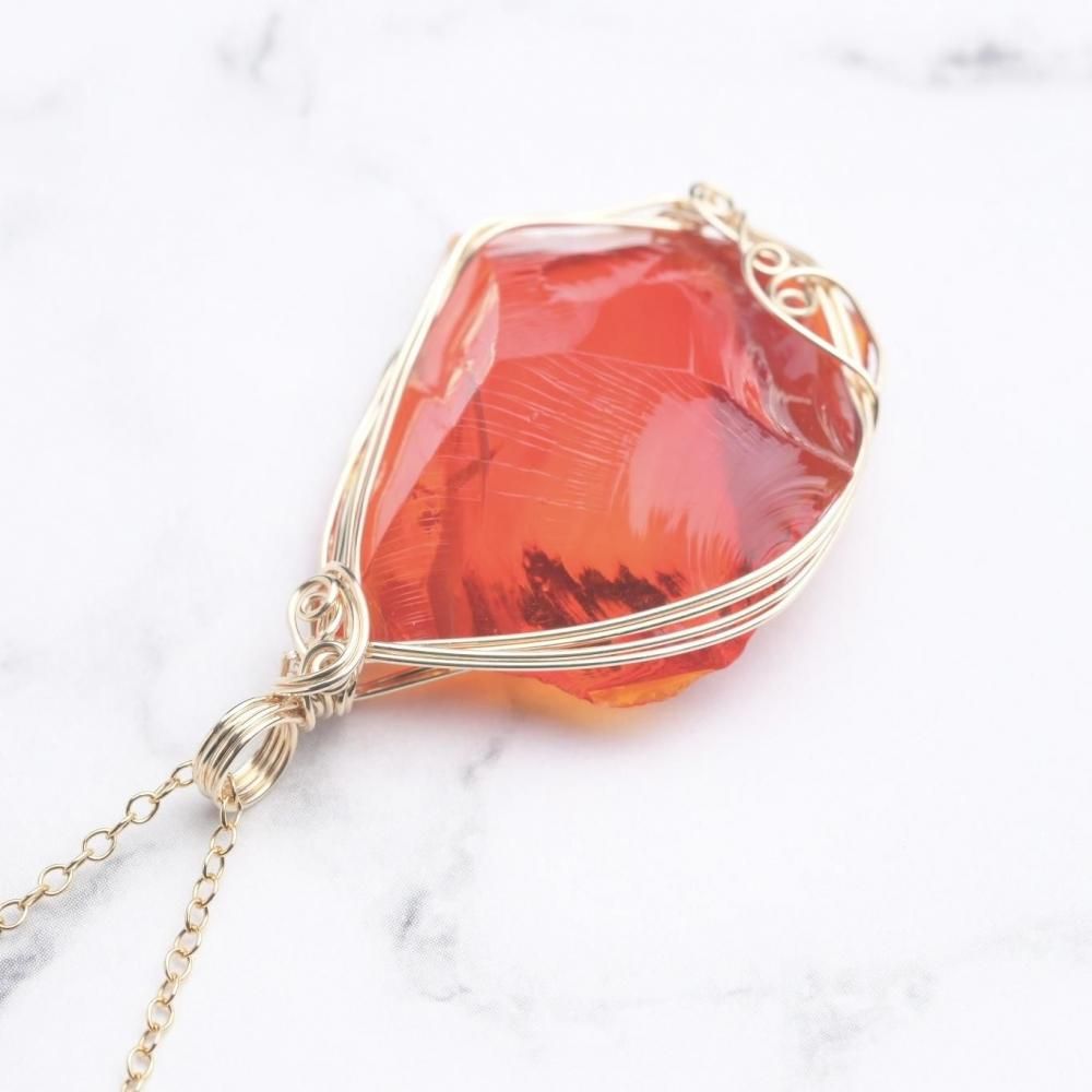 シエラネバダ産 アンダラクリスタル レムリアンサンライズ ファイヤーオパール ペンダントトップ ワイヤーラッピング ネックレス 14kgf