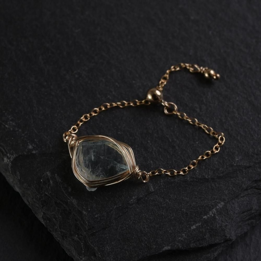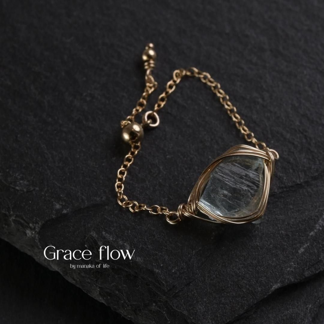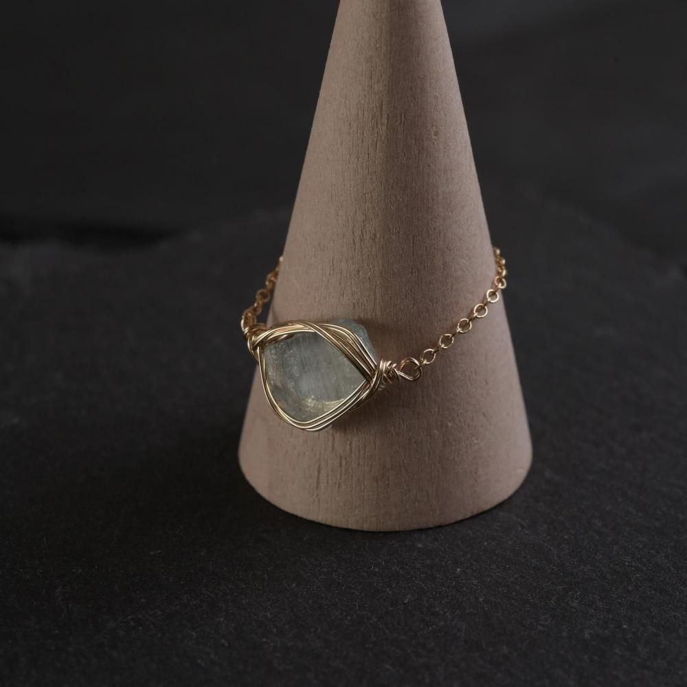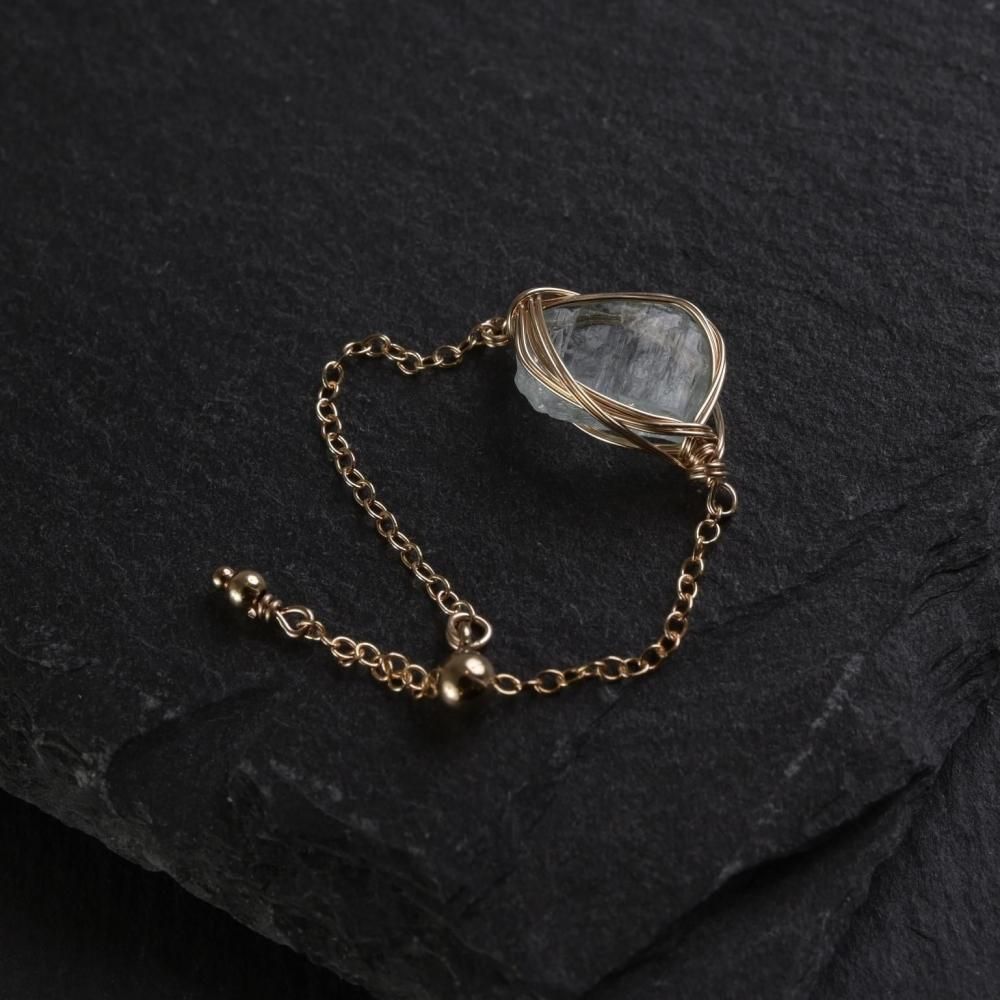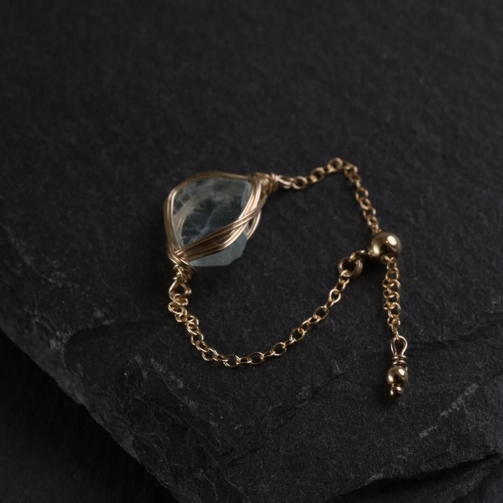 アクアマリン 原石 チェーンリング ワイヤーラッピング 14kgf 天然石