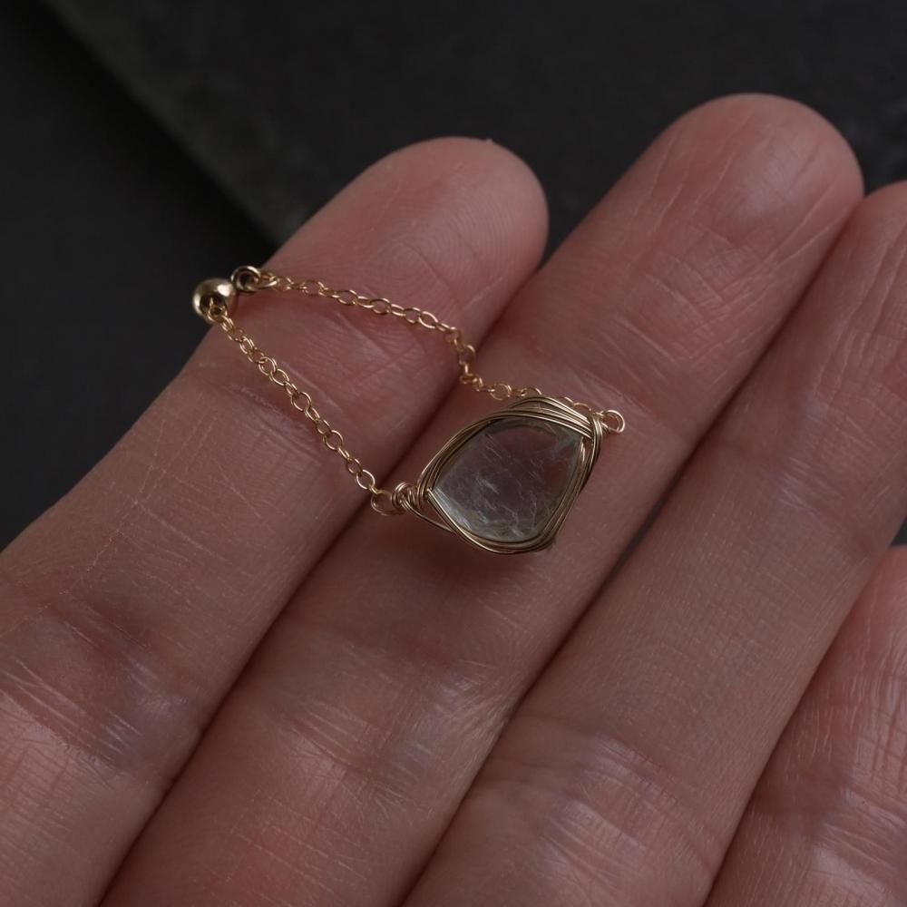 アクアマリン 原石 ワイヤーラッピングのチェーンリングです。