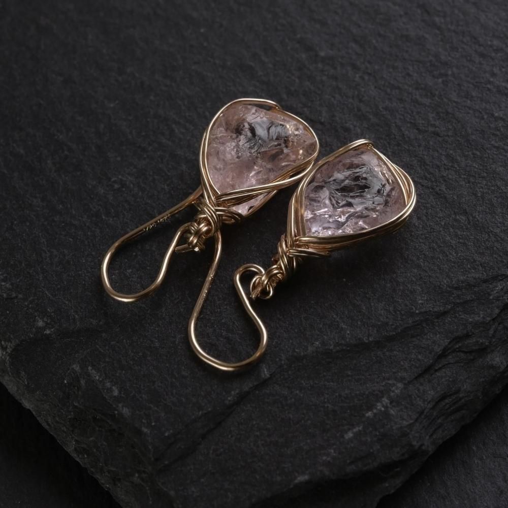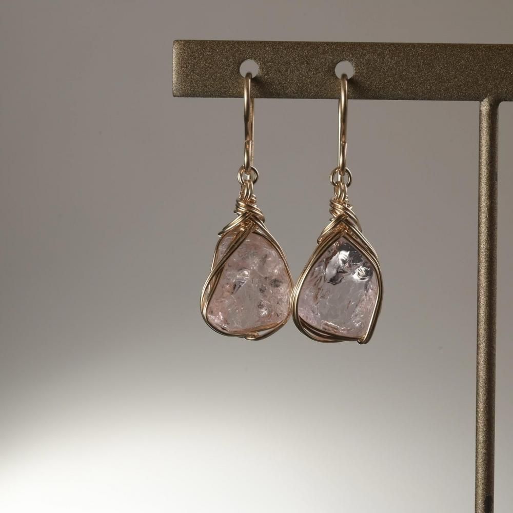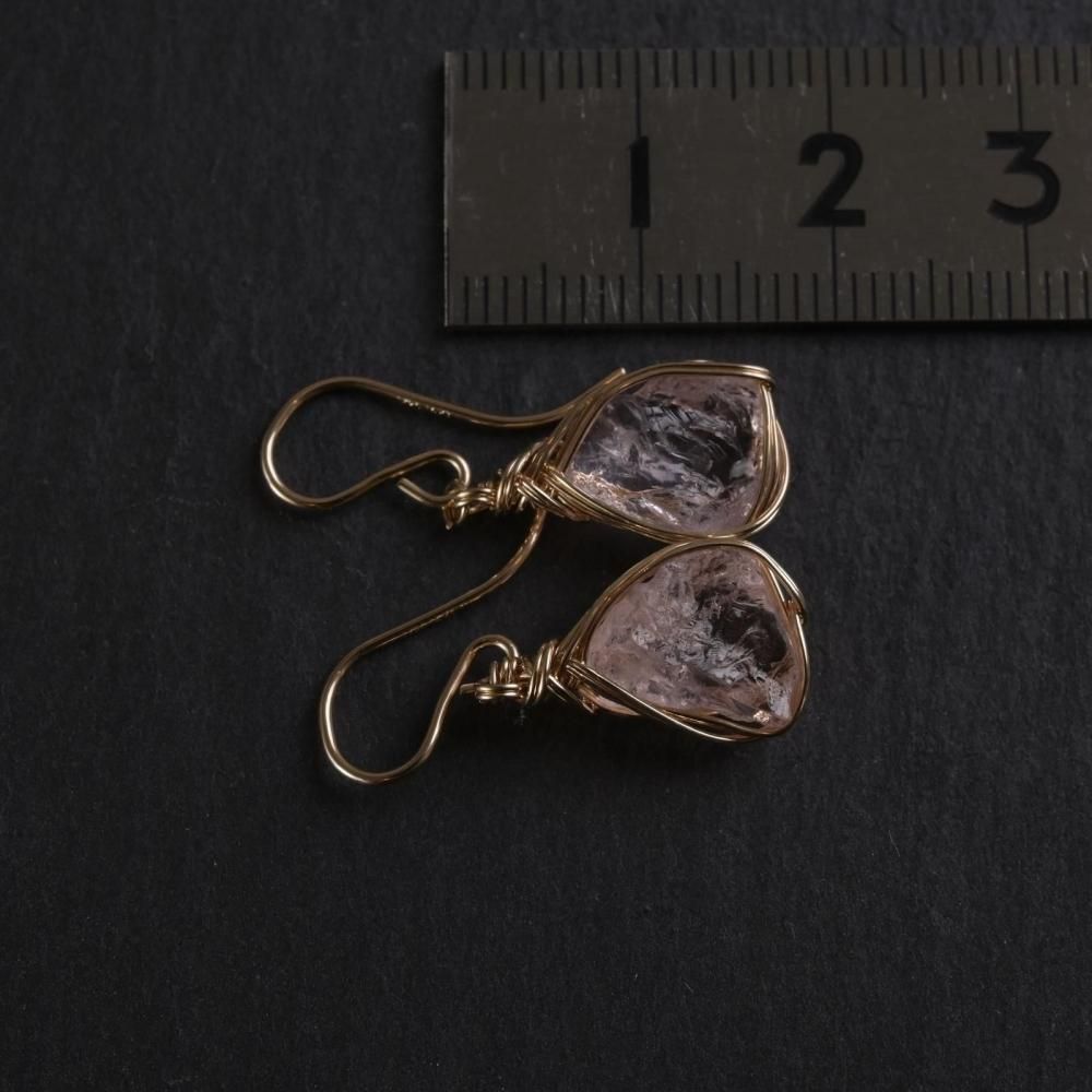 モルガナイト 原石 鉱物 ピアス ワイヤーラッピング 14kgf 天然石