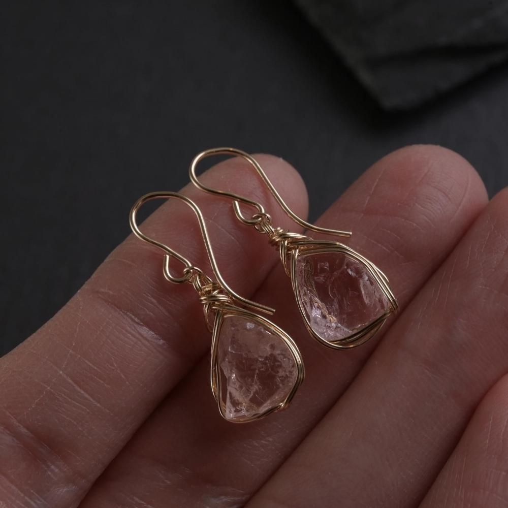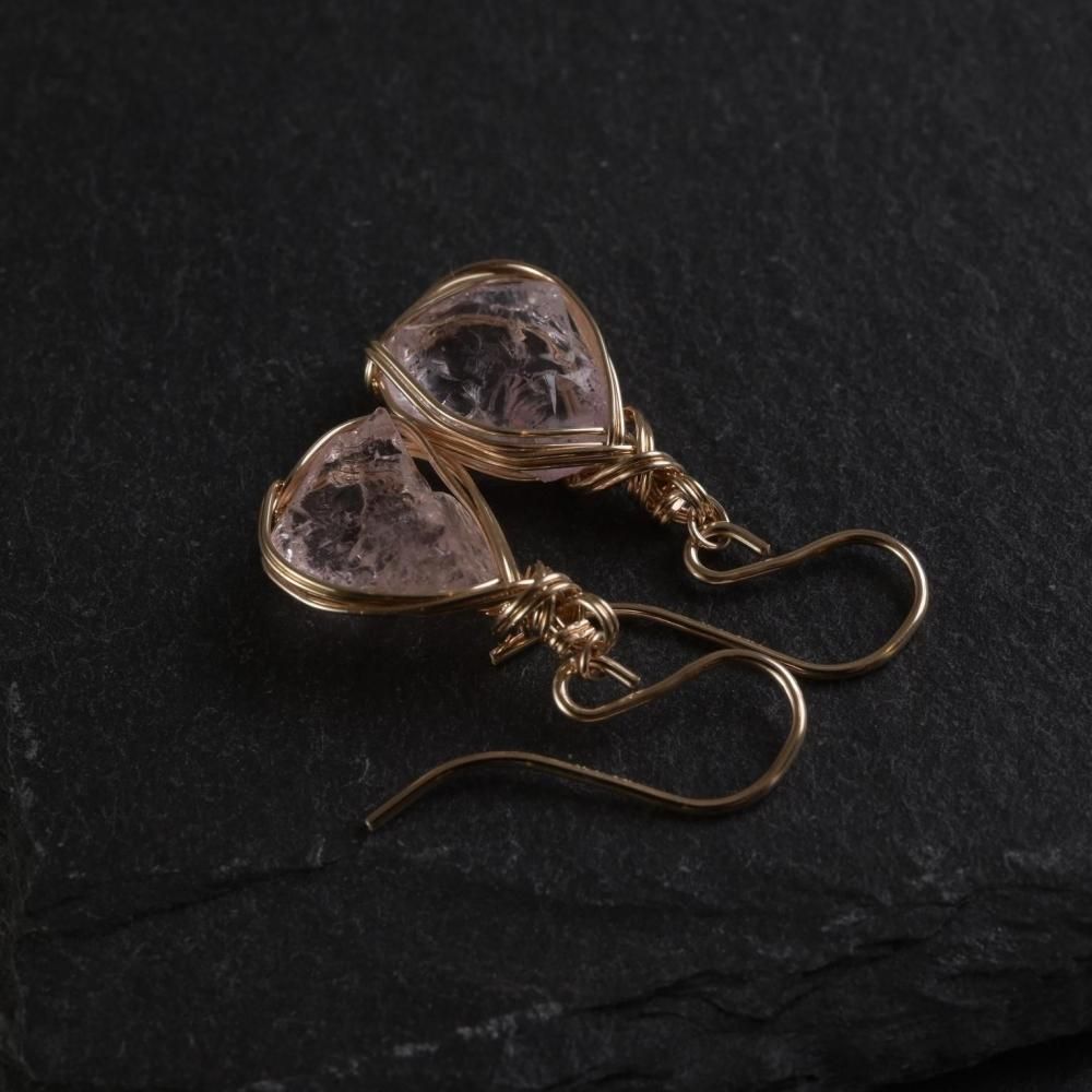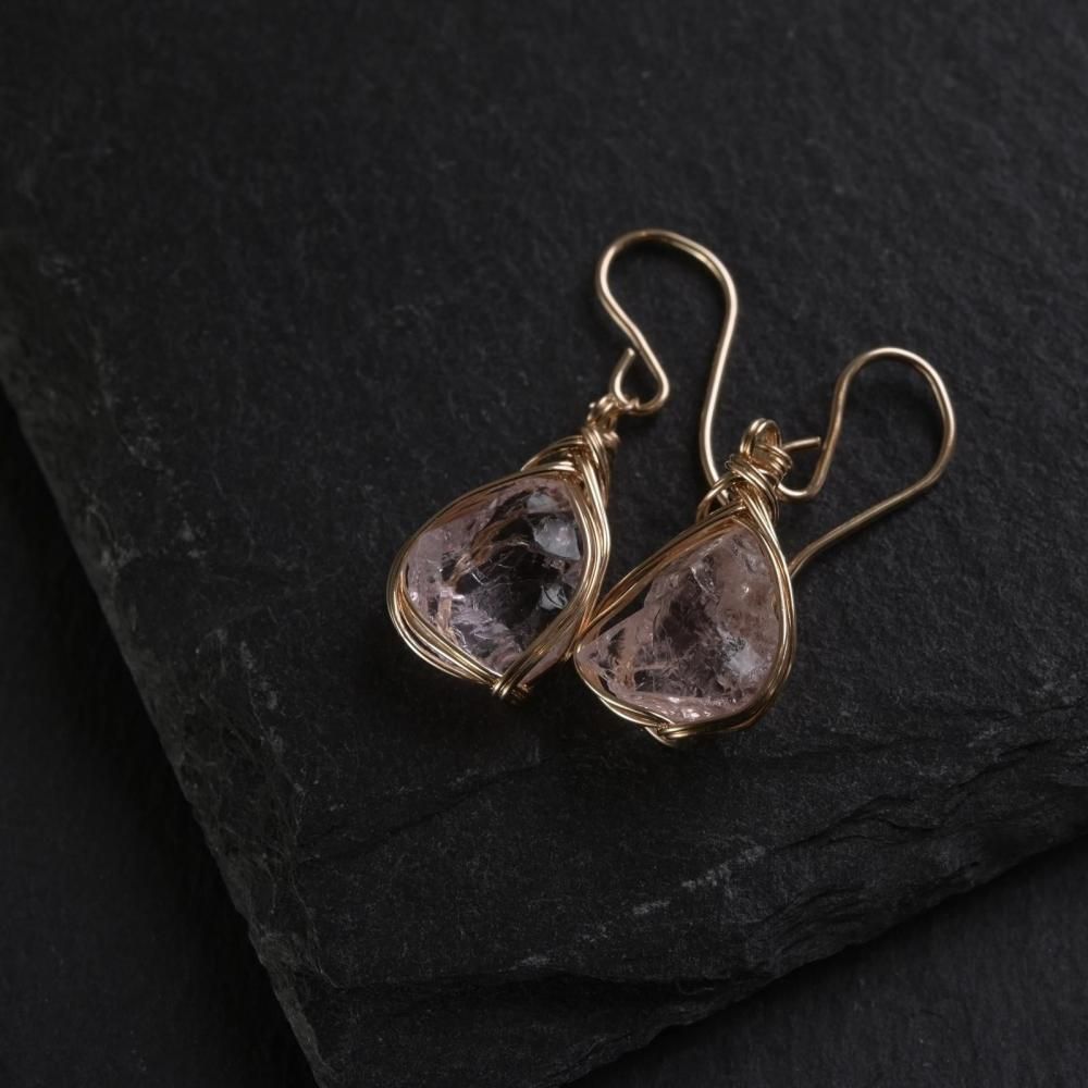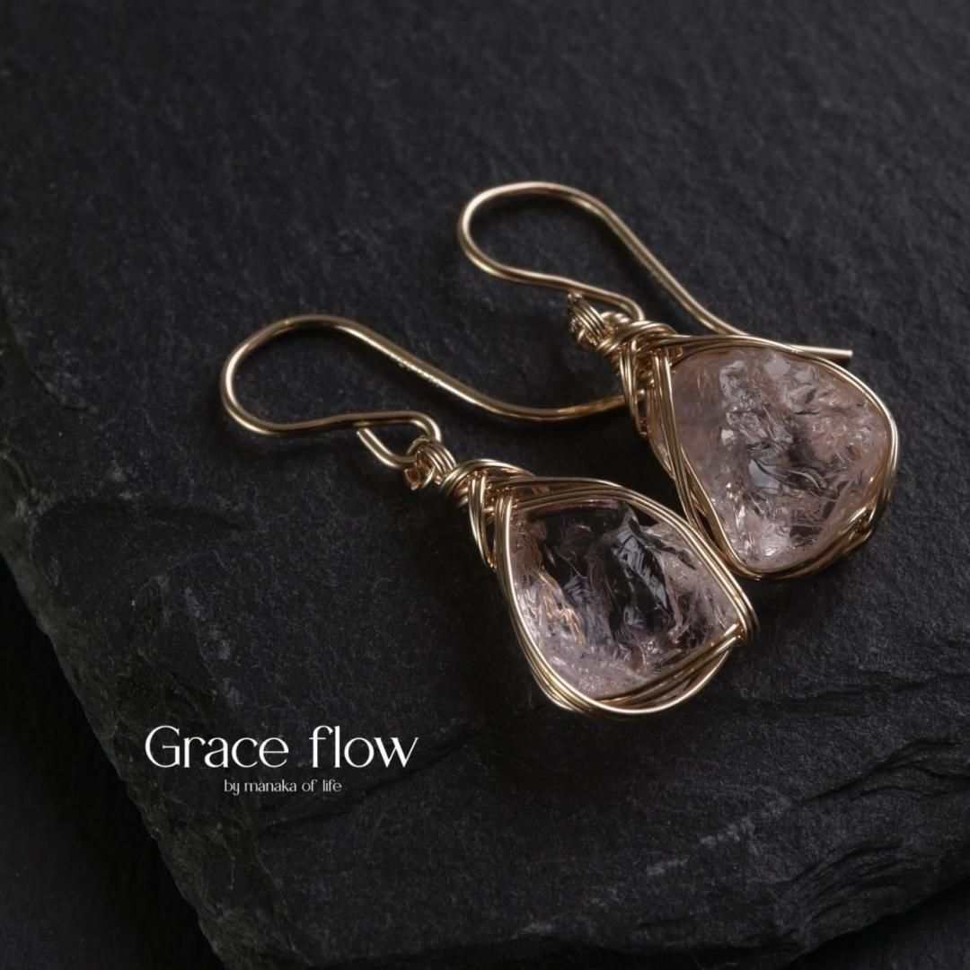 モルガナイト 原石 鉱物 ピアス ワイヤーラッピング 14kgf 天然石
