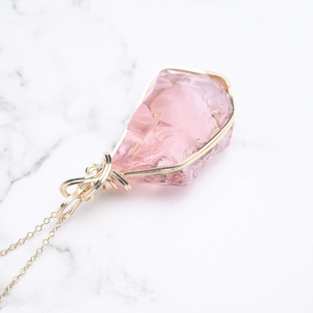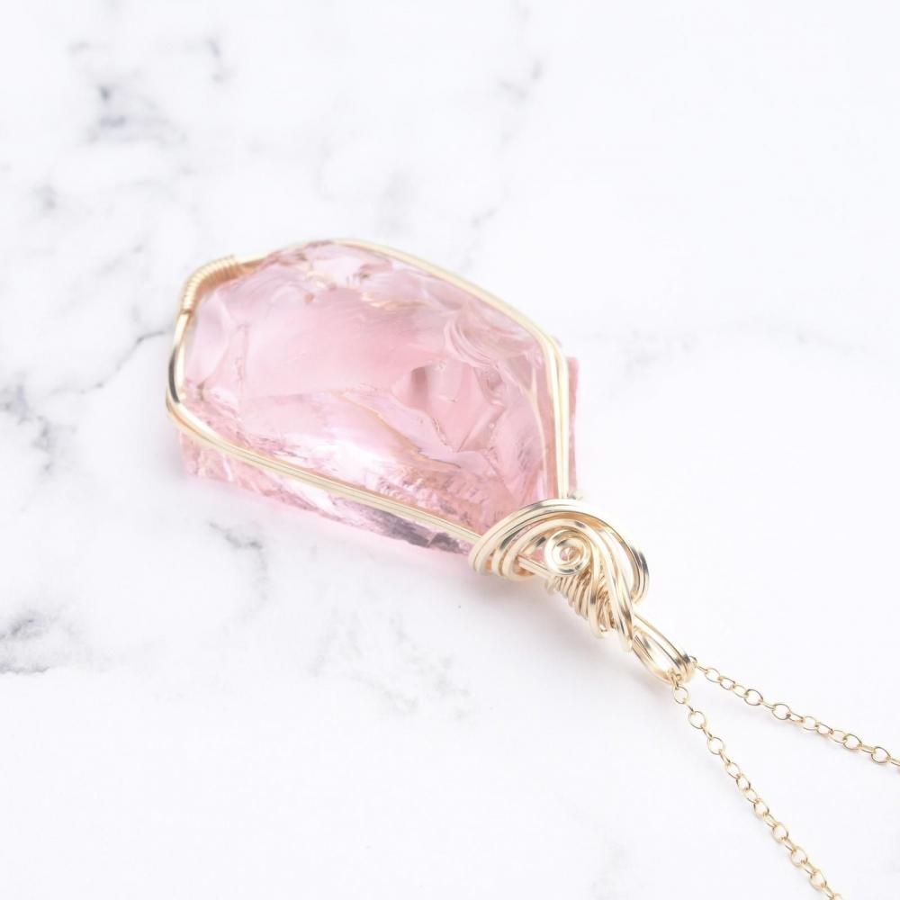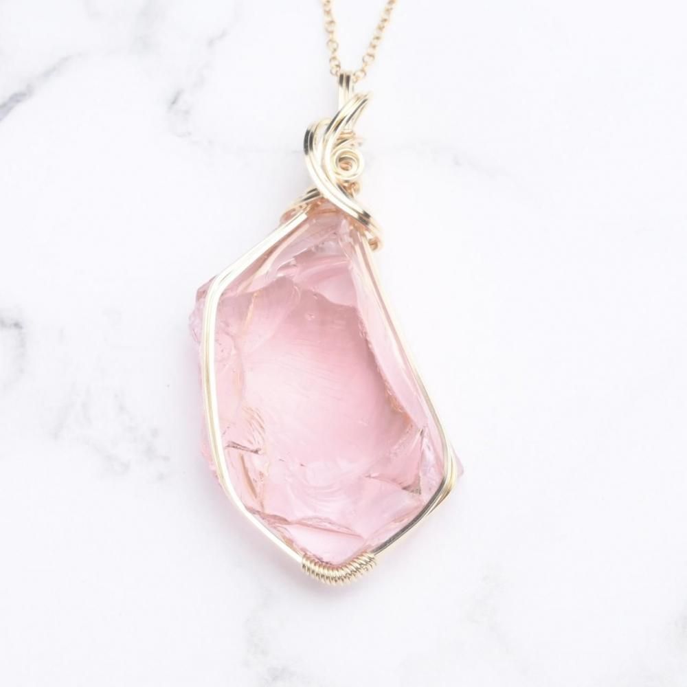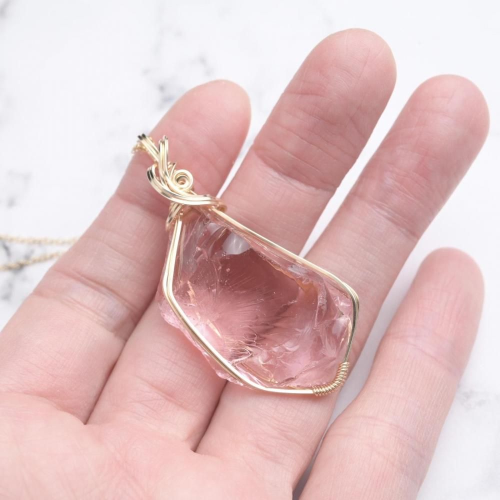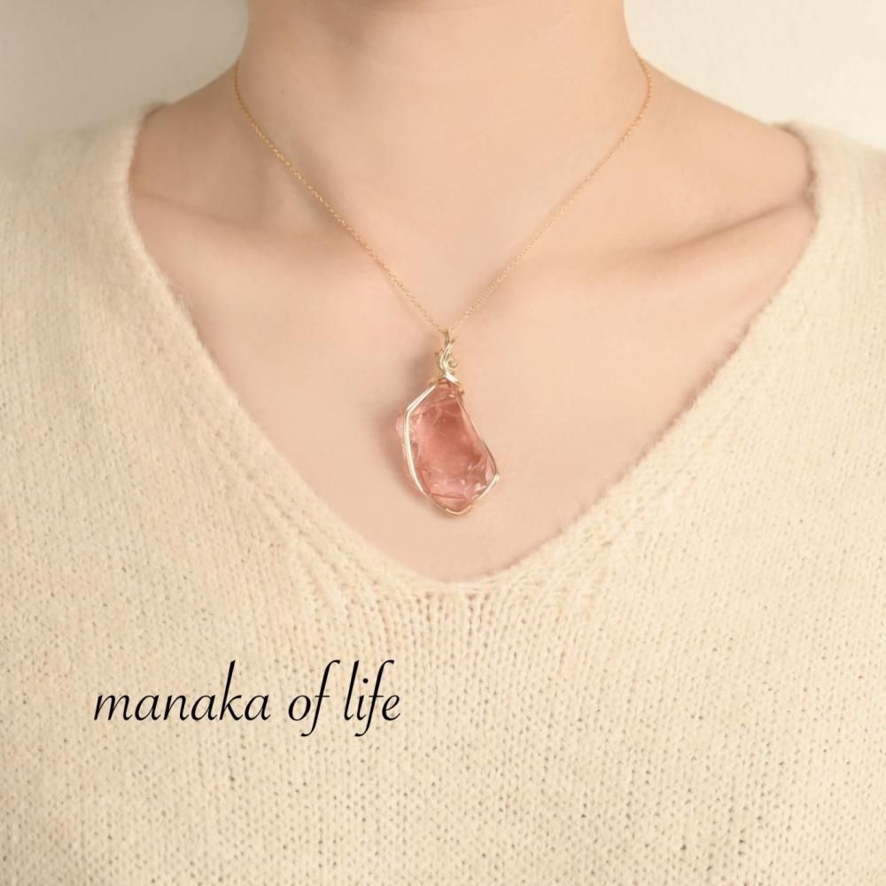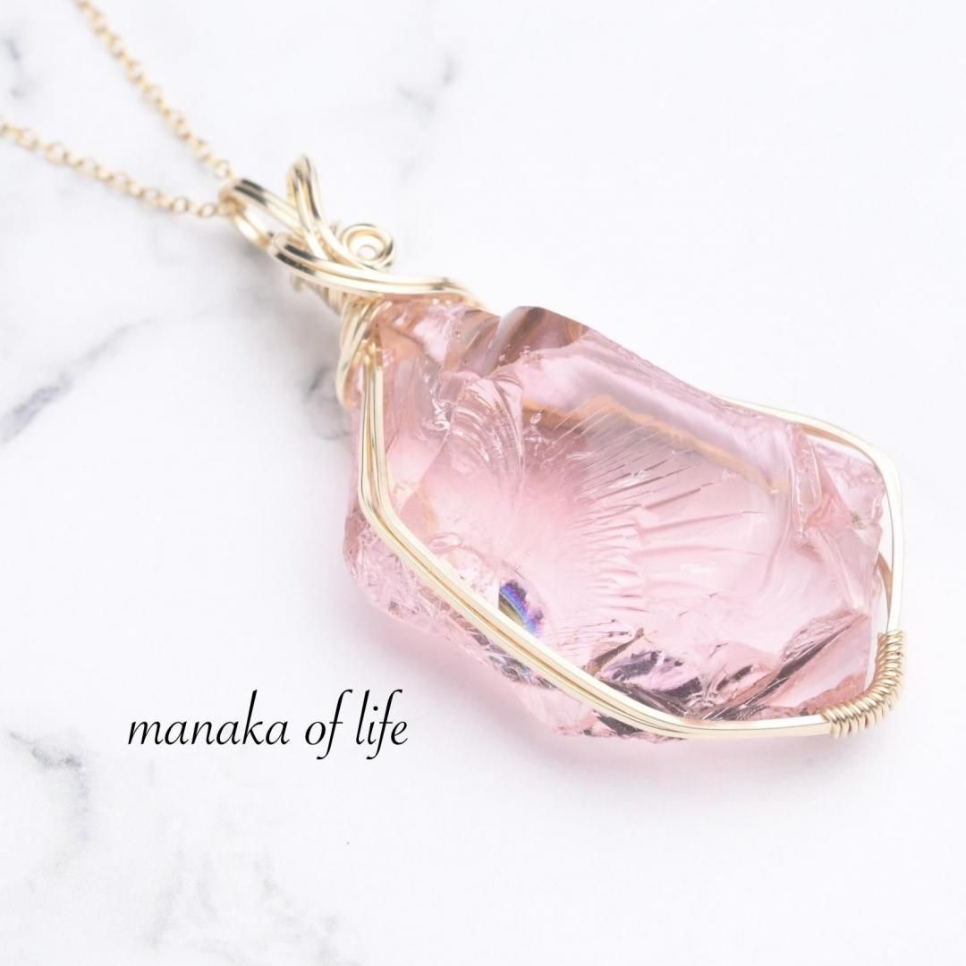アンダラクリスタルならではの鮮やかなライトピンク、表面形状が光を受けてキラキラと輝きます。